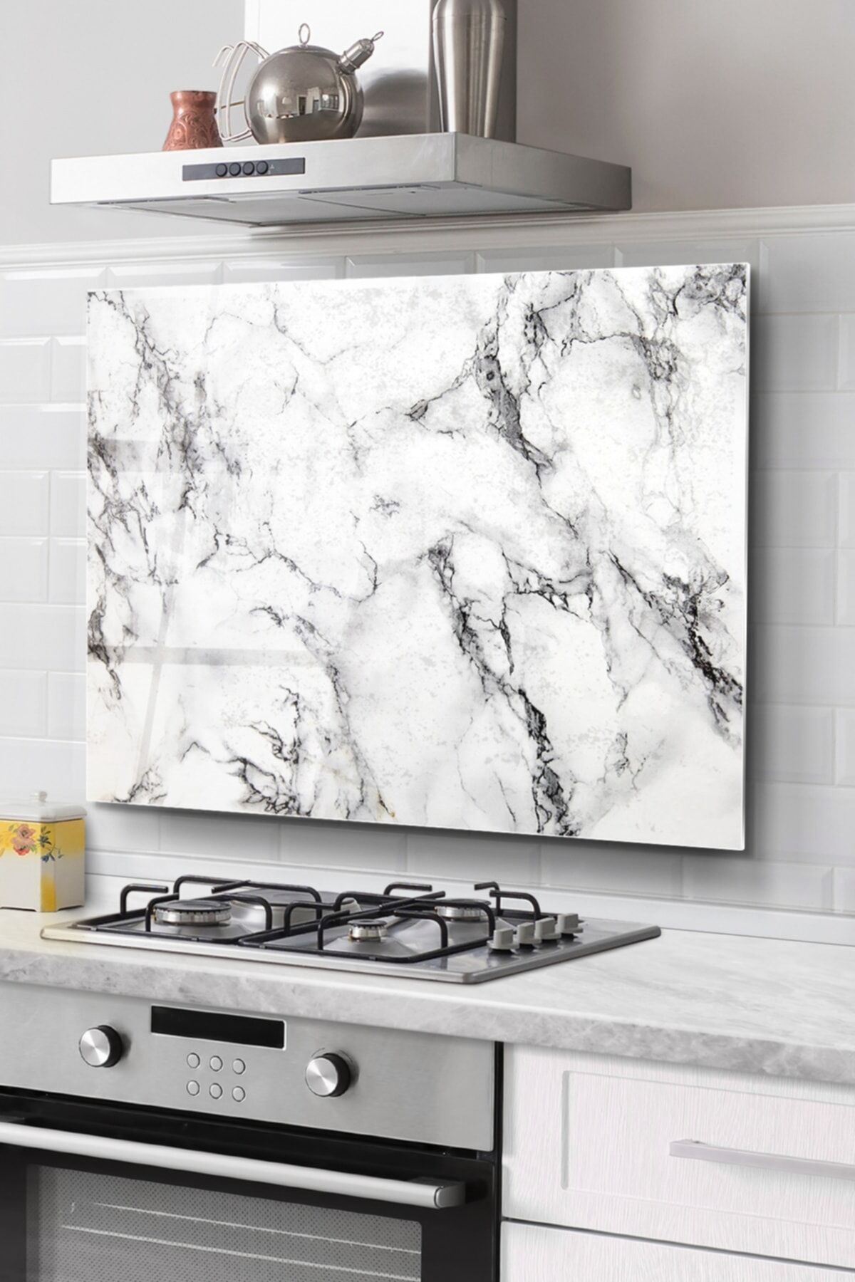 Ocak Arkası Cam Koruyucu Tezgah Ankastre Arkası Koruyucu 60x52 Cm | Mermer Desenli