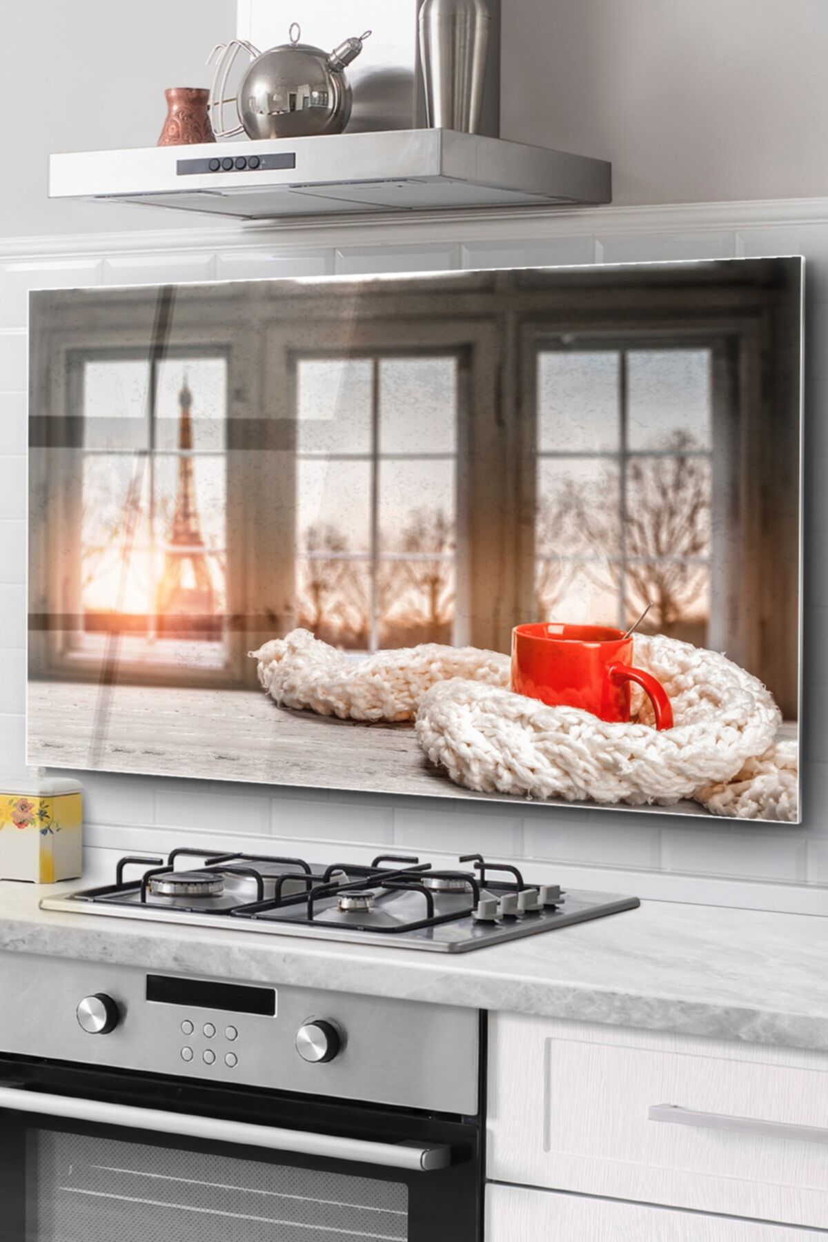 Ocak Arkası Cam Koruyucu Tezgah Ankastre Arkası Koruyucu 76x50 Cm | Eyfel Kulesi Manzaralı
