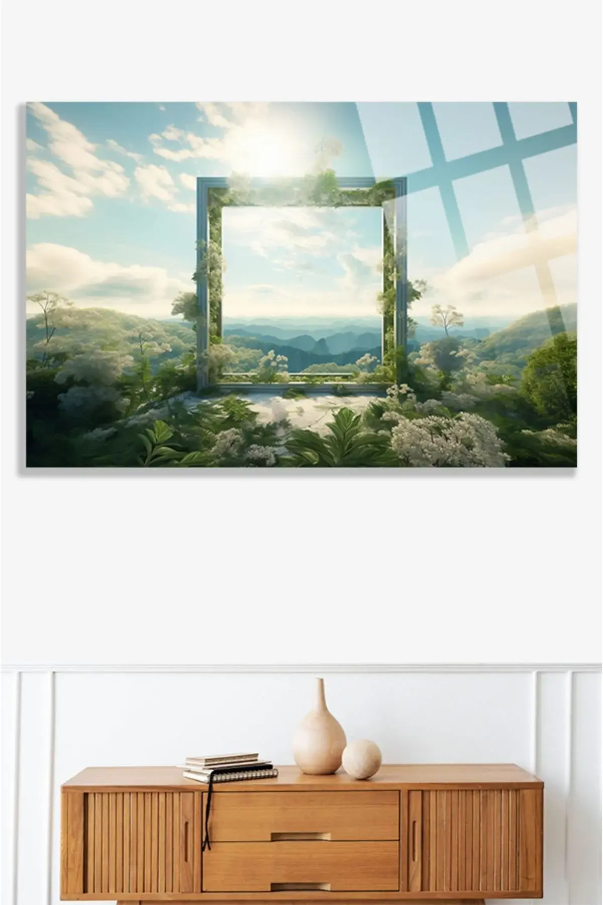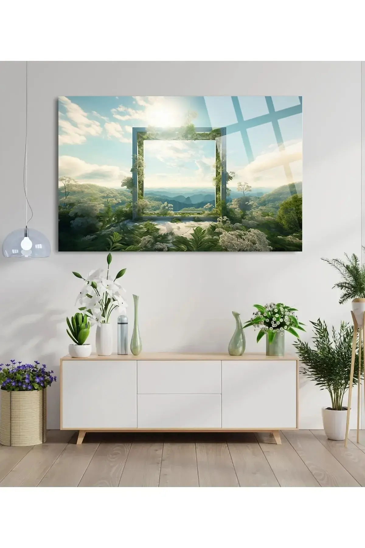 Orman Manzarası Canlı Renkli Cam Tablo, Ev Ve Ofis Hediyesi Yüksek Çözünürlüklü 4mm Lüks Tablo
