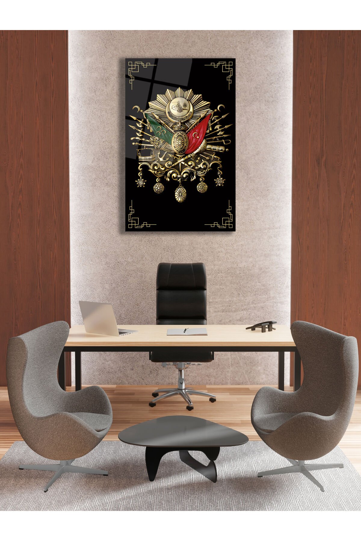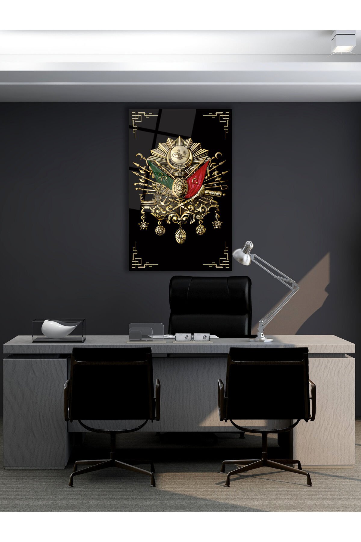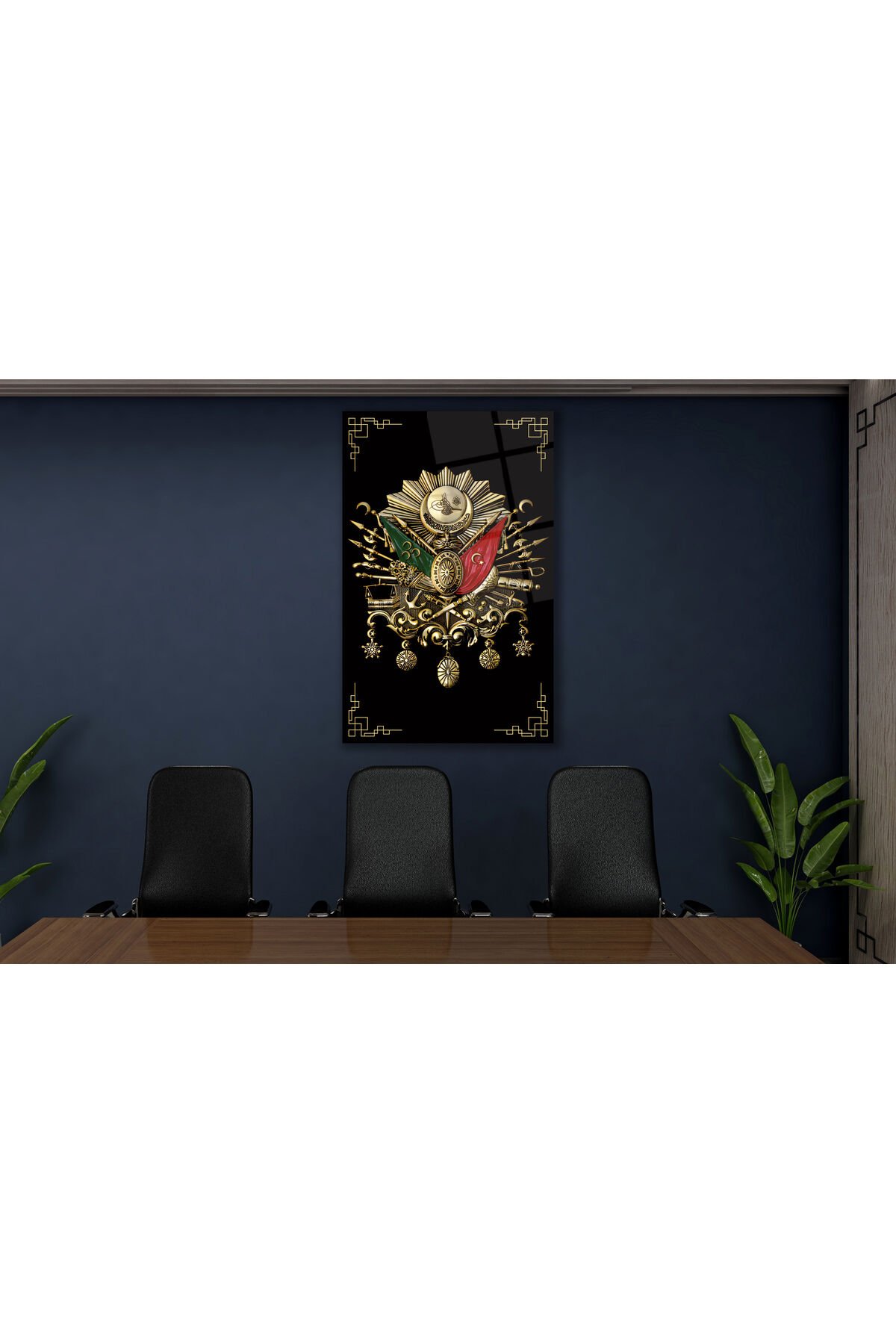 Osmanlı Arması Tuğra Cam Tablo,Dini İslami Modern Ev Ofis Salon Duvar Dekoru,Hediyelik Siyah Gold