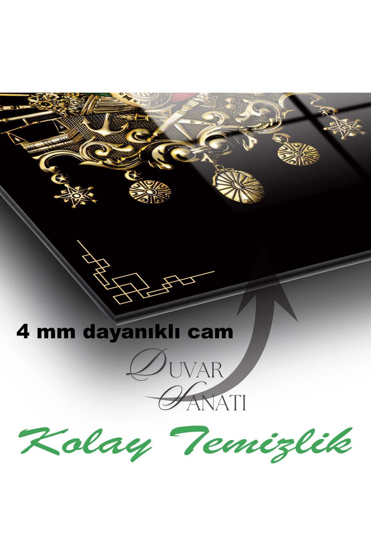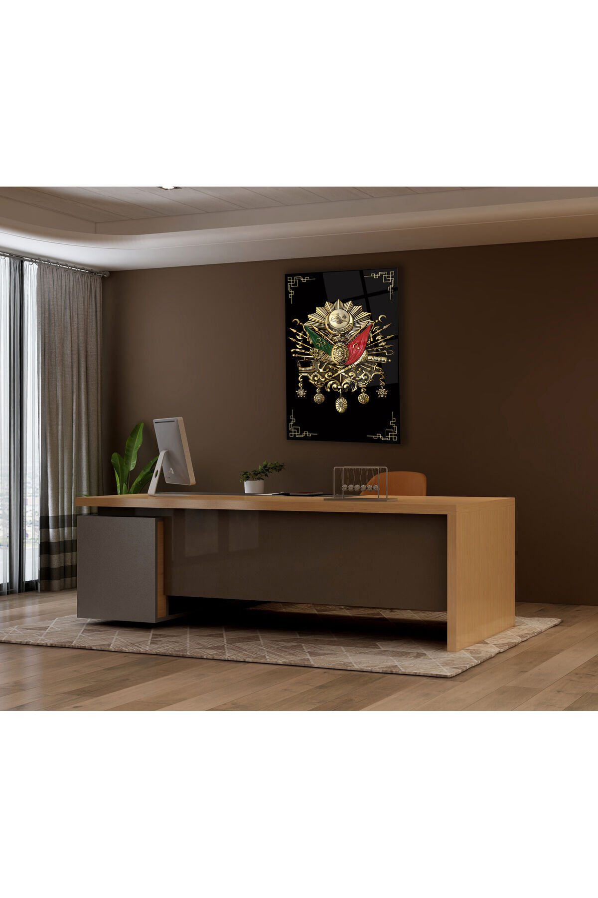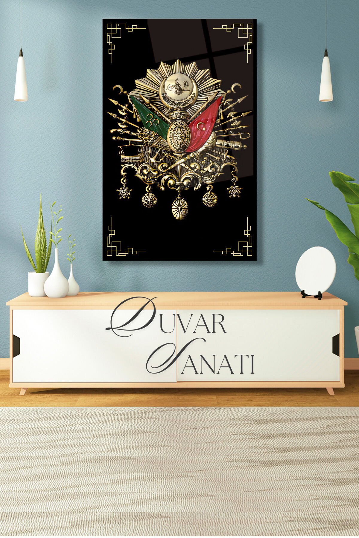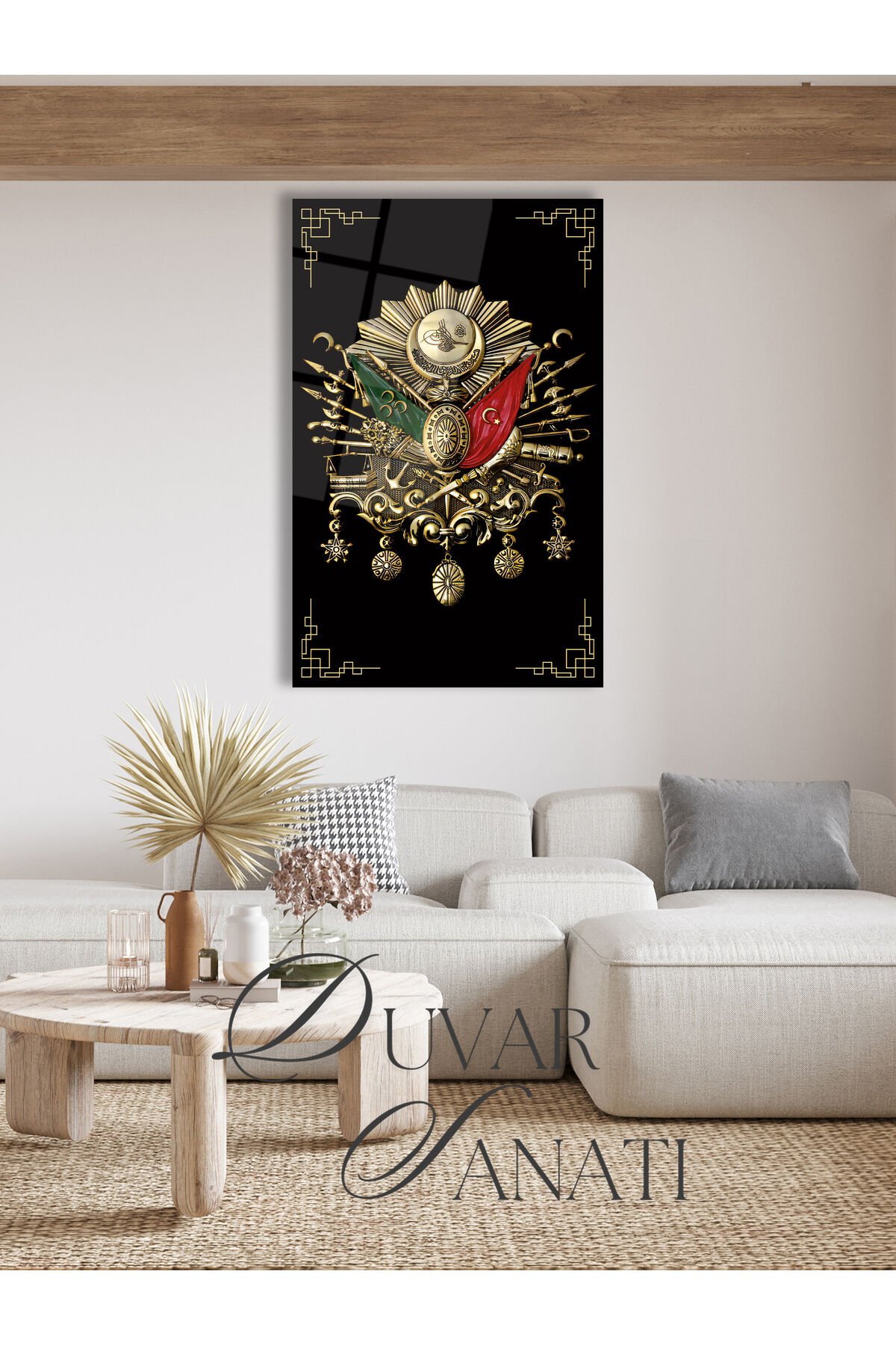 Osmanlı Arması Tuğra Cam Tablo,Dini İslami Modern Ev Ofis Salon Duvar Dekoru,Hediyelik Siyah Gold