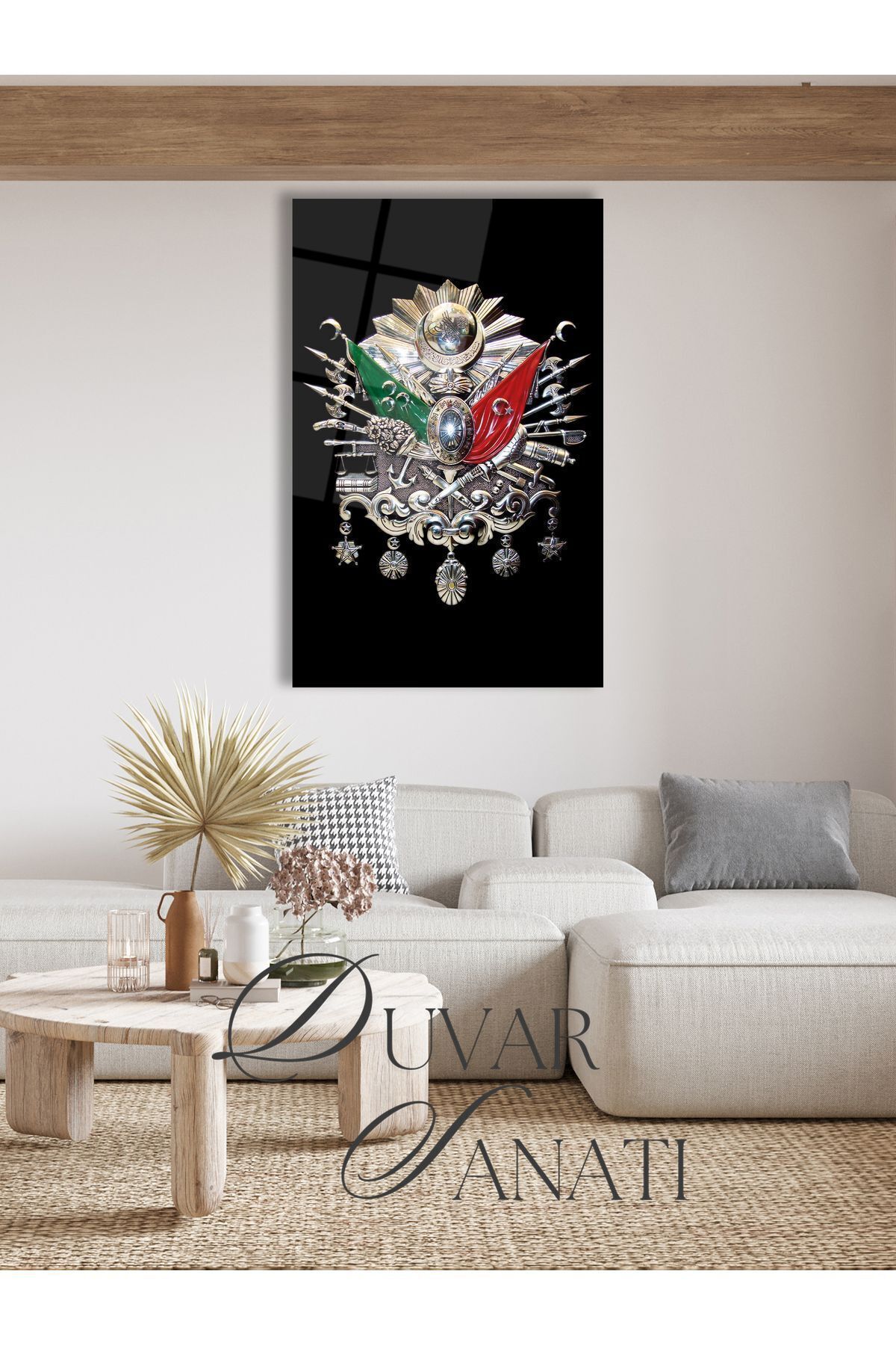 Osmanlı Arması Tuğra Cam Tablo,Dini İslami Modern Ev Ofis Salon Duvar Dekoru,Hediyelik Siyah Gümüş