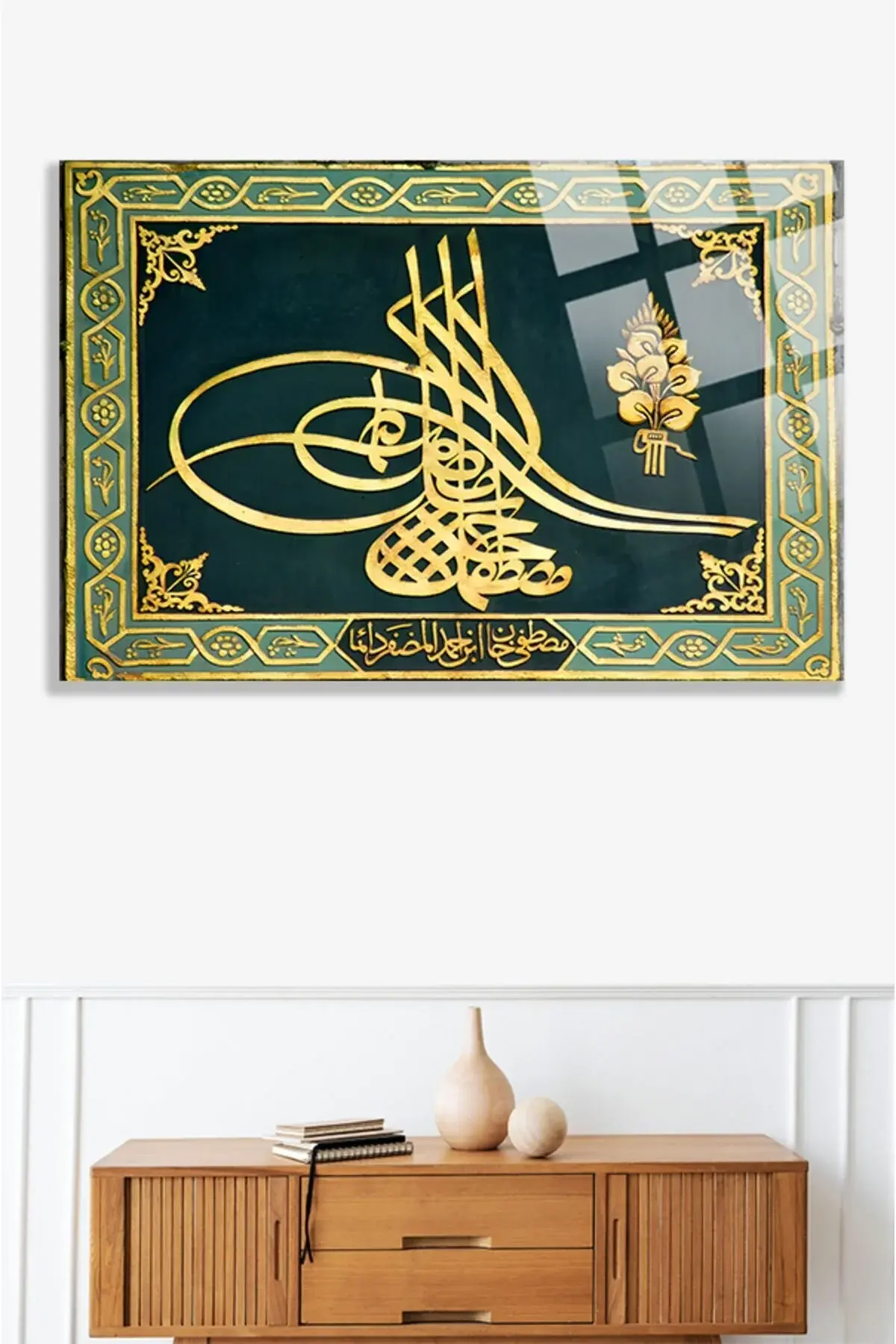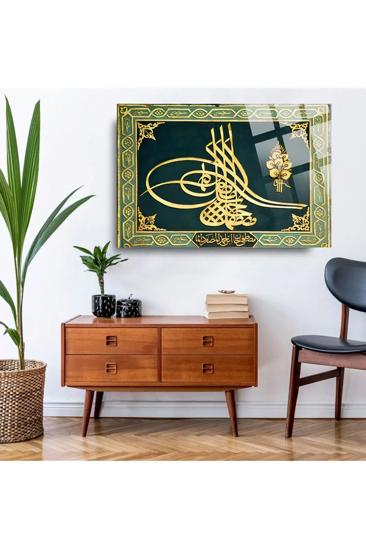 Osmanlı Padişah Tuğrası Cam Tablo, Ev Ve Ofis Hediyesi Yüksek Çözünürlüklü 4mm Lüks Tablo