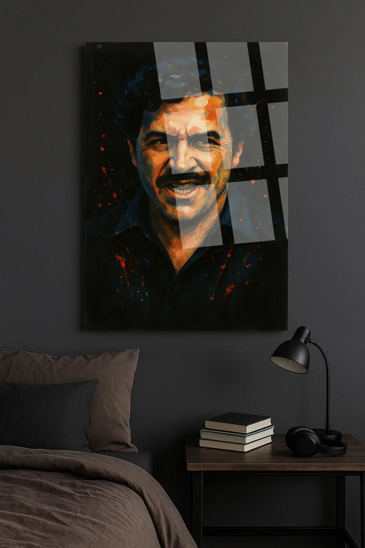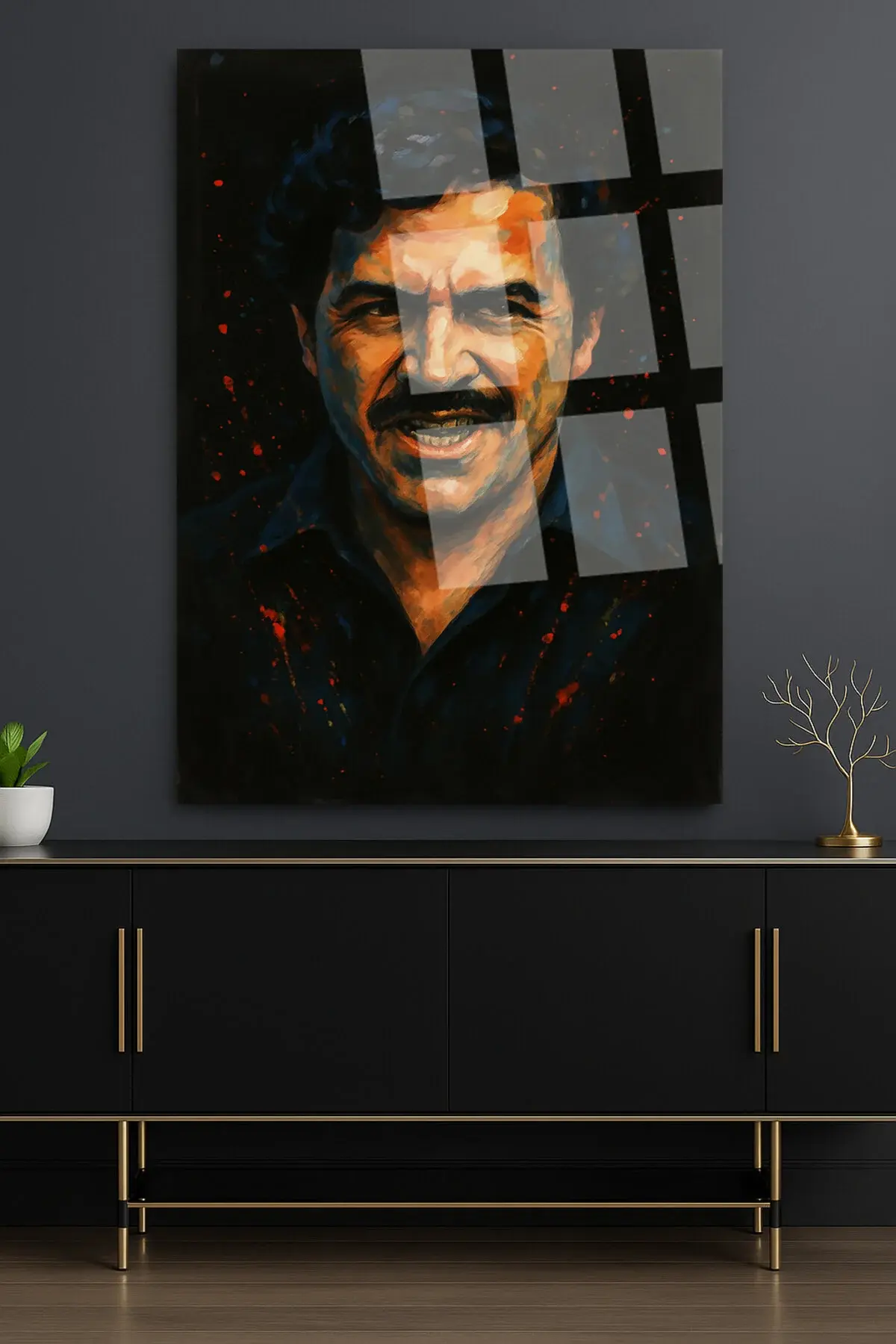 PABLO ESCOBAT MAFİA TABLO CAM TABLO EV HEDİYESİ ULTRA CANLI RENKLER Siyah