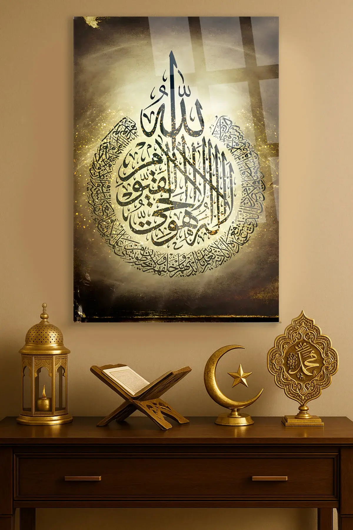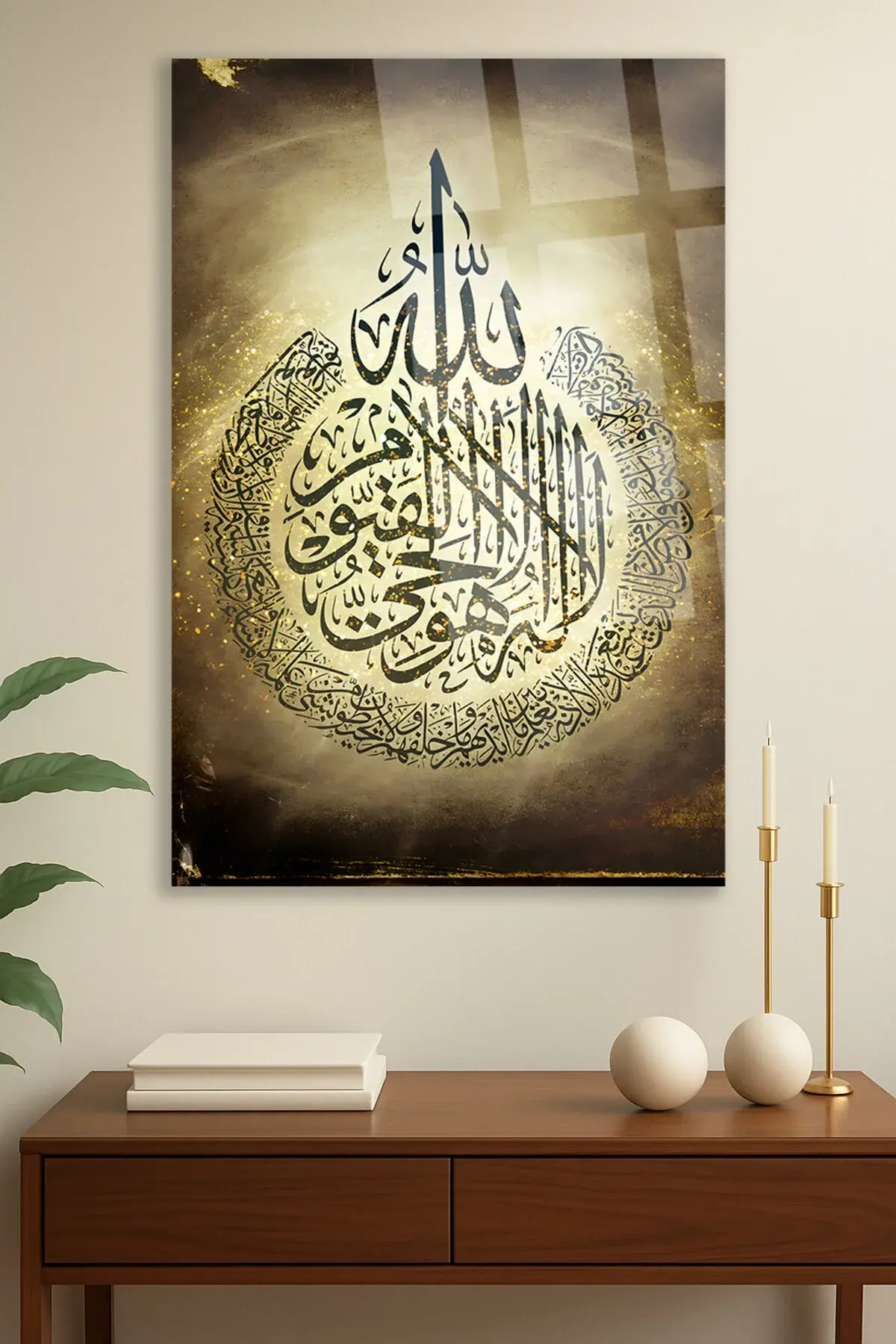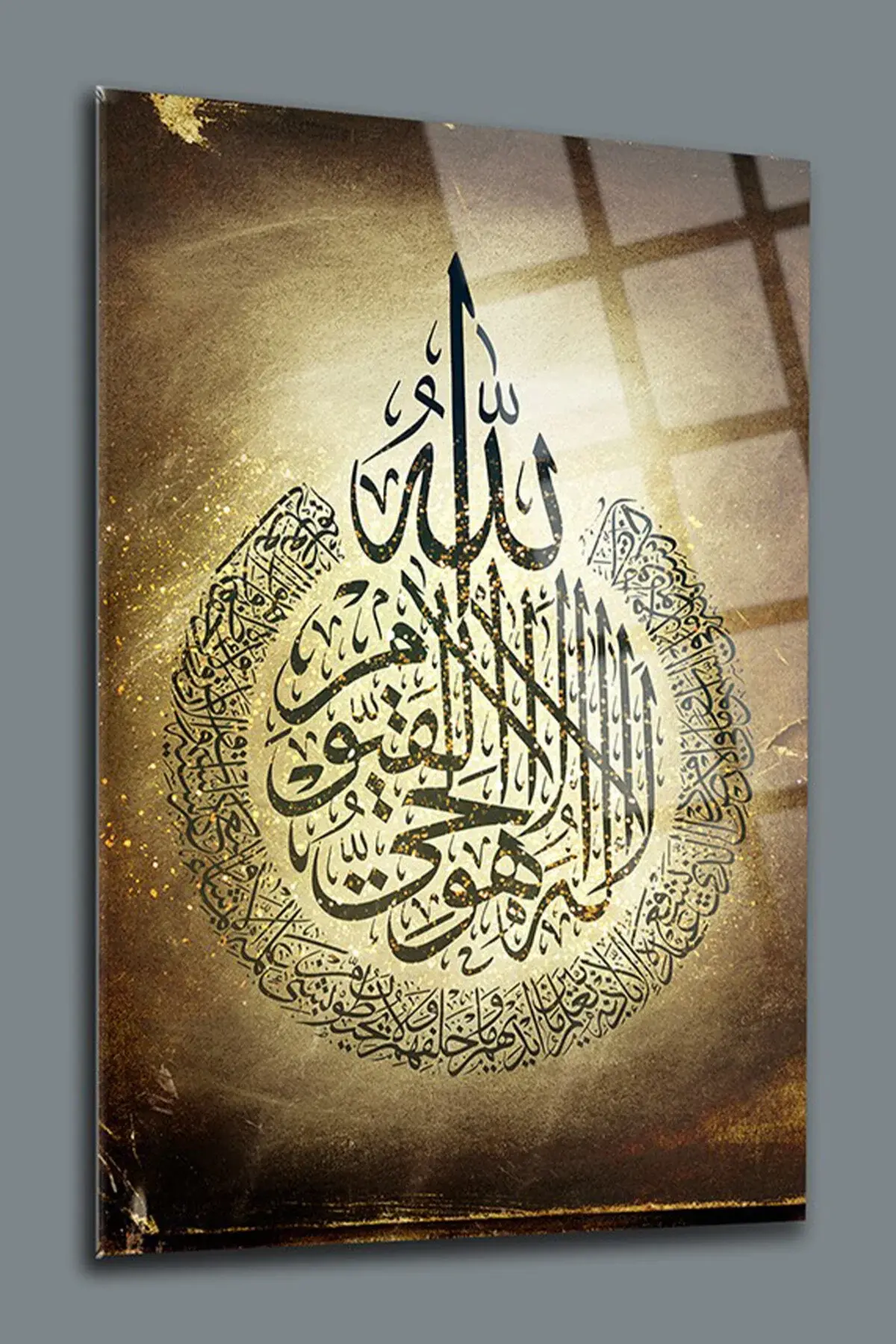 PARILTILI AYETEL KÜRSİ TASARIMI KIRILMAZ LÜKS CAM TABLO İSLAMİ DİNİ CAM TABLO EV HEDİYESİ Kahverengi