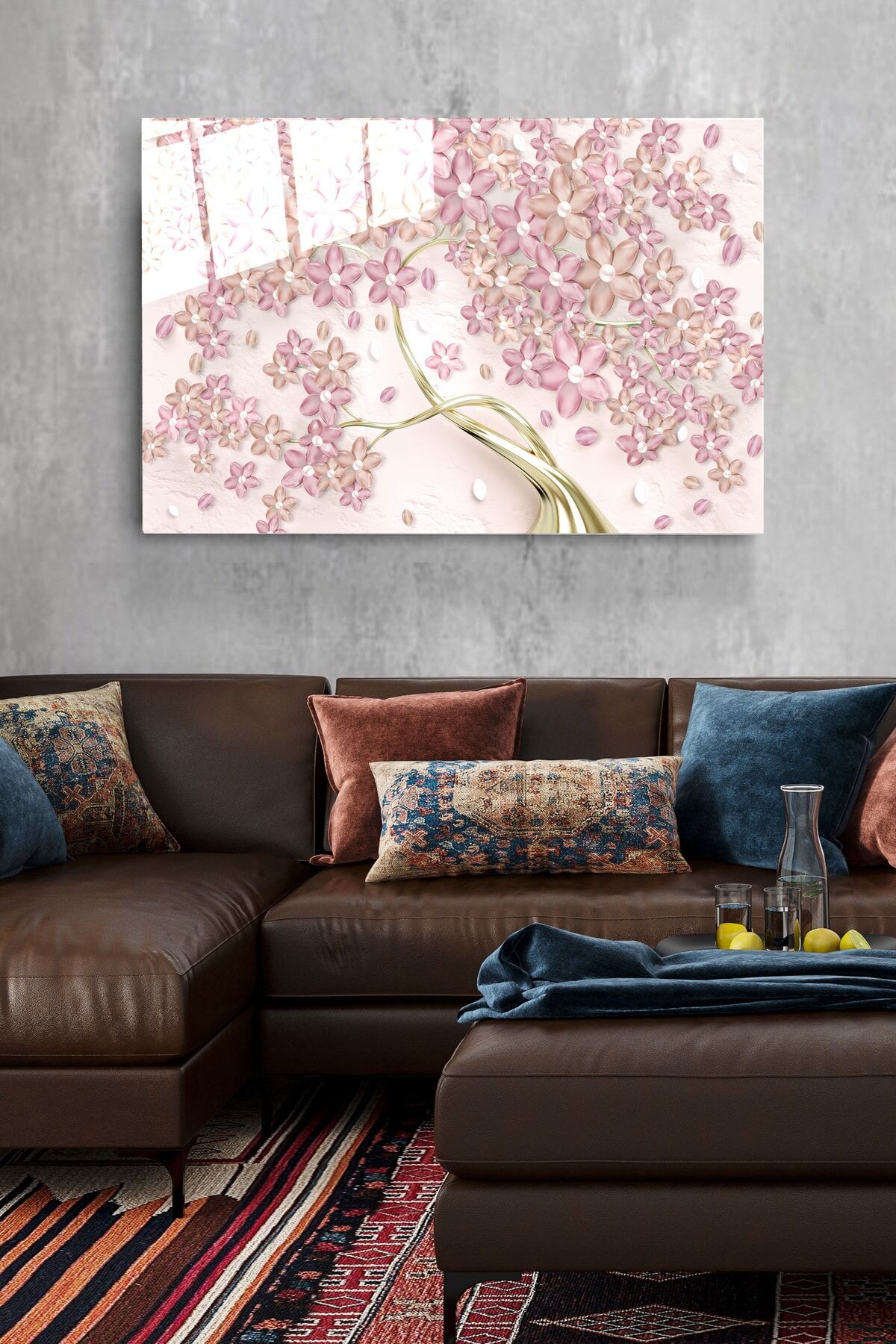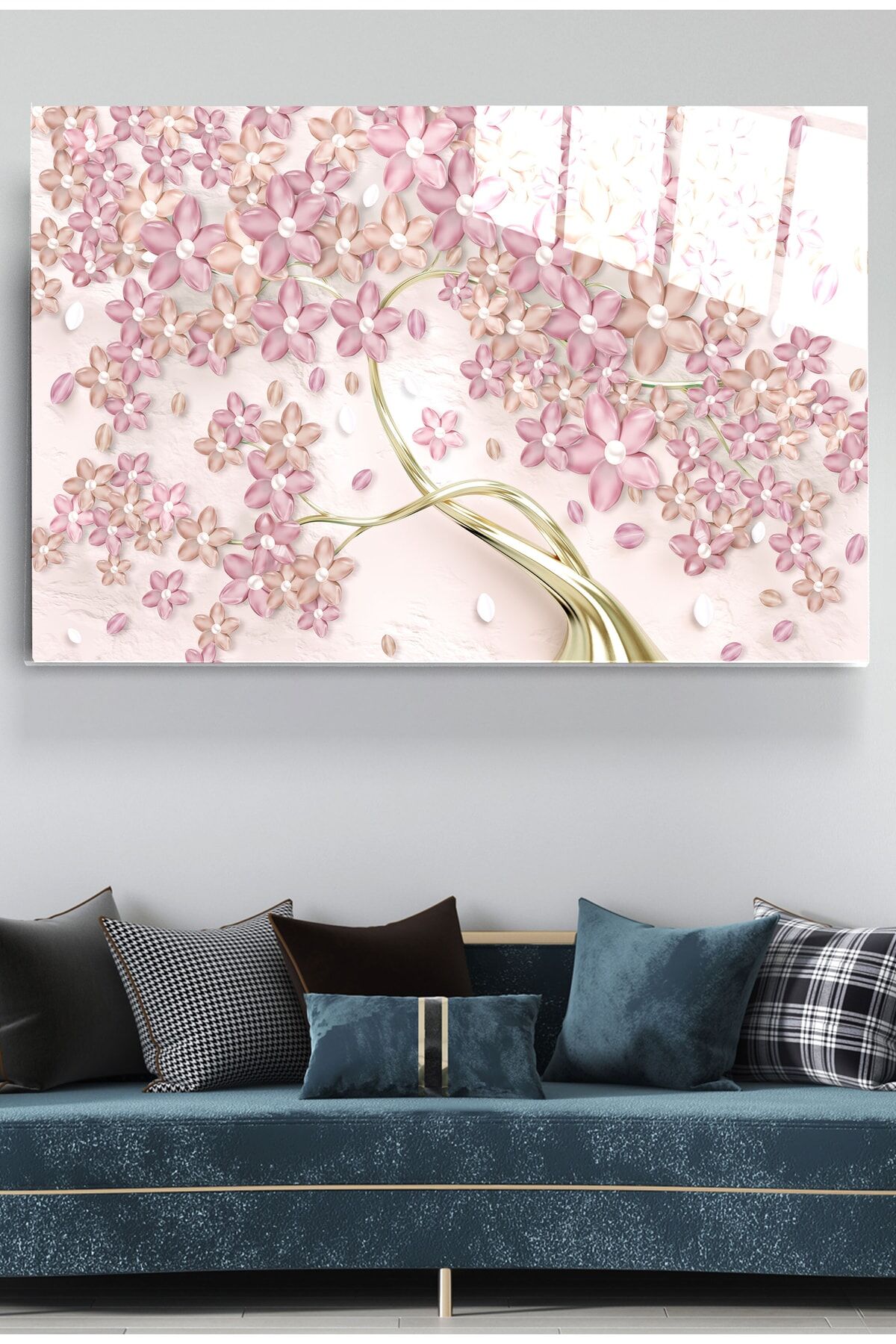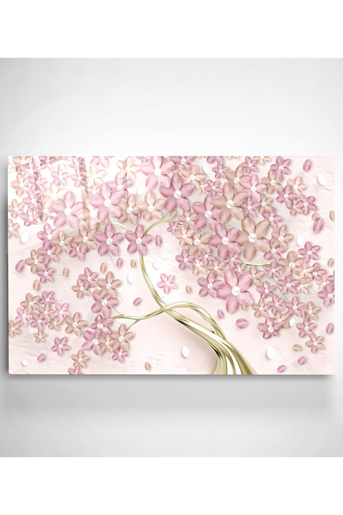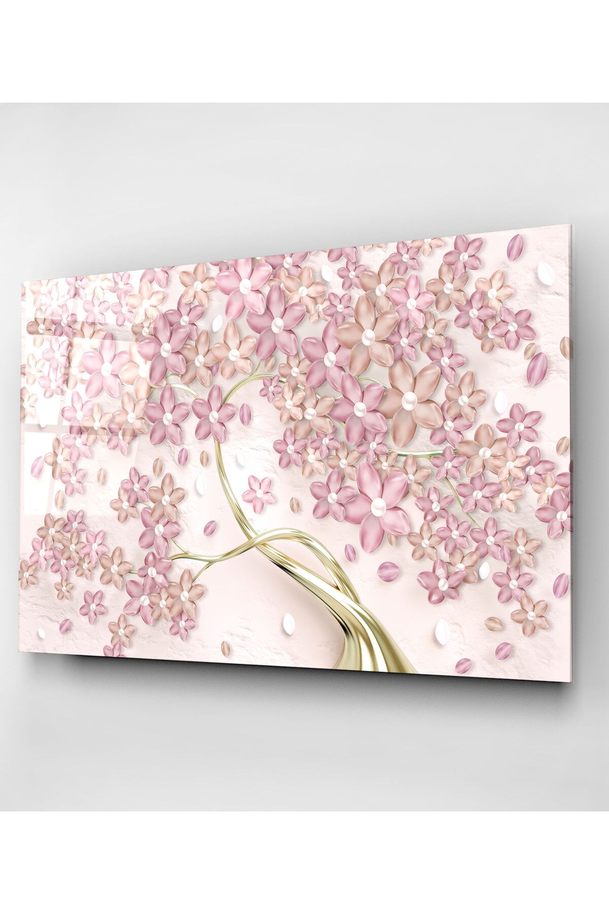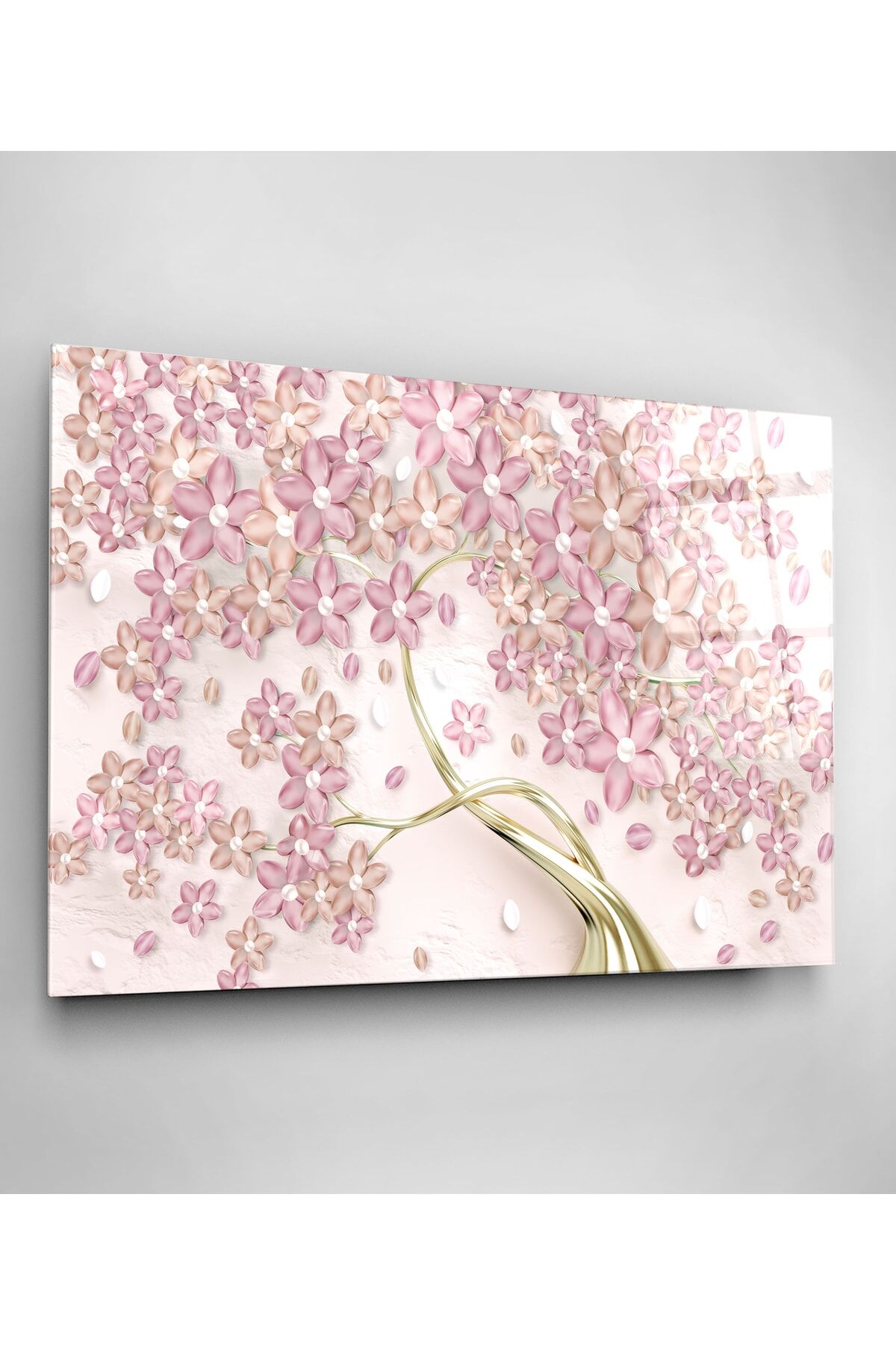 Pembe Çiçekler Cam Tablo, Dekoratif Cam Tablo