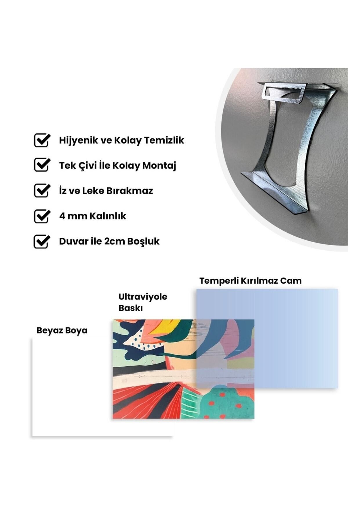 Cam tablolarımız 4 mm kalınlığında temper işlemi (ısıl işlem) görmüştür.; Kenarları rodajlanmış (kesiciliği giderilmiş) yüksek kaliteli düz camlardan oluşmaktadır.; Normal camlara göre kırılmaya 10 kat daha dayanıklıdır.; Gönderilirken özel koruma aparat ve ambalajları ile gönderilmektedir.; ; Tarafımızca hazırlanan özel tasarımlar doğrudan cam yüzeyine uv baskı tekniğiyle yüksek çözünürlüklü makinalarımız tarafından uygulanır.; Bu nedenle yüksek kaliteli,mükemmel bir görüntü derinliği sağlar.; Herhangi bir medyaya(folyo,kağıt v.; b.; ) baskı yapılmış görselin cam yüzeyine yapıştırılması şeklinde değildir.; Görsellerimiz camın arka yüzeyine doğrudan uv cam boyası kullanılarak basılır ve özel koruma boyası ile arka yüzey kapatılır.; Baskı cam ile arka koruma boyası arasında kalır.; Tasarımları ön yüzeyden camın parlaklığı ve şıklığı ile görürsünüz.; Cam tablolar zamanla solmazlar ve renkler canlılığını hiç kaybetmez.; ; Özel tasarım cam tablolar duvar dekorasyonunda yeni bir sayfa açmaktadır.; Özellikle ev ve ofis dekorasyonunda büyük tablolar duvarlarda çok şık bir görünüm sağlarlar.; Dekoratif ve zarif tablolar ev ve ofis duvarlarınıza estetik bir hava katar.; ; Tablolarımız sizler için özel olarak tasarlanmıştır.; ; Temizliği son derece kolay olan cam tablolarımızı,herhangi bir kimyasal ürünle veya nemli bez ile gönül rahatlığıyla silebilirsiniz.; Özel askı aparatı sayesinde ürünlerimizin duvardan kazara düşme olasılığı çok düşüktür.; Tek çivi ile kolayca duvara monte edebilirsiniz.; Ürün asıldığında duvardan 2 cm önde durmaktadır.; ; Kargo esnasında yaşanacak her türlü olumsuzluk(kırılma v.; b.; ) firmamıza aittir.; Kırılma olasılığı %1 in altındadır.; Özel çerçeveli kargo metodumuz Türkiyede yalnızca tarafımıza aittir bu sayede kırılma yaşanmamaktadır.; En ufak bir sorunda ise sizlere sağlam şekilde ulaşıncaya kadar tekrar gönderilir.; ; Üretici firma olarak özel tasarımlarıyla camı birleştirerek yaşam alanlarınıza şık bir görünüm ve modern bir hava katmayı amaç edinilmiştir.Kişiye özel Tablo seçeneğimiz de mevcuttur kişiye özel cam tablolalar için iletişime geçiniz.