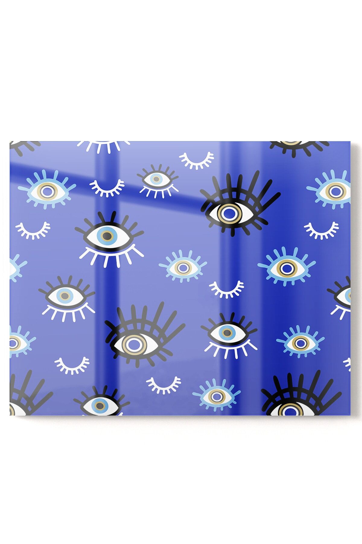 Premium Mutfak Cam Ocak Arkası Koruyucu Tezgah Ankastre Arkası Koruyucu 50x50cm | Göz Nazar Mavi