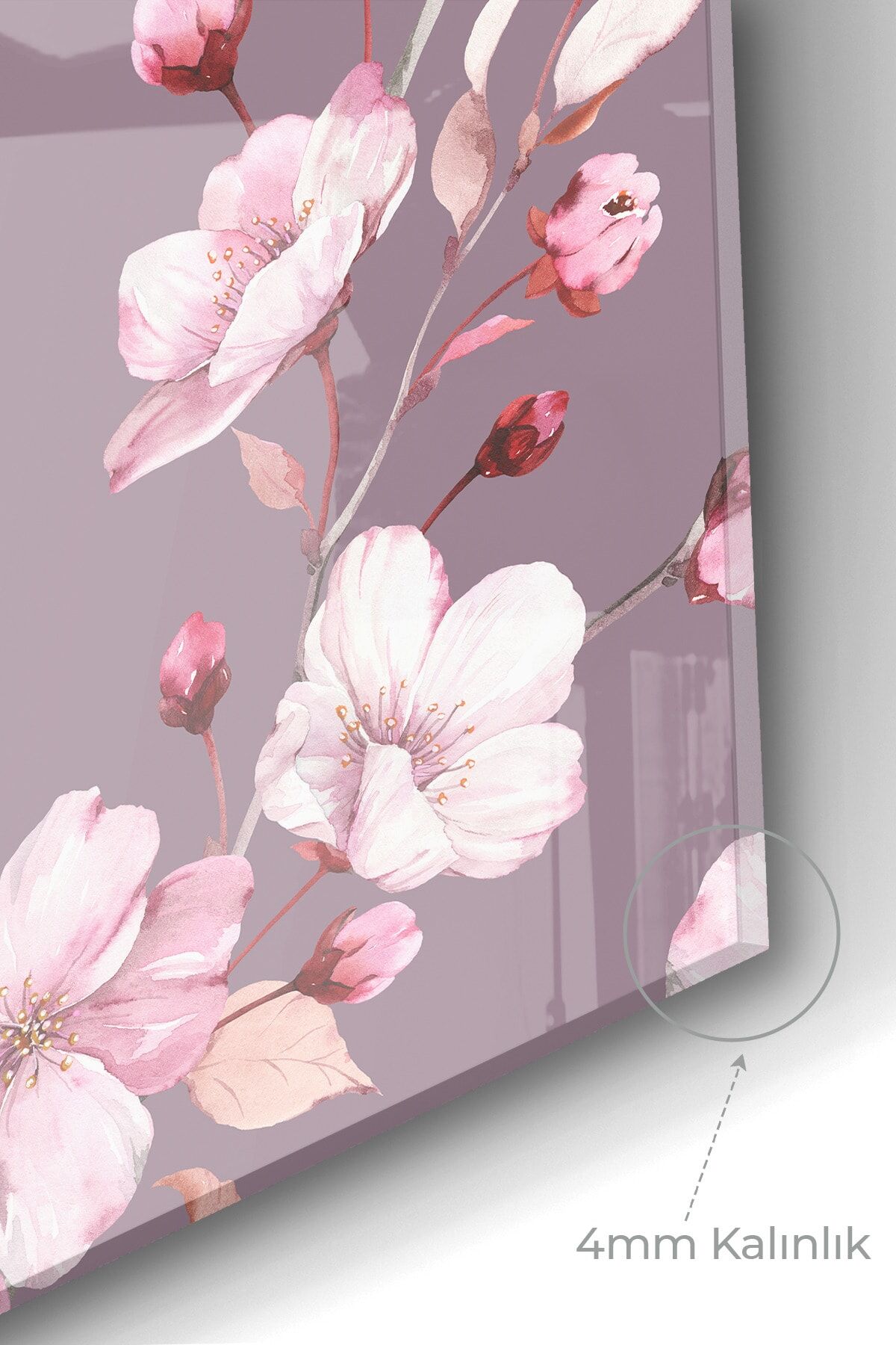 Premium Mutfak Cam Ocak Arkası Koruyucu Tezgah Ankastre Arkası Koruyucu 50x76cm | Çiçek Pembe