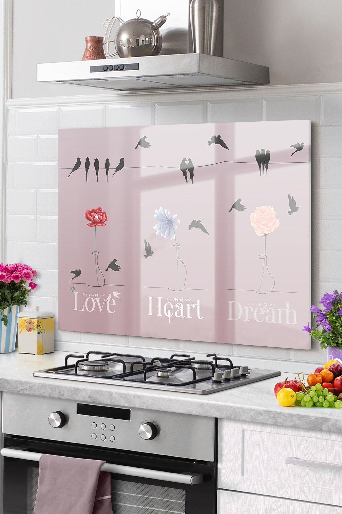 Premium Mutfak Cam Ocak Arkası Koruyucu Tezgah Ankastre Arkası Koruyucu 52x60cm | Love Heart