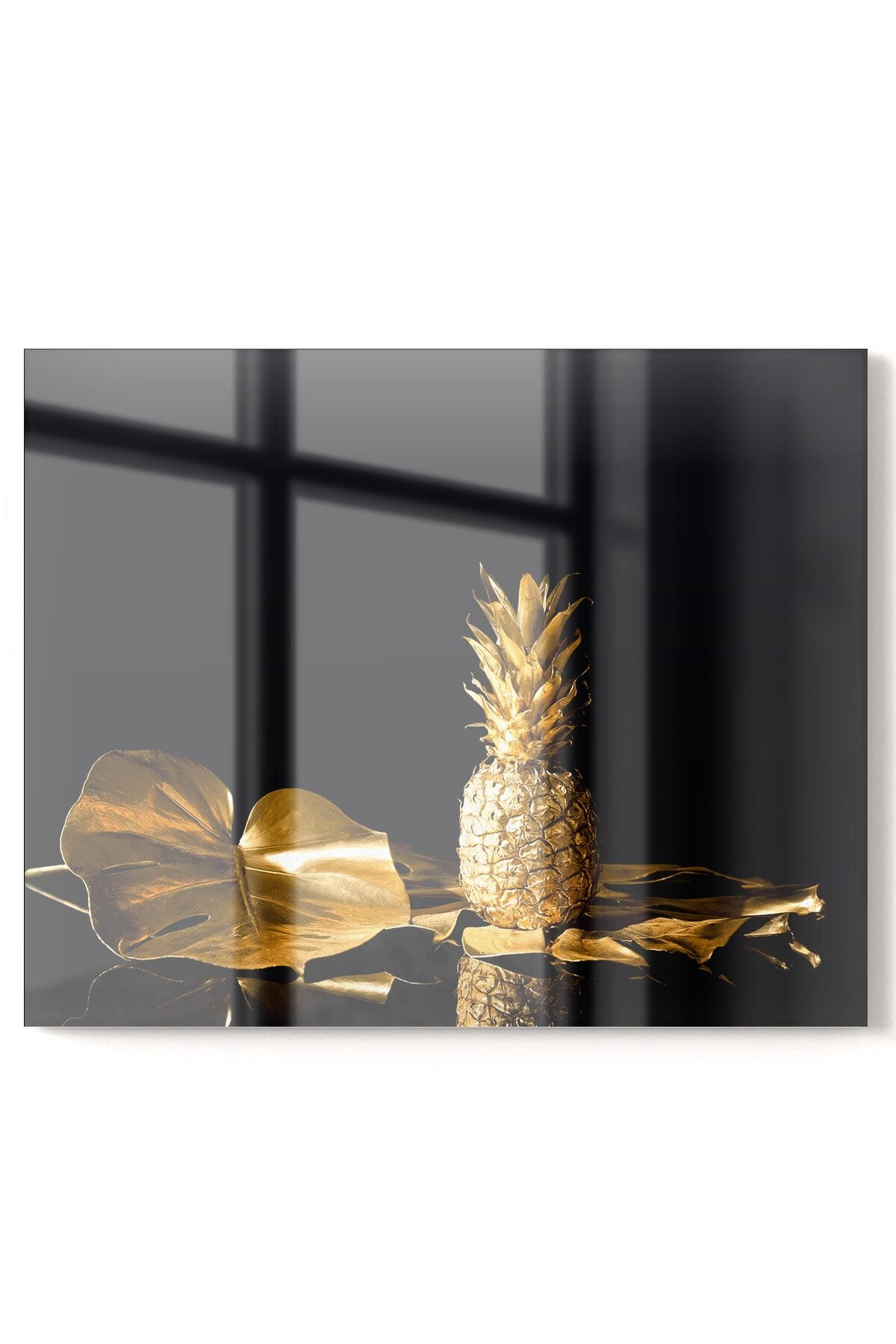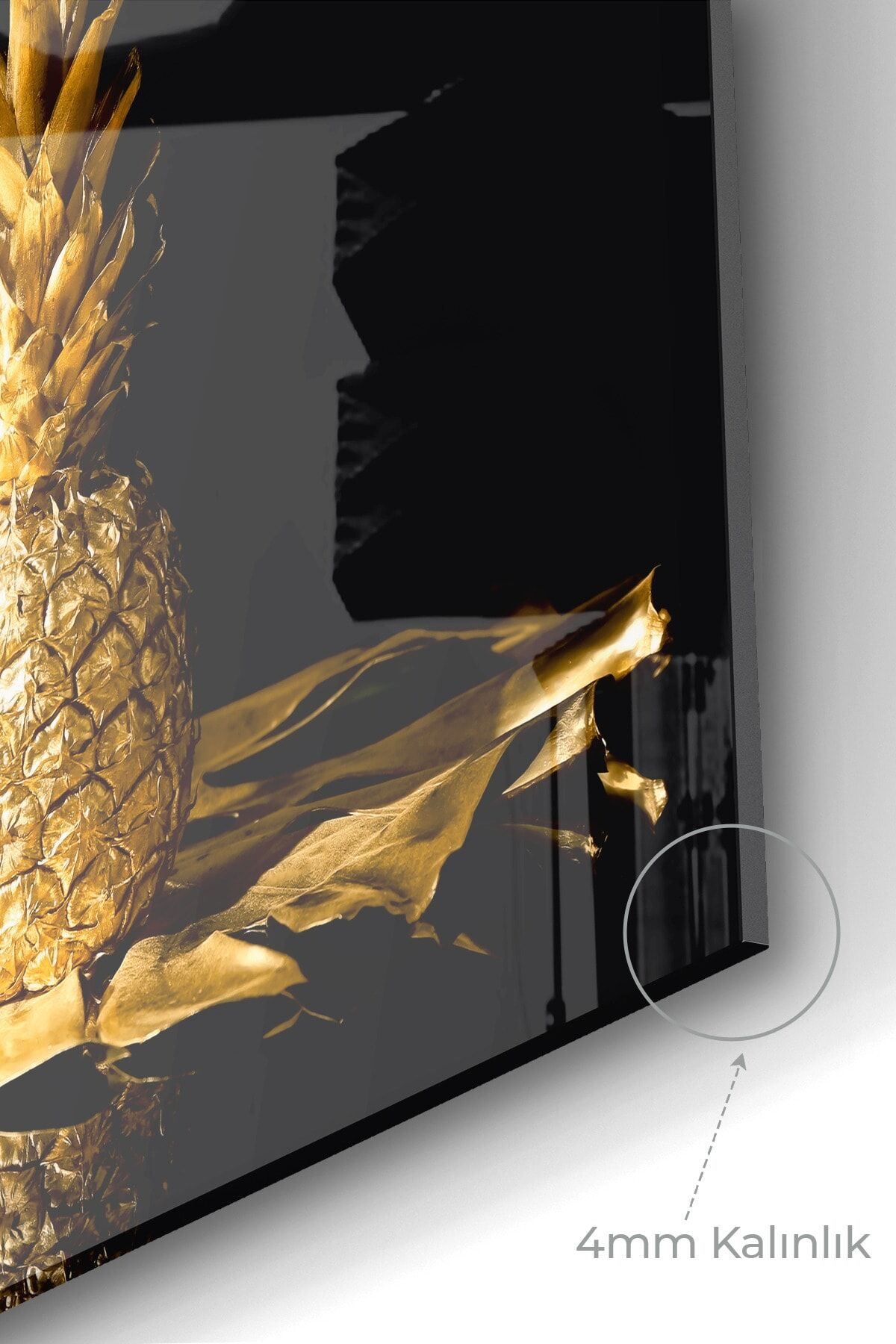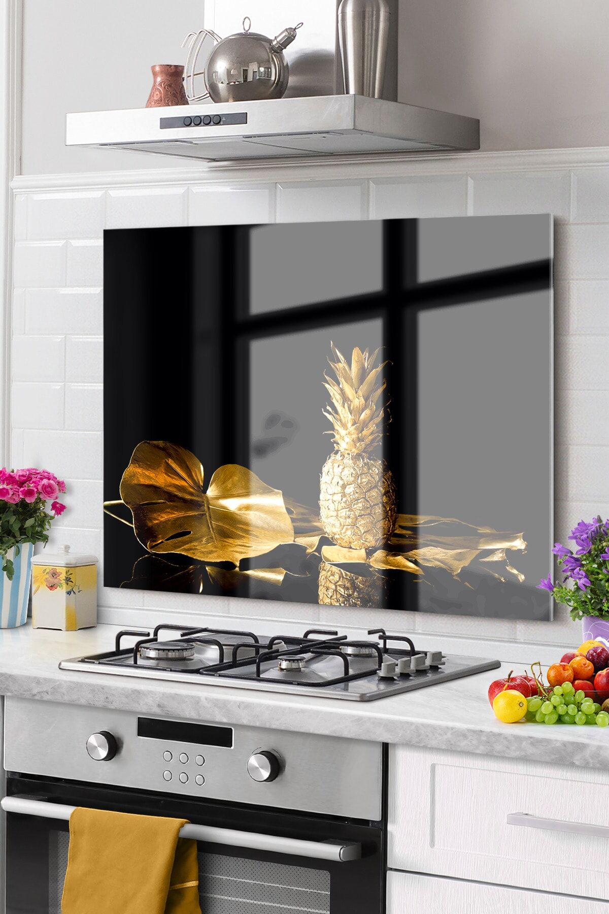 Premium Mutfak Cam Ocak Arkası Koruyucu Tezgah Ankastre Arkası Koruyucu | Gold Ananas