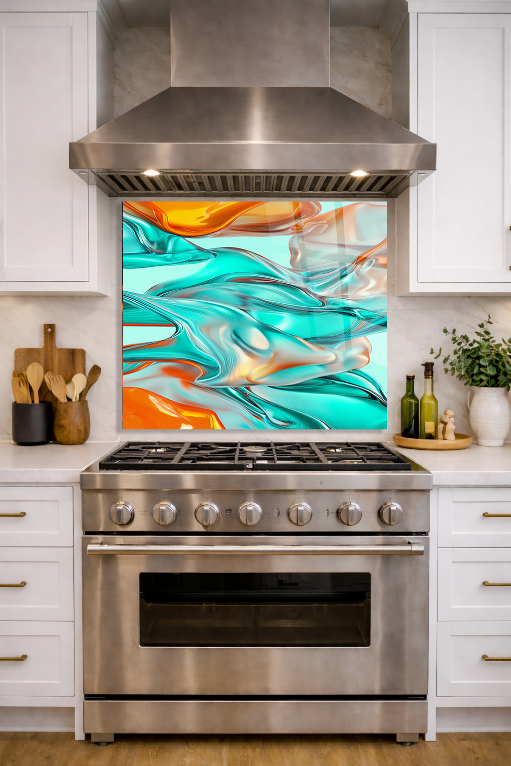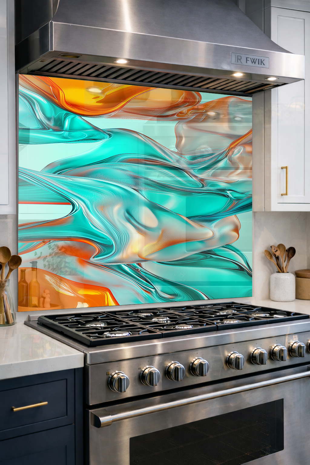 Premium Mutfak Cam Ocak Arkası Koruyucu Tezgah Ankastre Arkası Koruyucu I Dalgalı Metal Soyut Tasarım