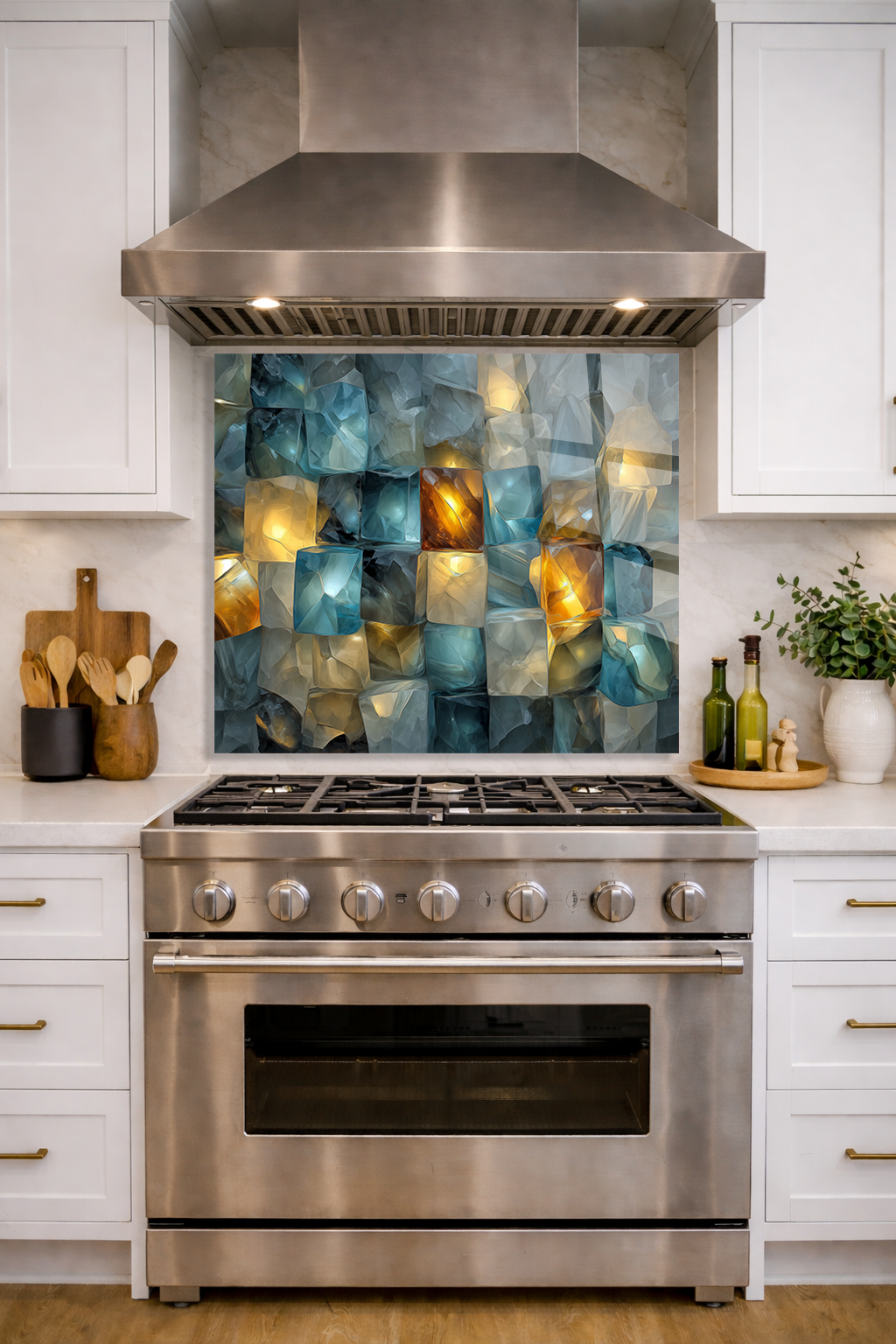 Premium Mutfak Cam Ocak Arkası Koruyucu Tezgah Ankastre Arkası Koruyucu I Enerji Taşları