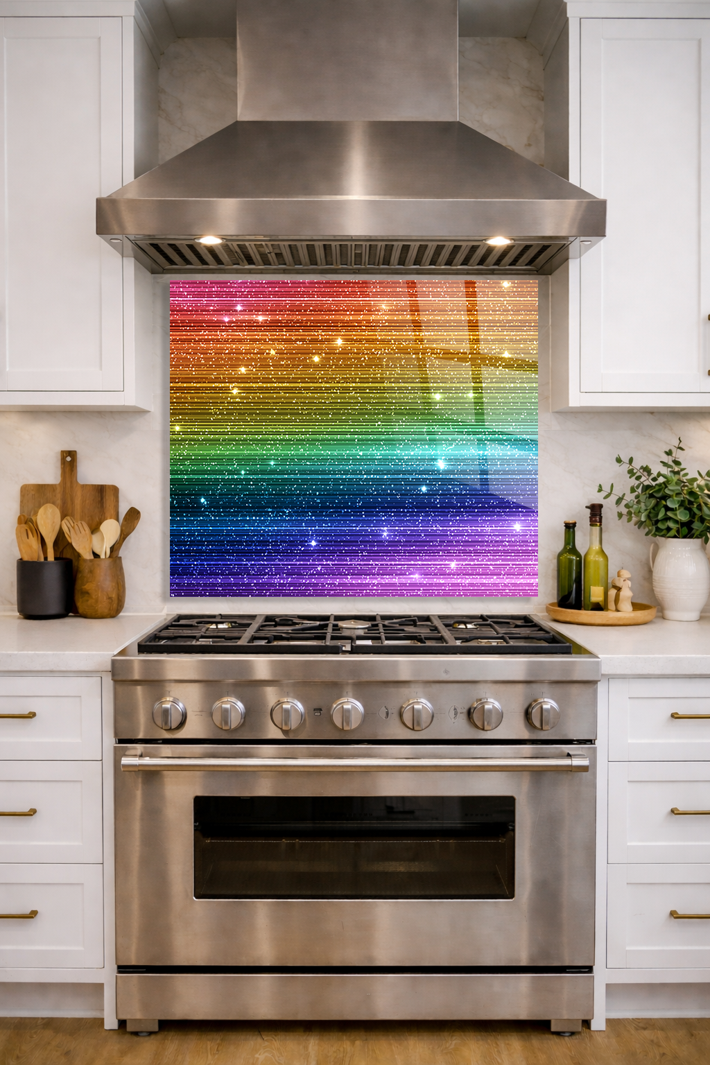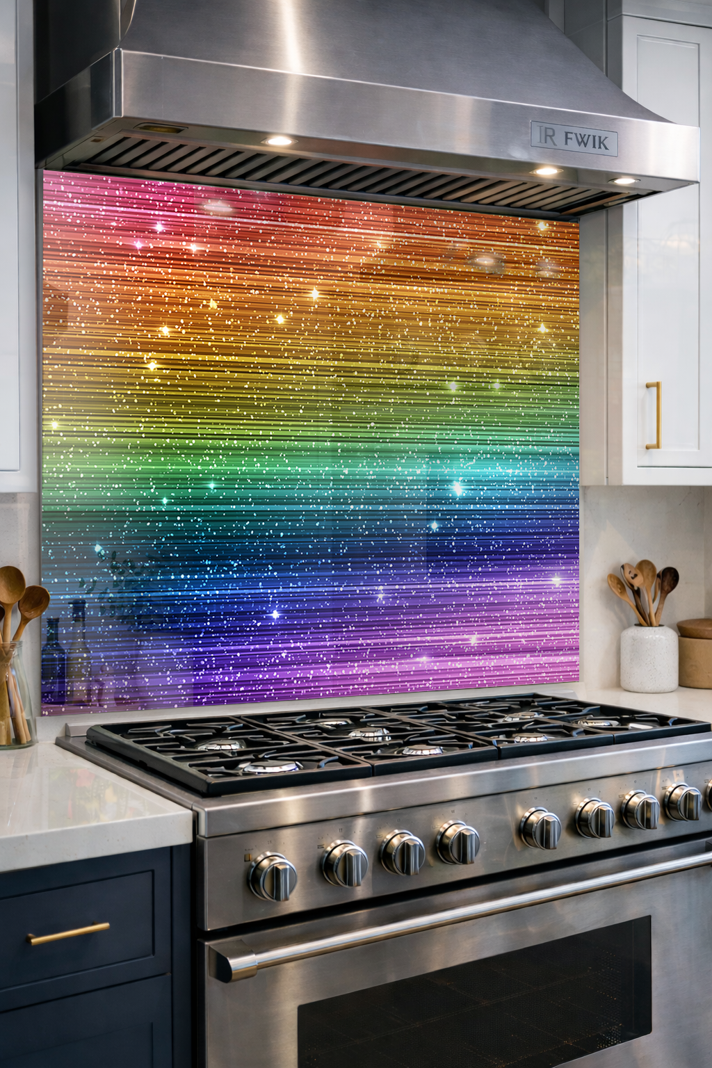 Premium Mutfak Cam Ocak Arkası Koruyucu Tezgah Ankastre Arkası Koruyucu I Işıltılı Rengarenk