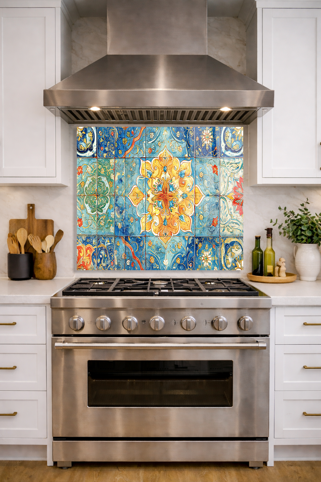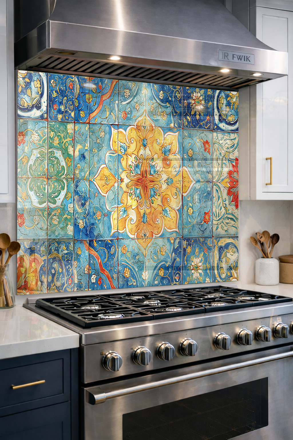 Premium Mutfak Cam Ocak Arkası Koruyucu Tezgah Ankastre Arkası Koruyucu I Mozaik Desen