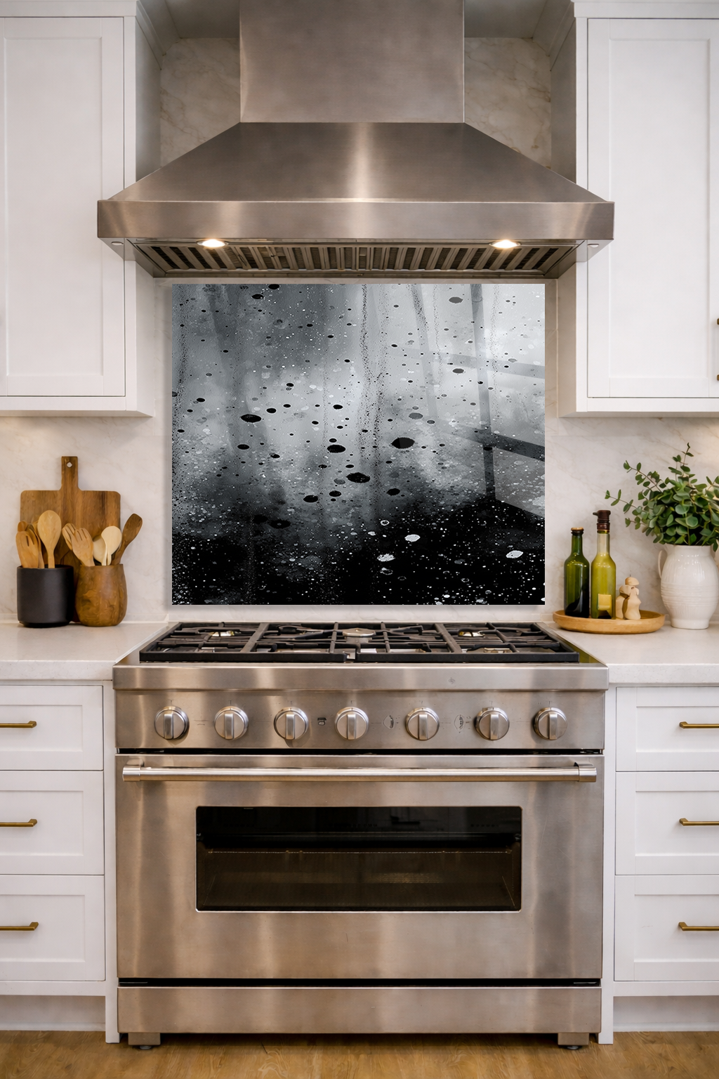 Premium Mutfak Cam Ocak Arkası Koruyucu Tezgah Ankastre Arkası Koruyucu I Siyah Soyut