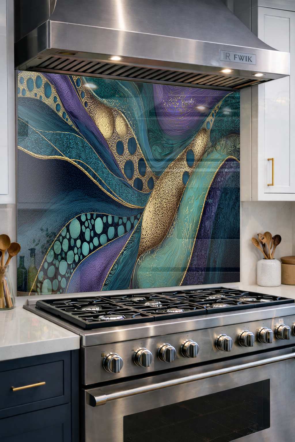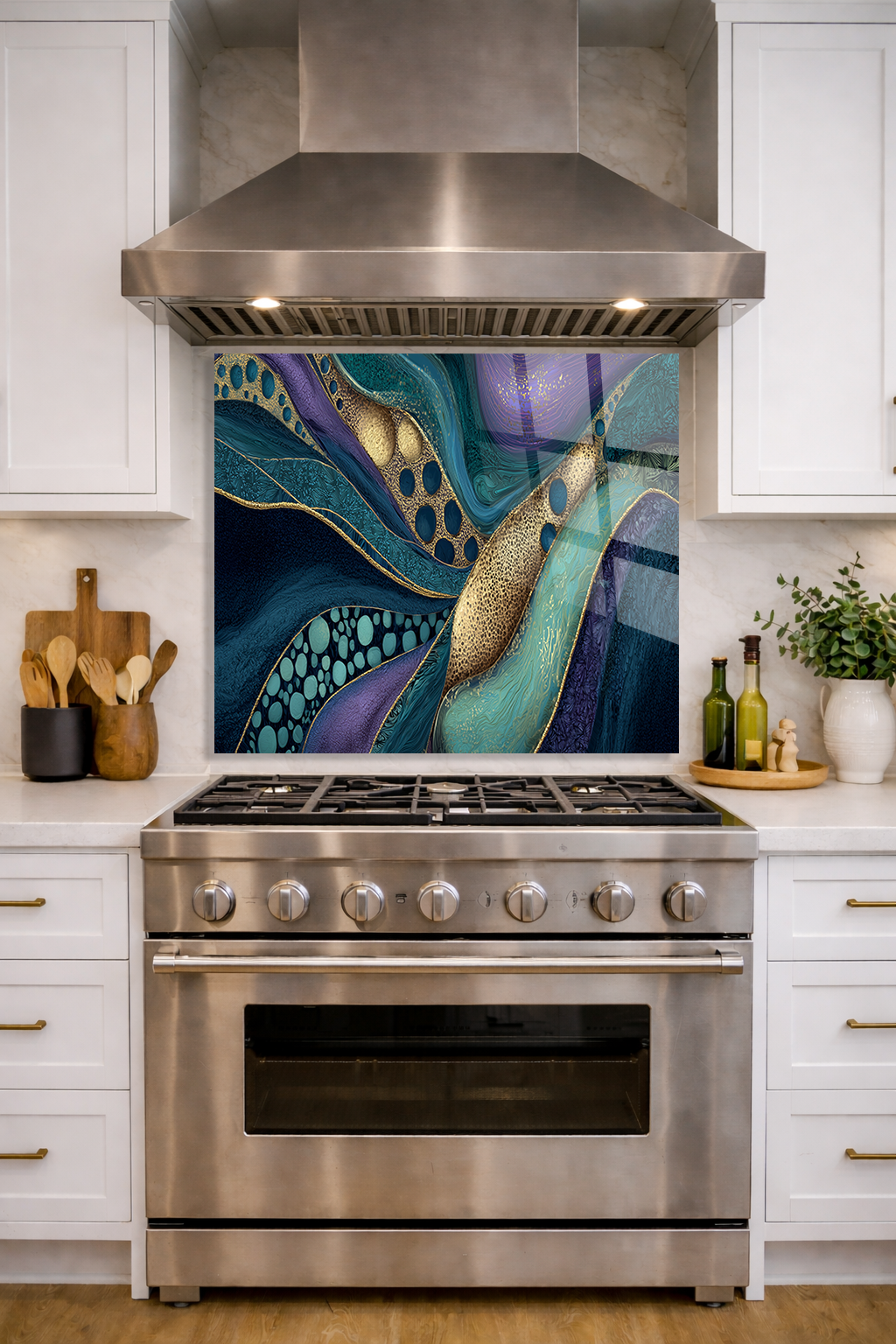 Premium Mutfak Cam Ocak Arkası Koruyucu Tezgah Ankastre Arkası Koruyucu I Soyut Modern