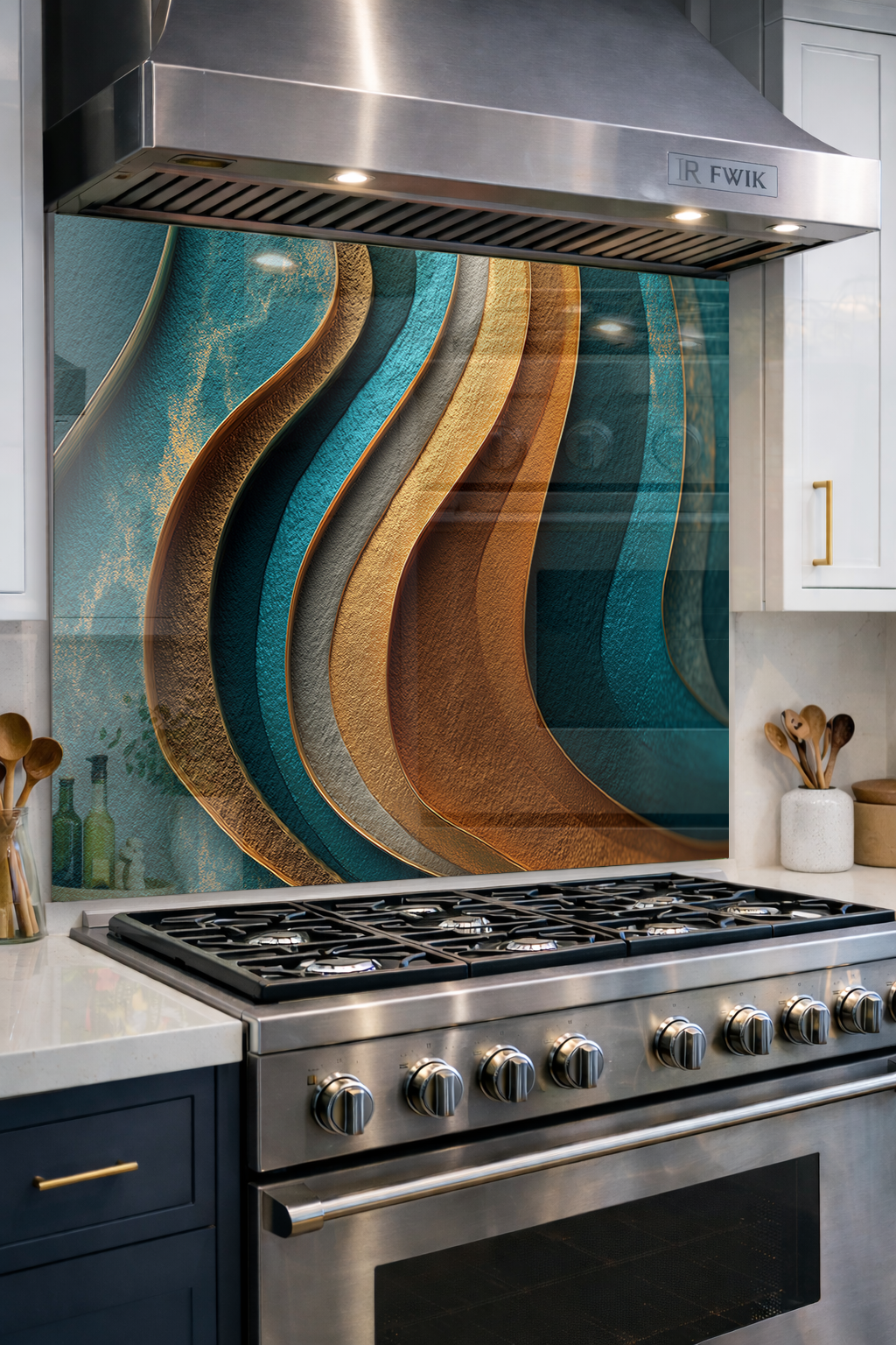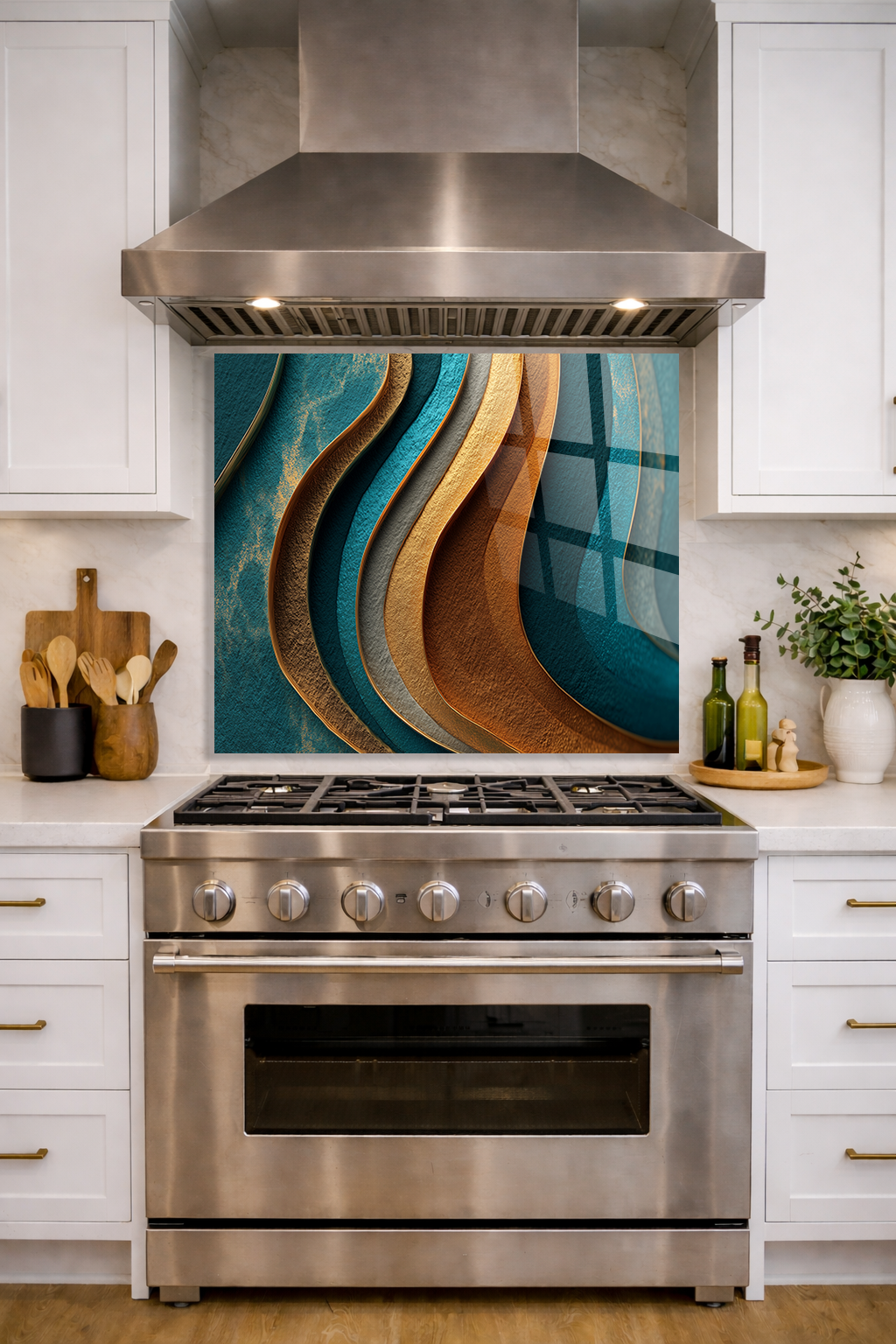 Premium Mutfak Cam Ocak Arkası Koruyucu Tezgah Ankastre Arkası Koruyucu I Soyut Modern