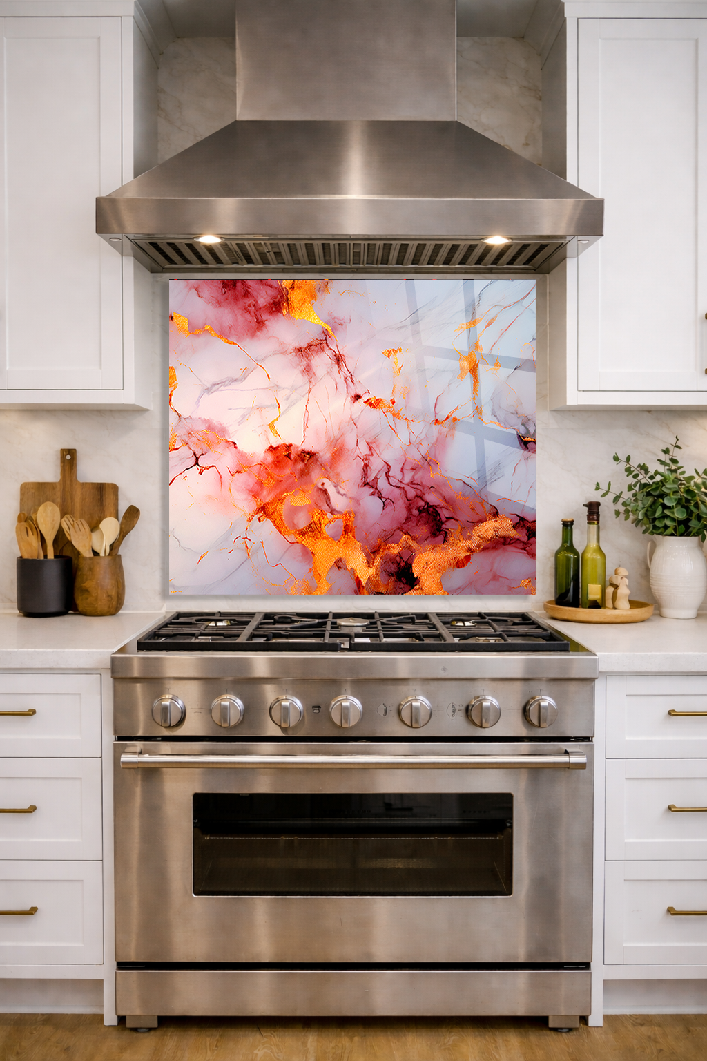 Premium Mutfak Cam Ocak Arkası Koruyucu Tezgah Ankastre Arkası Koruyucu | Pembe Mermer Tasarımı