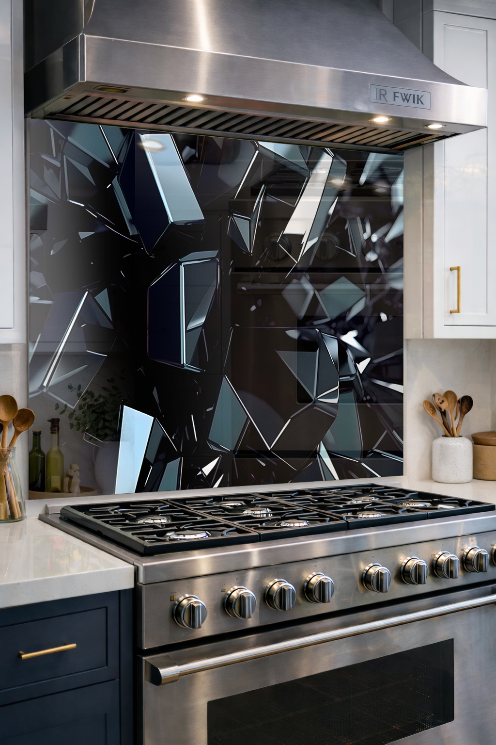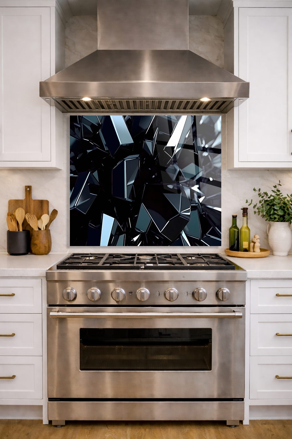 Premium Mutfak Cam Ocak Arkası Koruyucu Tezgah Ankastre Arkası Koruyucu | Siyah Kristaller