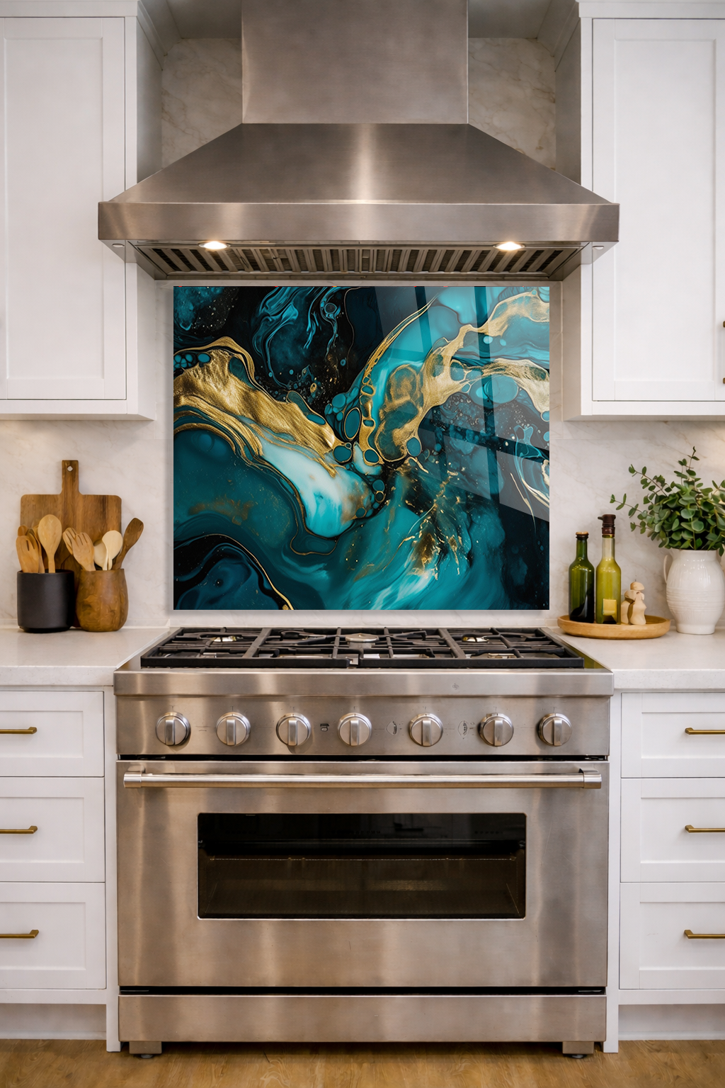 Premium Mutfak Cam Ocak Arkası Koruyucu Tezgah Ankastre Arkası Koruyucu | Yeşil Mermer