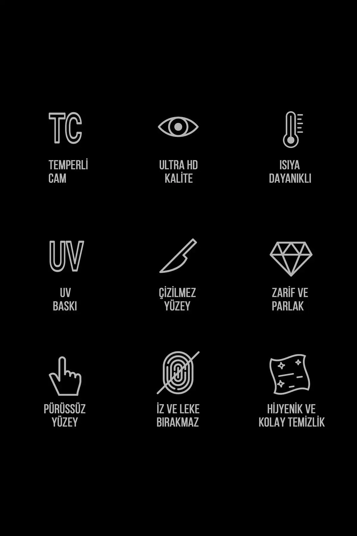Ocakların tezgah arkalarında oluşturmuş olduğu yağ vb. kirlerin cam üzerinden temizlenmesi çok daha kolaydır. ; Nemli bezle kolaylıkla temizlenebilme özelliğine sahiptir.; Duvara montajı son derece basit olan bu şık ürün ile farklı yenilikçi iç dekorasyon çözümü sunulmaktadır. ; Arka kısmında bulunan çift taraflı bant ile kolayca monte edebilirsiniz.; Mutfak dekoru olarak canlı renkleriyle şık bir görünüm sağlar. ; UV baskı tekniği ile kendi üretimimizdir. ; Isıya dayanıklıdır. ; 4mm kalınlığında temperli camdır.;