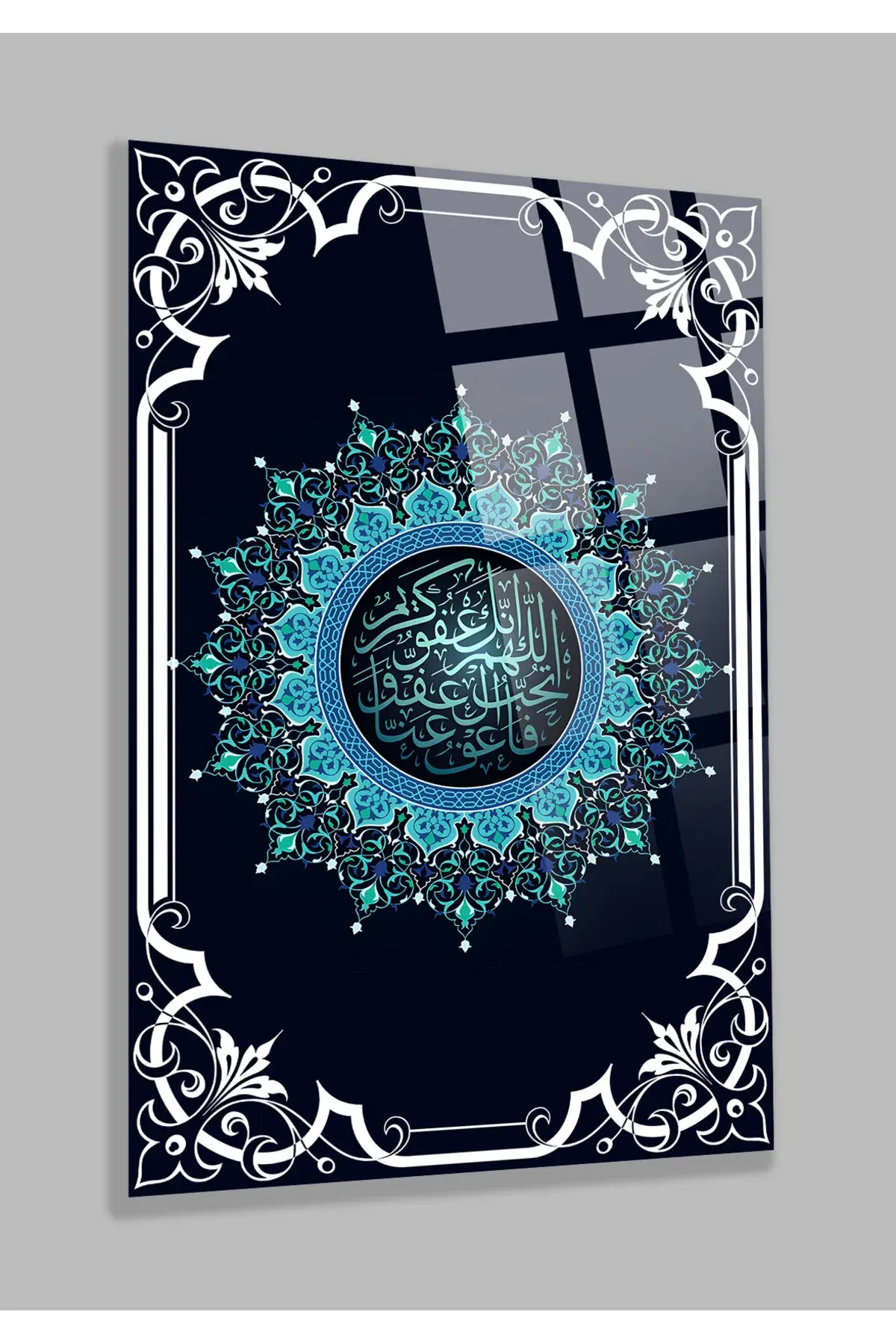 Ramazan Kareem KIRILMAZ LÜKS CAM TABLO EV HEDİYESİ İŞ YERİ HEDİYESİ DİNİ İSLAMİ CAM TABLO Lacivert