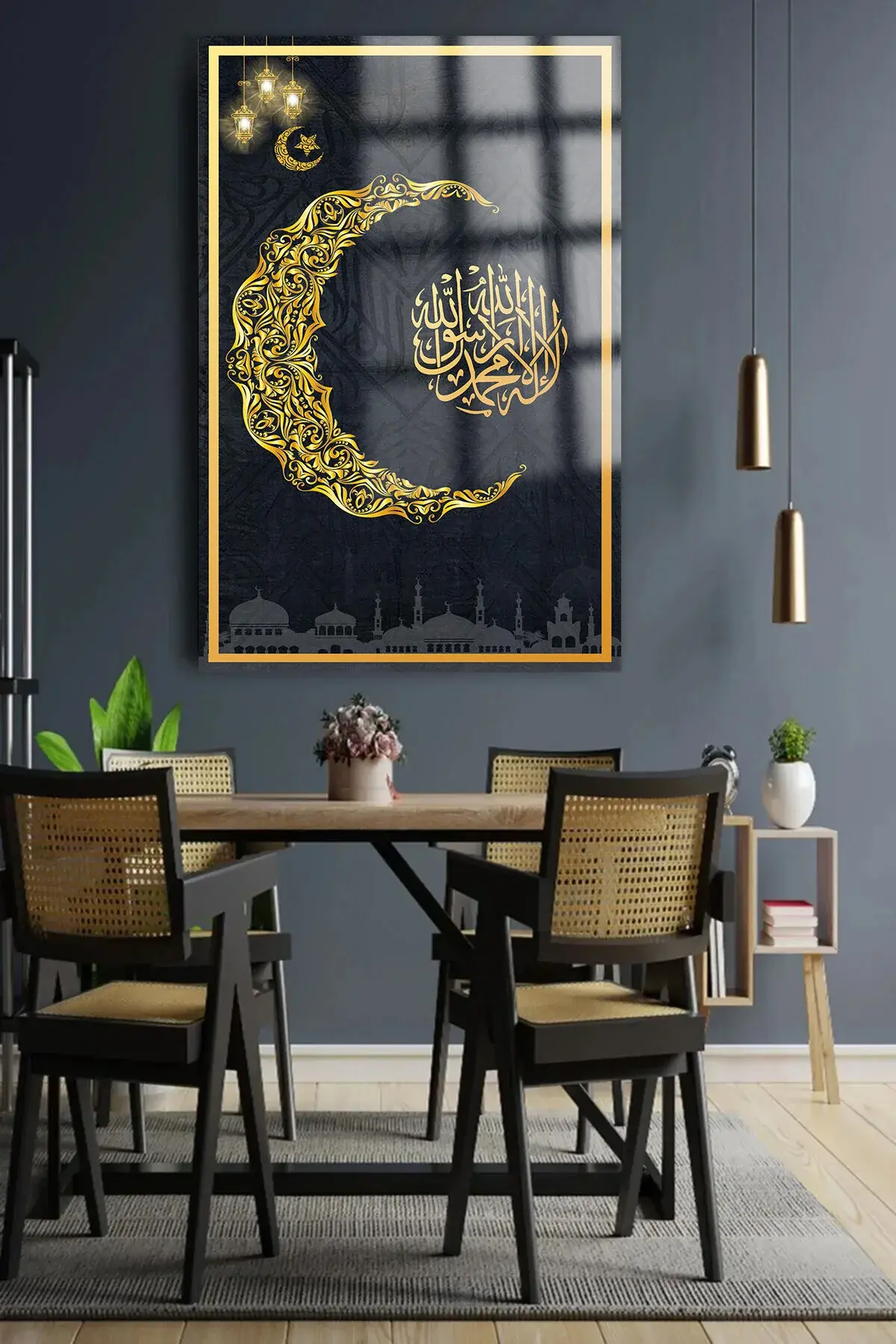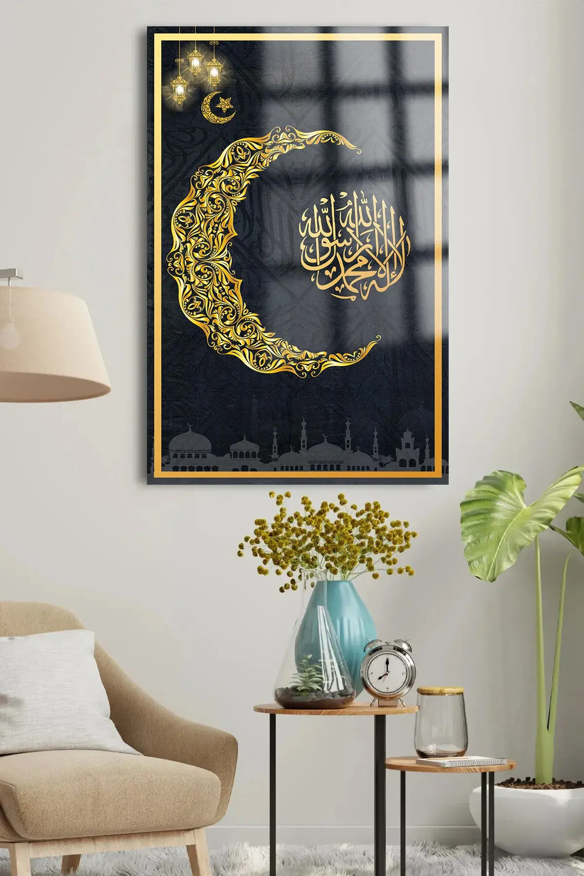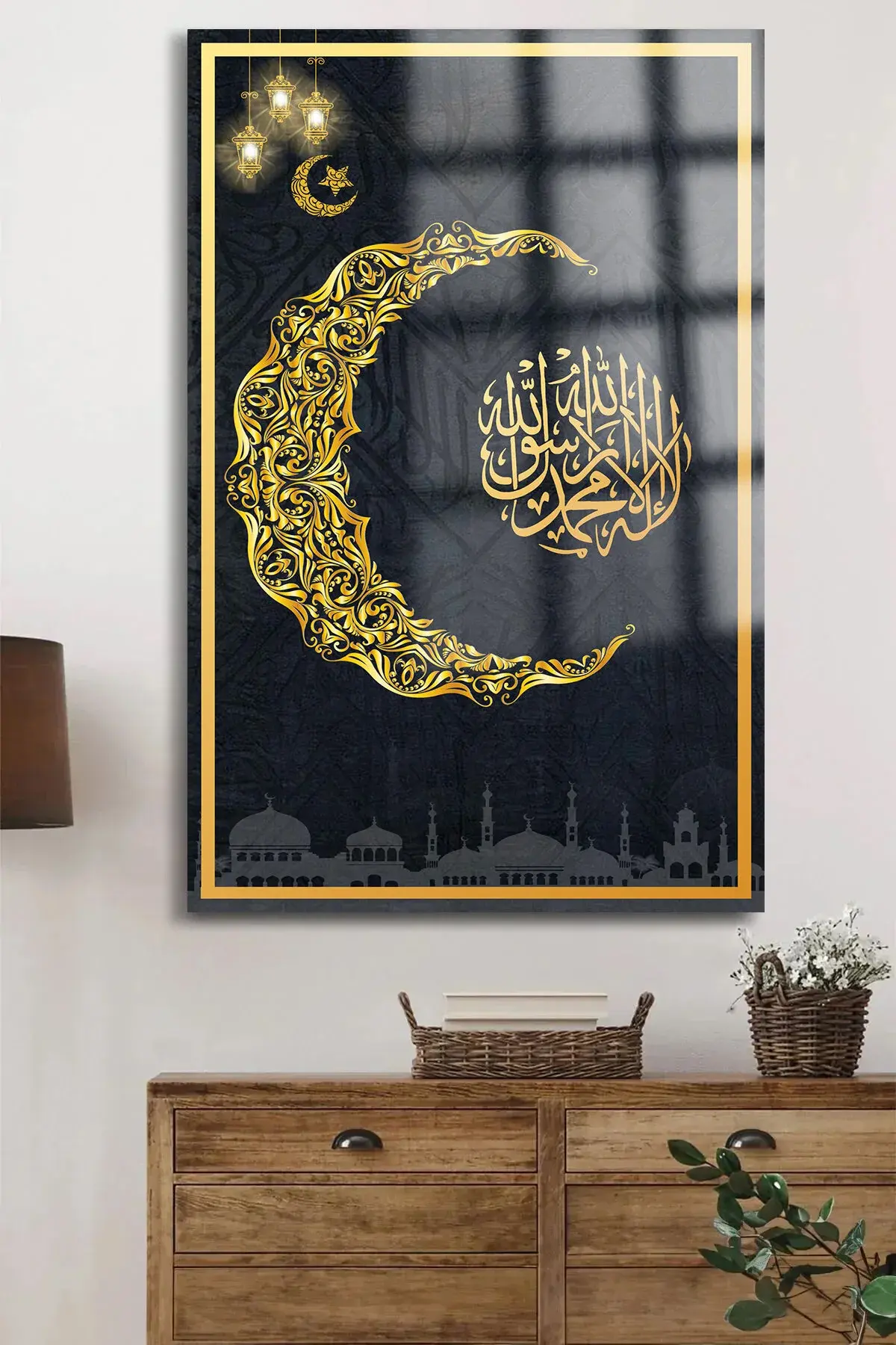 RAMAZAN ÖZEL TASARIM KIRILMAZ LÜKS CAM TABLO EV HEDİYESİ İŞ YERİ HEDİYESİ DİNİ İSLAMİ CAM TABLO Siyah