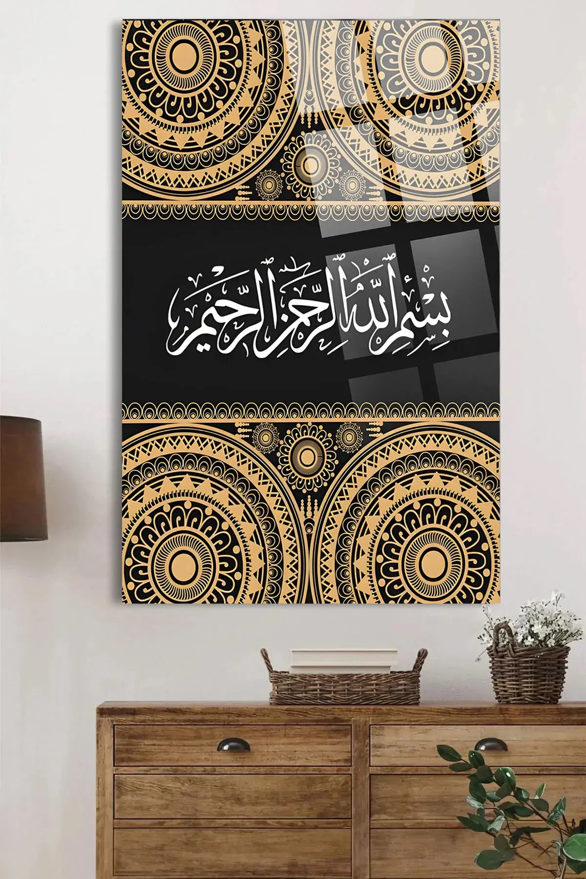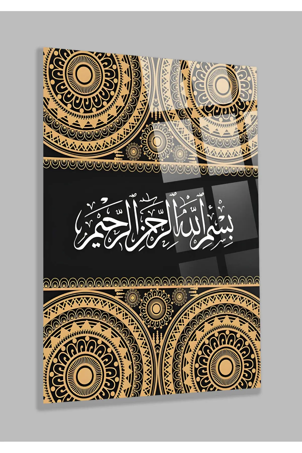 Raûf En merhametli, en esirgeyici Allah'ın adıyla KIRILMAZ CAM TABLO EV HEDİYESİ DİNİ İSLAMİ Kahverengi