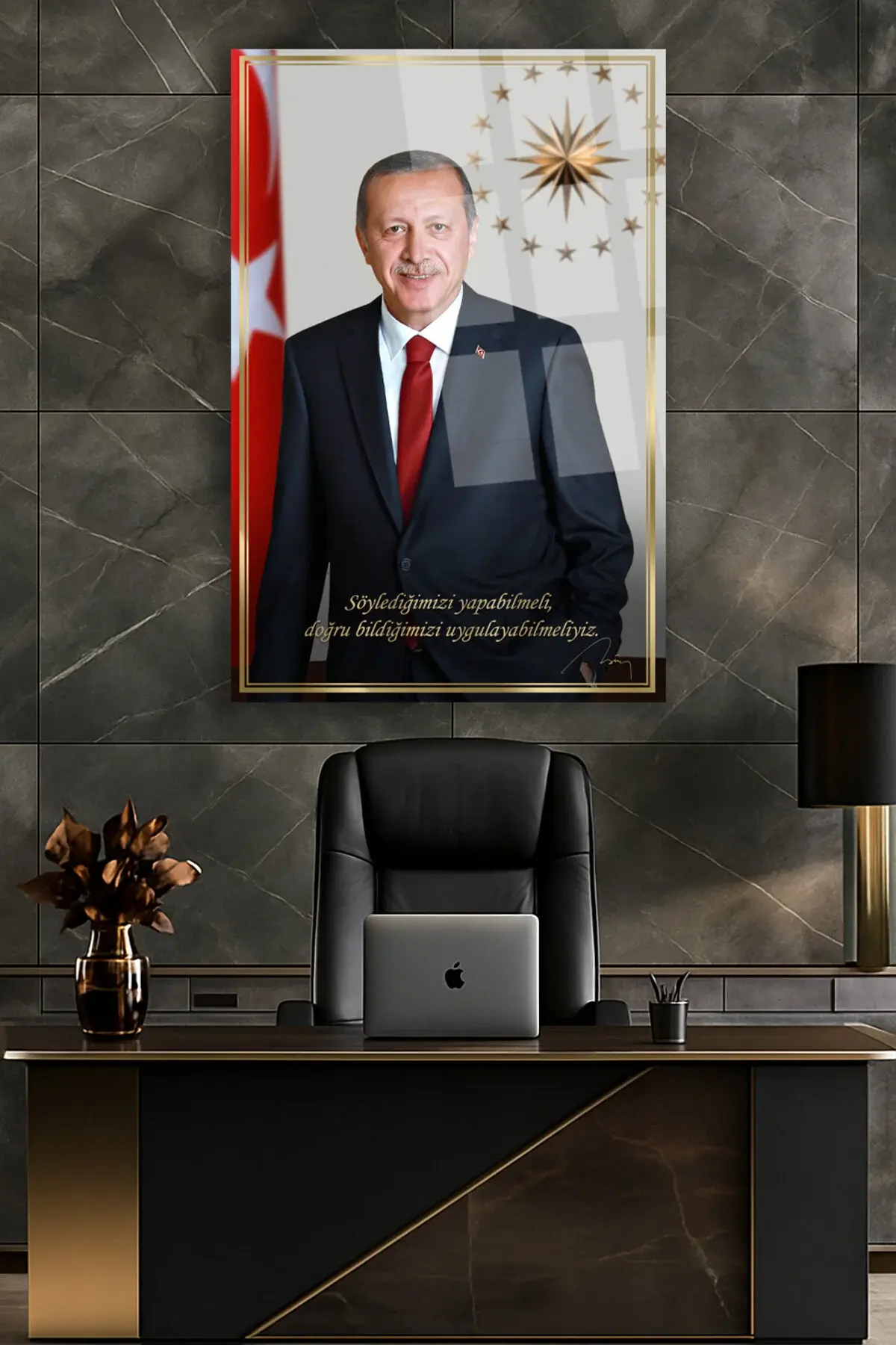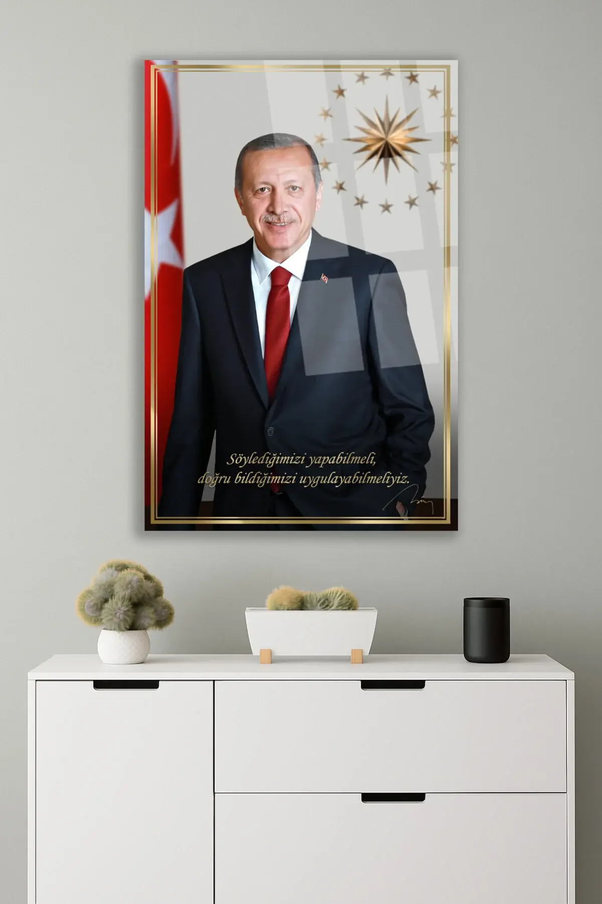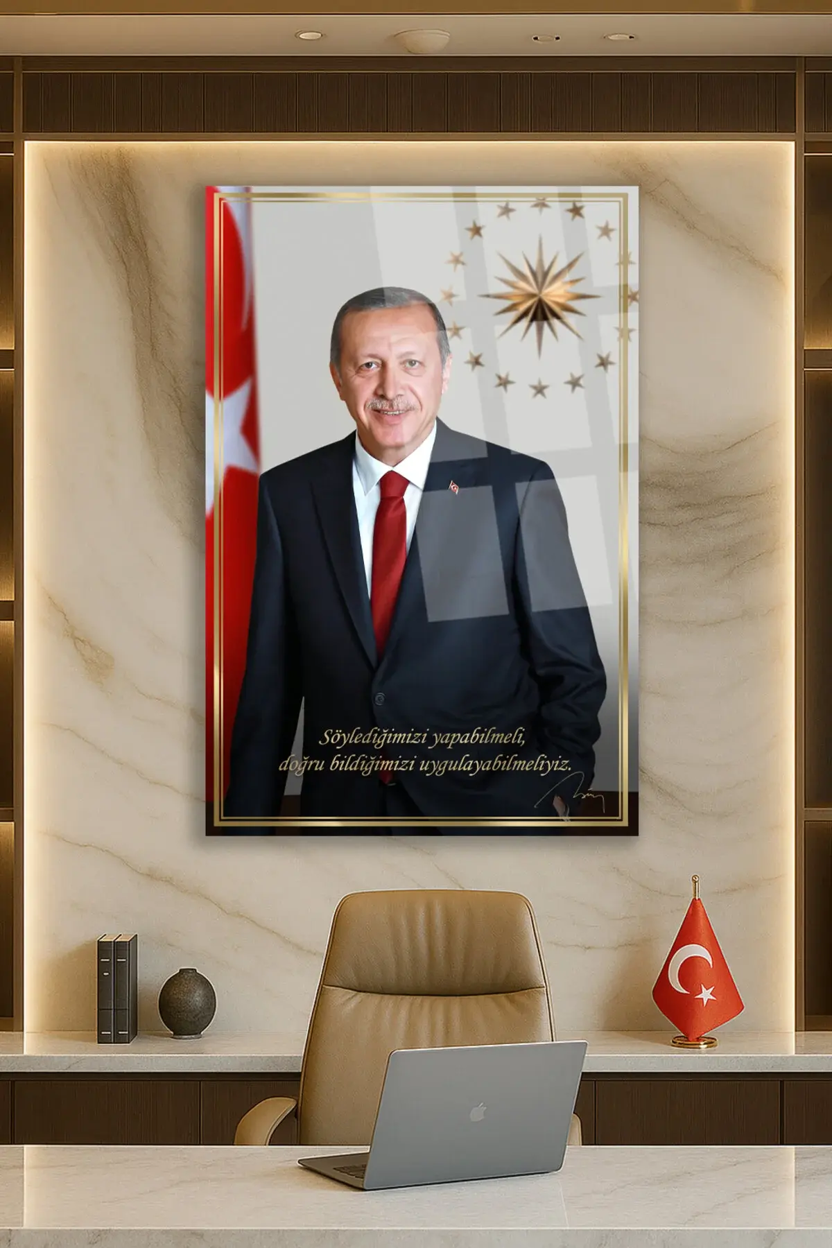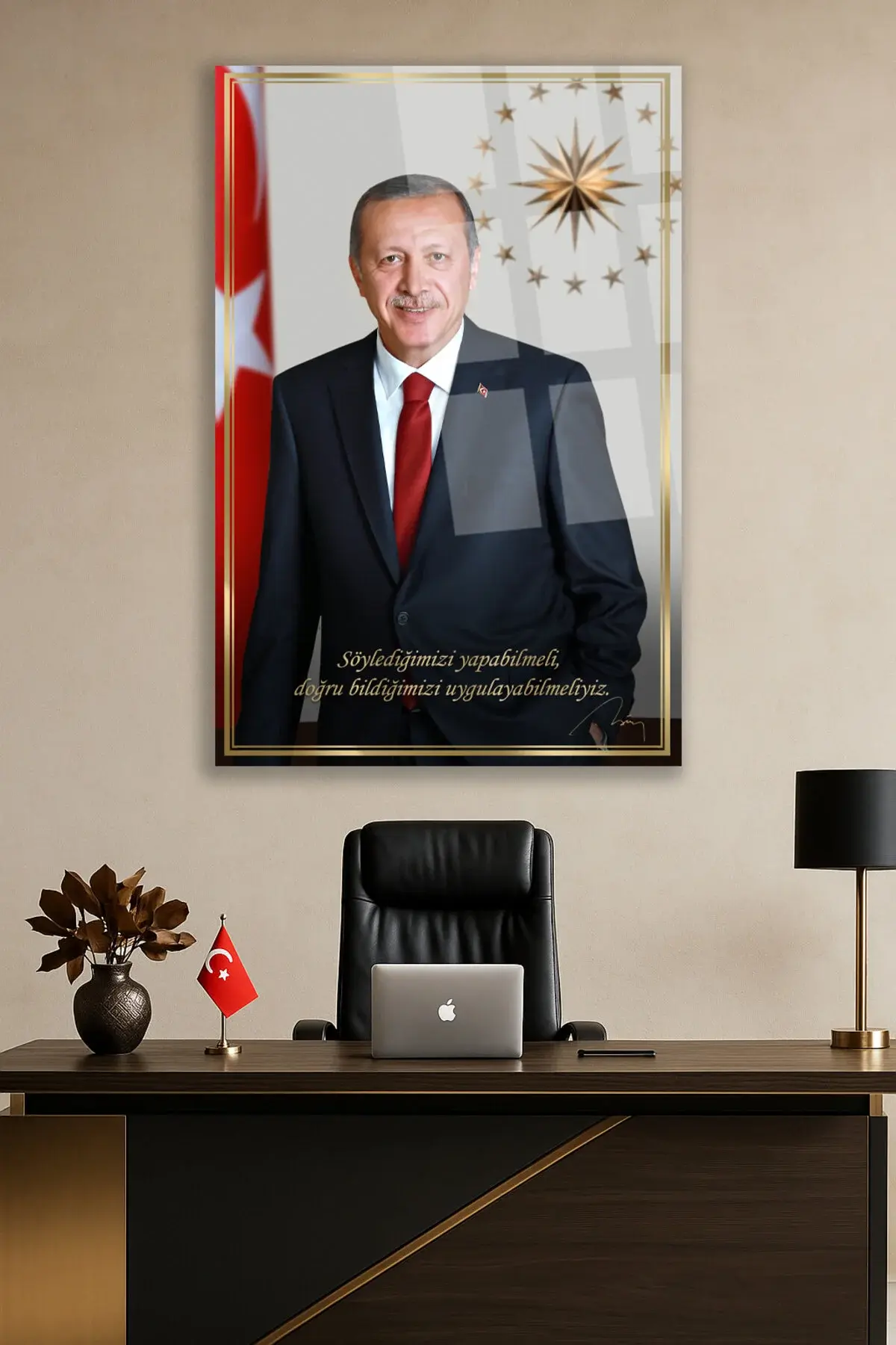 RECEP TAYİP ERDOĞAN TABLOSU AKP HEDİYE KIRILMAZ LÜKS CAM TABLO ULTRA CANLI RENKLER LÜKS HEDİYE TABLO