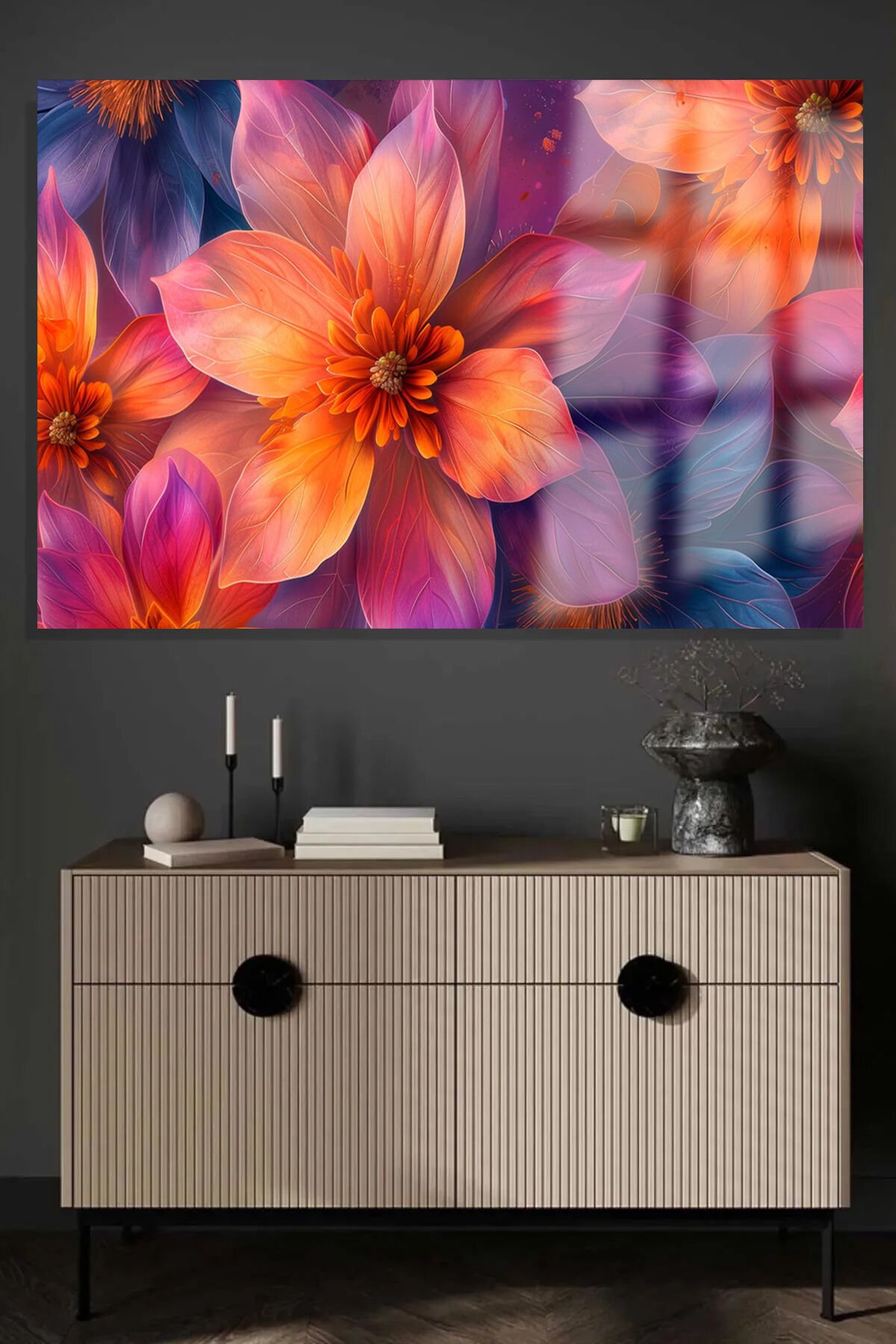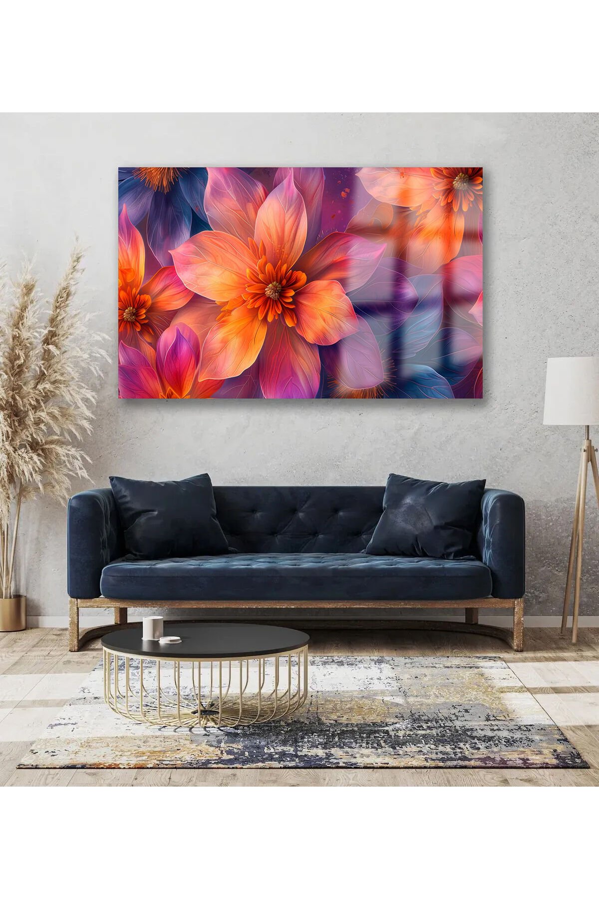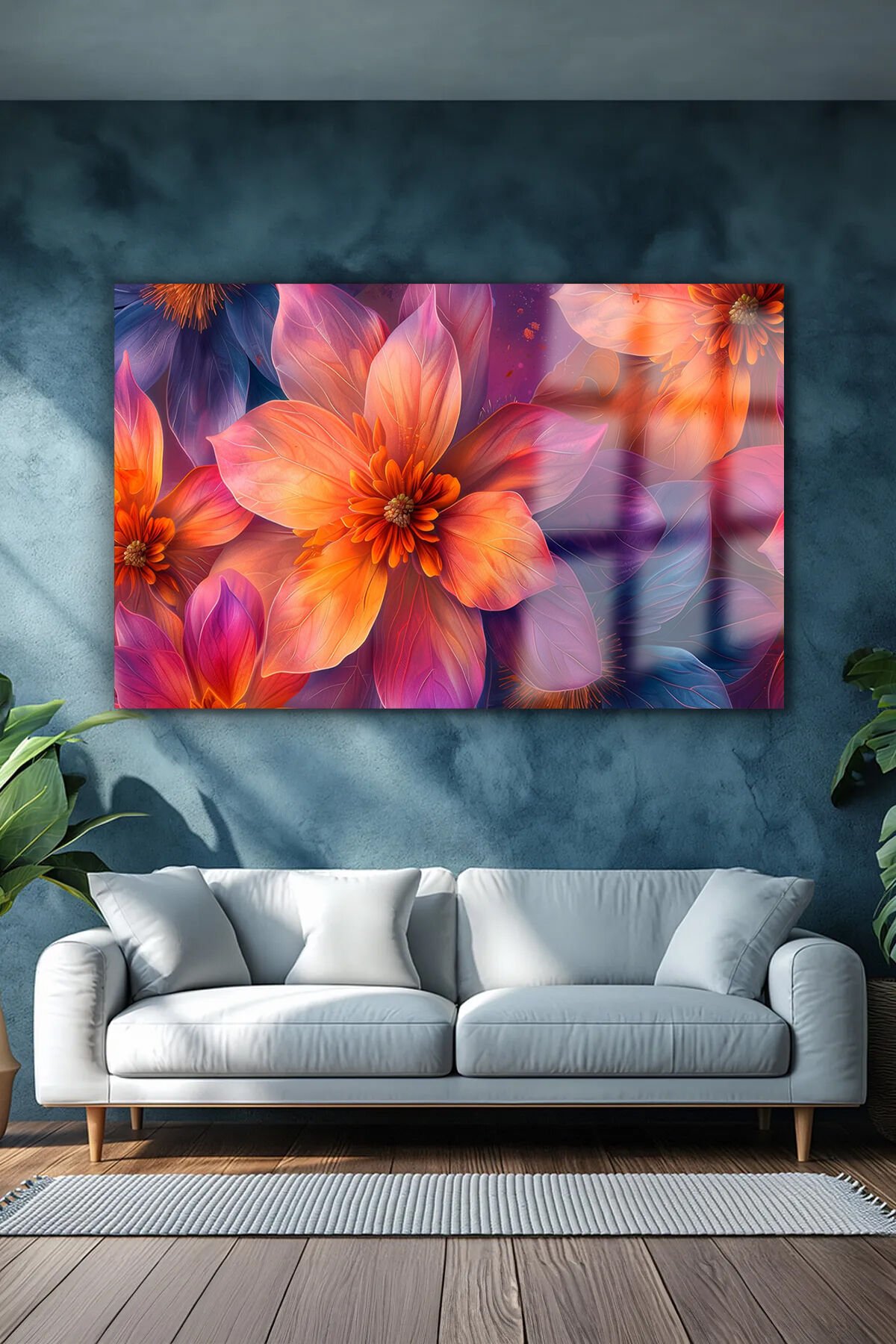 RENGARENK ÇİÇEKLERİN UYUMU ÇALIŞMASI KIRILMAZ CAM TABLO EV HEDİYESİ TABLO