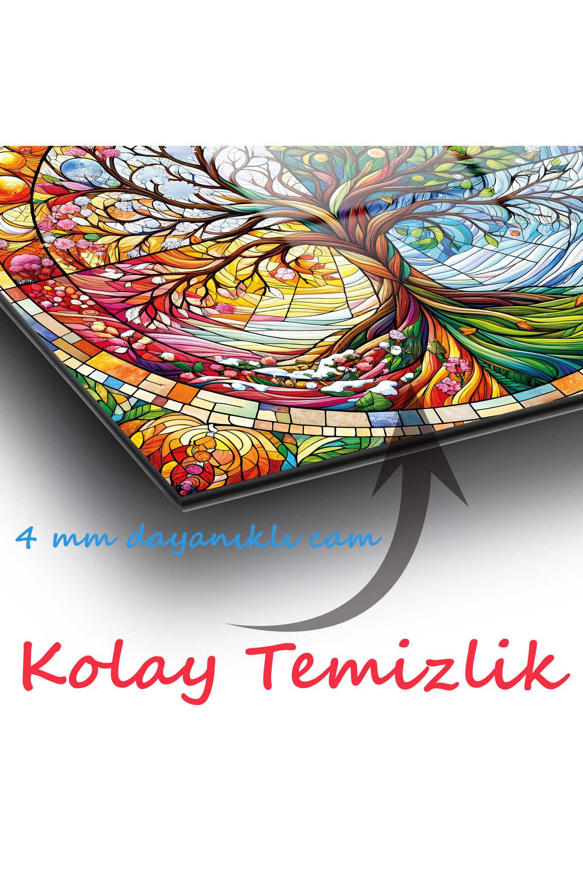 Cam tablolarımız 4 mm kalınlığında temper işlemi (ısıl işlem) görmüştür.; Kenarları rodajlanmış (kesiciliği giderilmiş) yüksek kaliteli düz camlardan oluşmaktadır.; Normal camlara göre kırılmaya 10 kat daha dayanıklıdır.; Gönderilirken özel koruma aparat ve ambalajları ile gönderilmektedir.; ; Tarafımızca hazırlanan özel tasarımlar doğrudan cam yüzeyine uv baskı tekniğiyle yüksek çözünürlüklü makinalarımız tarafından uygulanır.; Bu nedenle yüksek kaliteli,mükemmel bir görüntü derinliği sağlar.; Herhangi bir medyaya(folyo,kağıt v.; b.; ) baskı yapılmış görselin cam yüzeyine yapıştırılması şeklinde değildir.; Görsellerimiz camın arka yüzeyine doğrudan uv cam boyası kullanılarak basılır ve özel koruma boyası ile arka yüzey kapatılır.; Baskı cam ile arka koruma boyası arasında kalır.; Tasarımları ön yüzeyden camın parlaklığı ve şıklığı ile görürsünüz.; Cam tablolar zamanla solmazlar ve renkler canlılığını hiç kaybetmez.; ; Özel tasarım cam tablolar duvar dekorasyonunda yeni bir sayfa açmaktadır.; Özellikle ev ve ofis dekorasyonunda büyük tablolar duvarlarda çok şık bir görünüm sağlarlar.; Dekoratif ve zarif tablolar ev ve ofis duvarlarınıza estetik bir hava katar.; ; Tablolarımız sizler için özel olarak tasarlanmıştır.; ; Temizliği son derece kolay olan cam tablolarımızı,herhangi bir kimyasal ürünle veya nemli bez ile gönül rahatlığıyla silebilirsiniz.; Özel askı aparatı sayesinde ürünlerimizin duvardan kazara düşme olasılığı çok düşüktür.; Tek çivi ile kolayca duvara monte edebilirsiniz.; Ürün asıldığında duvardan 2 cm önde durmaktadır.; ; Kargo esnasında yaşanacak her türlü olumsuzluk(kırılma v.; b.; ) firmamıza aittir.; Kırılma olasılığı %1 in altındadır.; Özel çerçeveli kargo metodumuz Türkiyede yalnızca tarafımıza aittir bu sayede kırılma yaşanmamaktadır.; En ufak bir sorunda ise sizlere sağlam şekilde ulaşıncaya kadar tekrar gönderilir.; ; Üretici firma olarak özel tasarımlarıyla camı birleştirerek yaşam alanlarınıza şık bir görünüm ve modern bir hava katmayı amaç edinilmiştir.Kişiye özel Tablo seçeneğimiz de mevcuttur kişiye özel cam tablolalar için iletişime geçiniz.