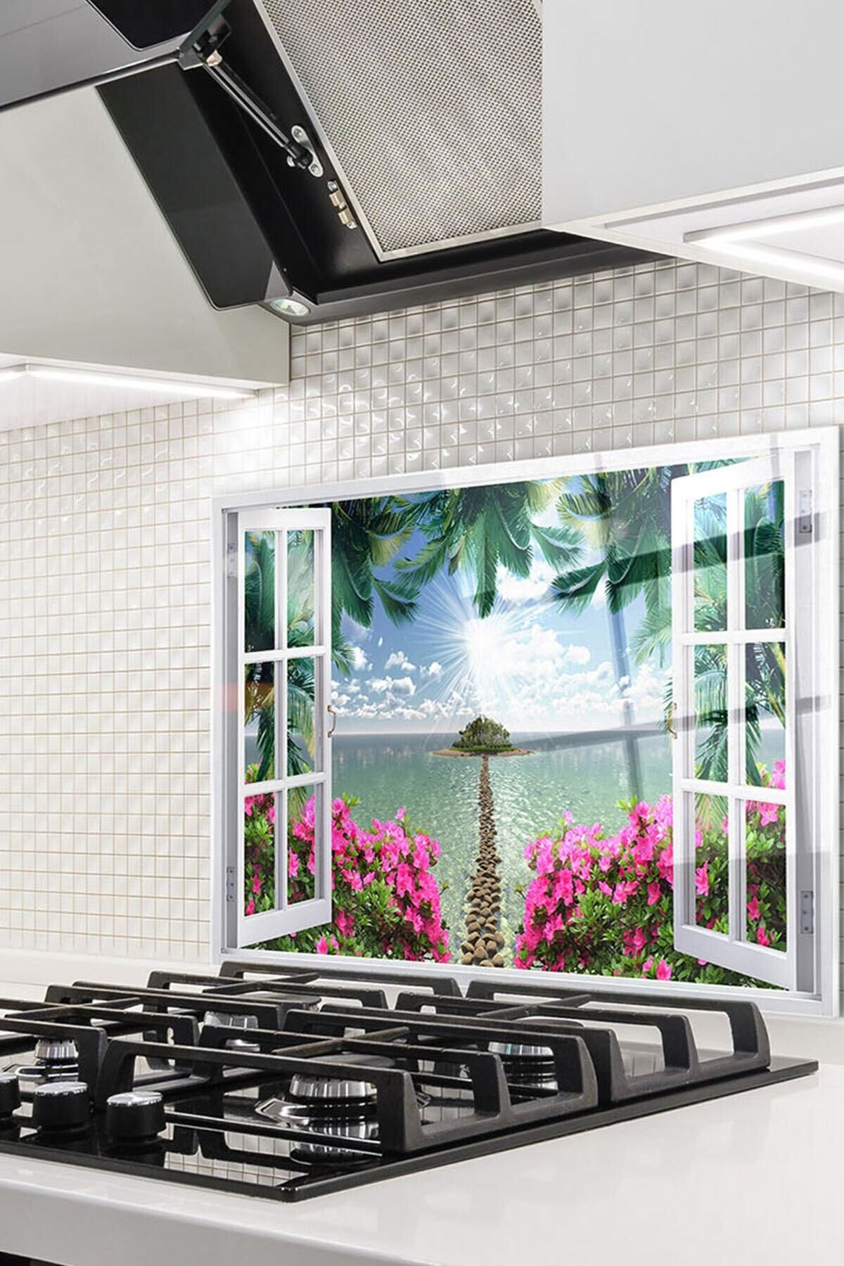 renkli - 60x52 Cm Cam Ocak Arkası Koruyucu Tezgah Ankastre Arkası Koruyucu Pencere Ve Ada