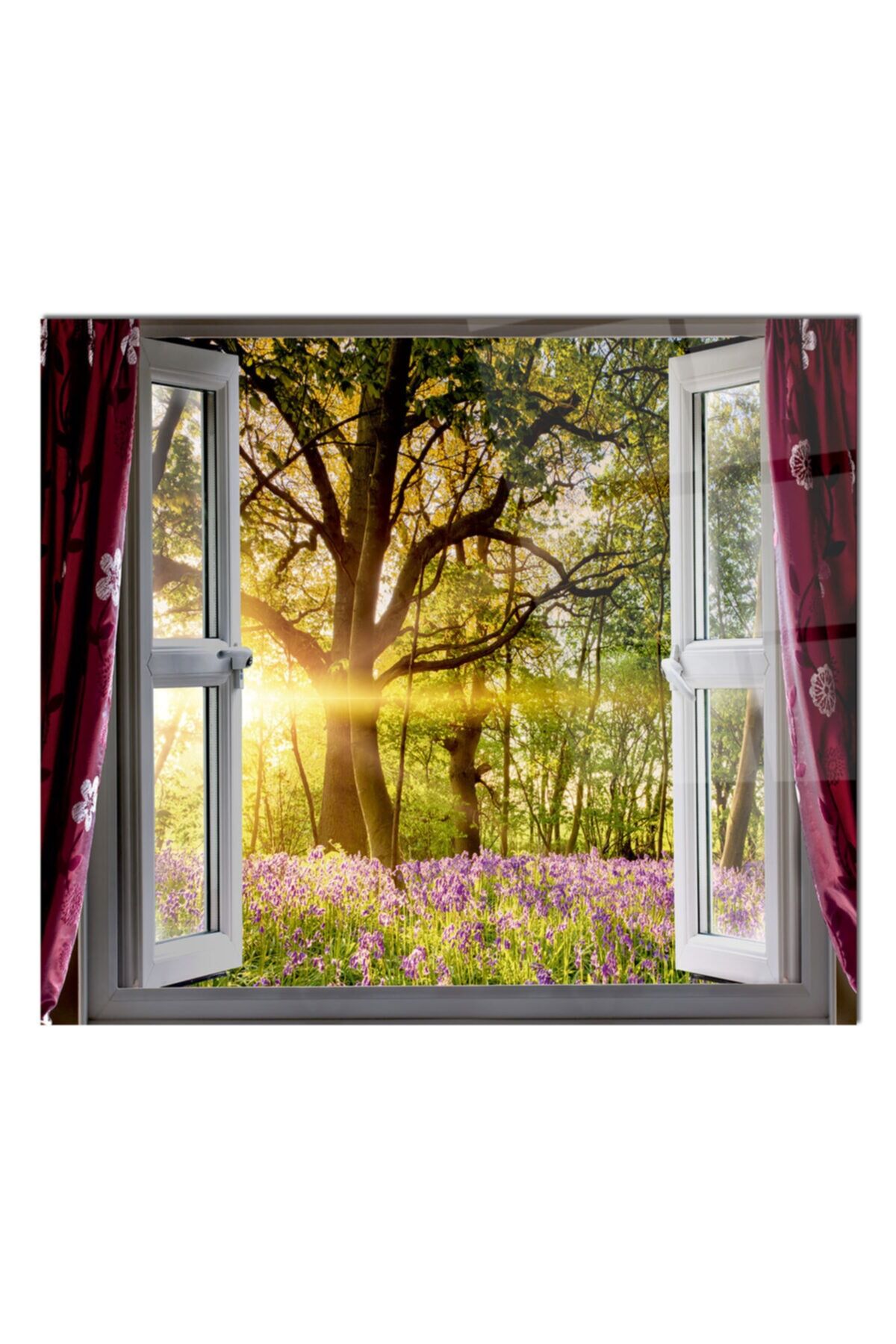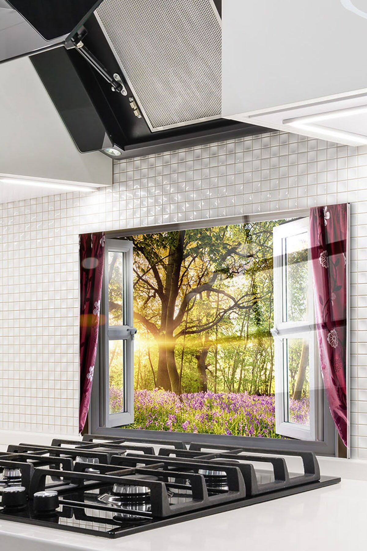Renkli - 76x49,5 Cm Cam Ocak Arkası Koruyucu Tezgah Ankastre Arkası Koruyucu | Pencere Ve Orman
