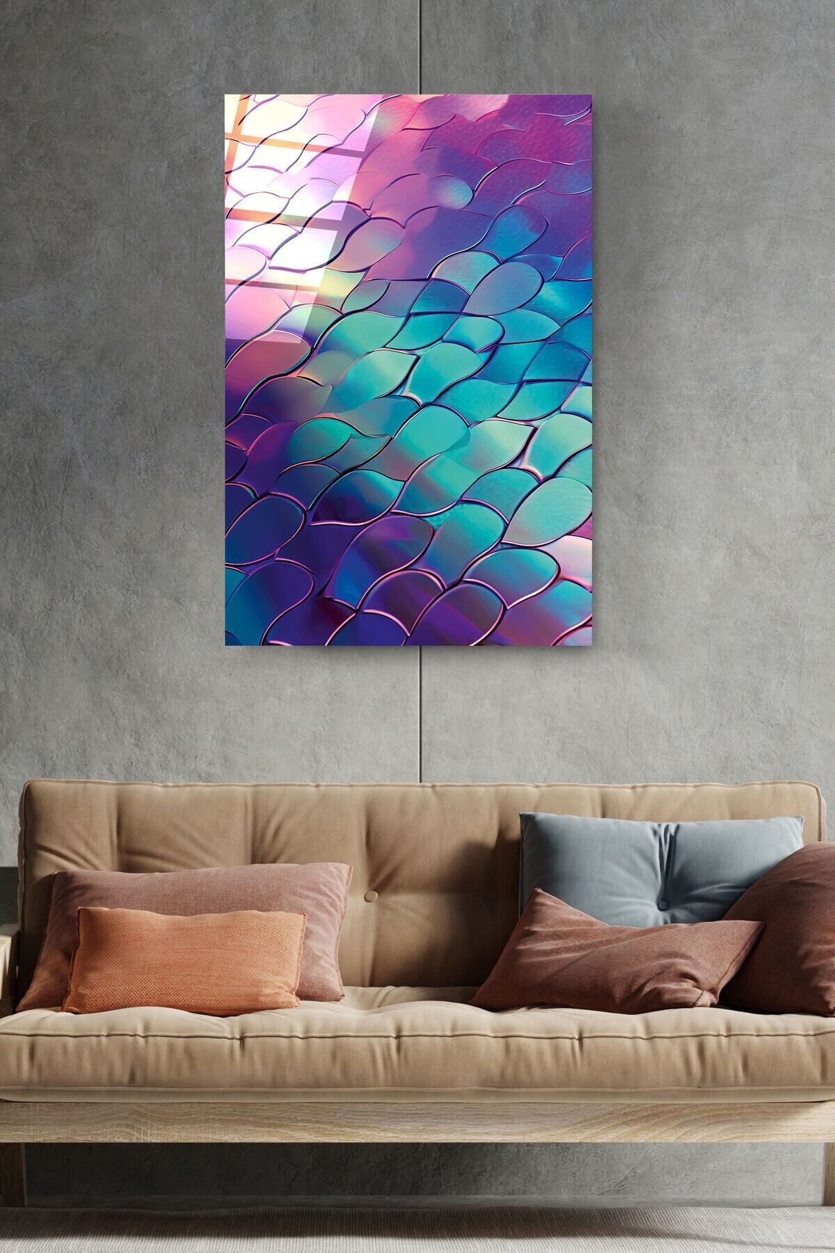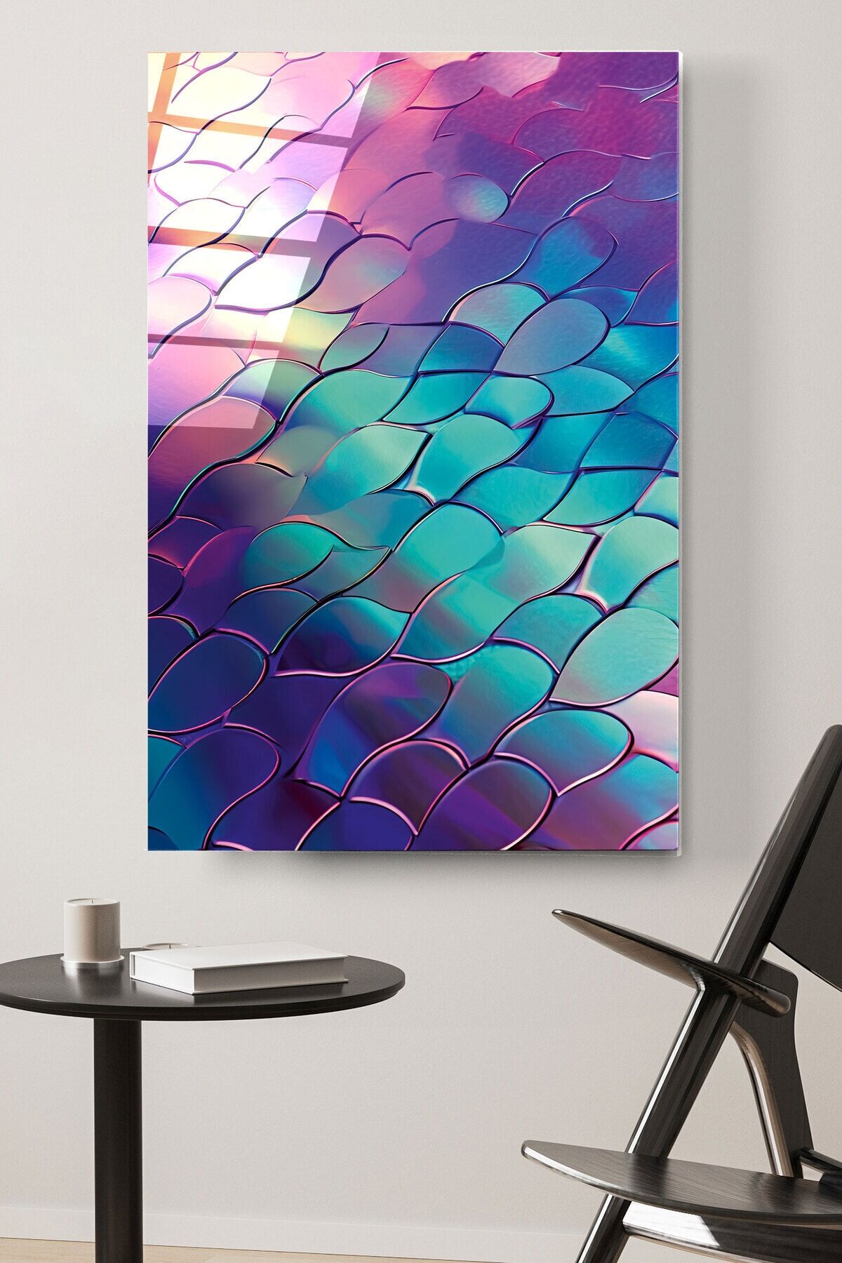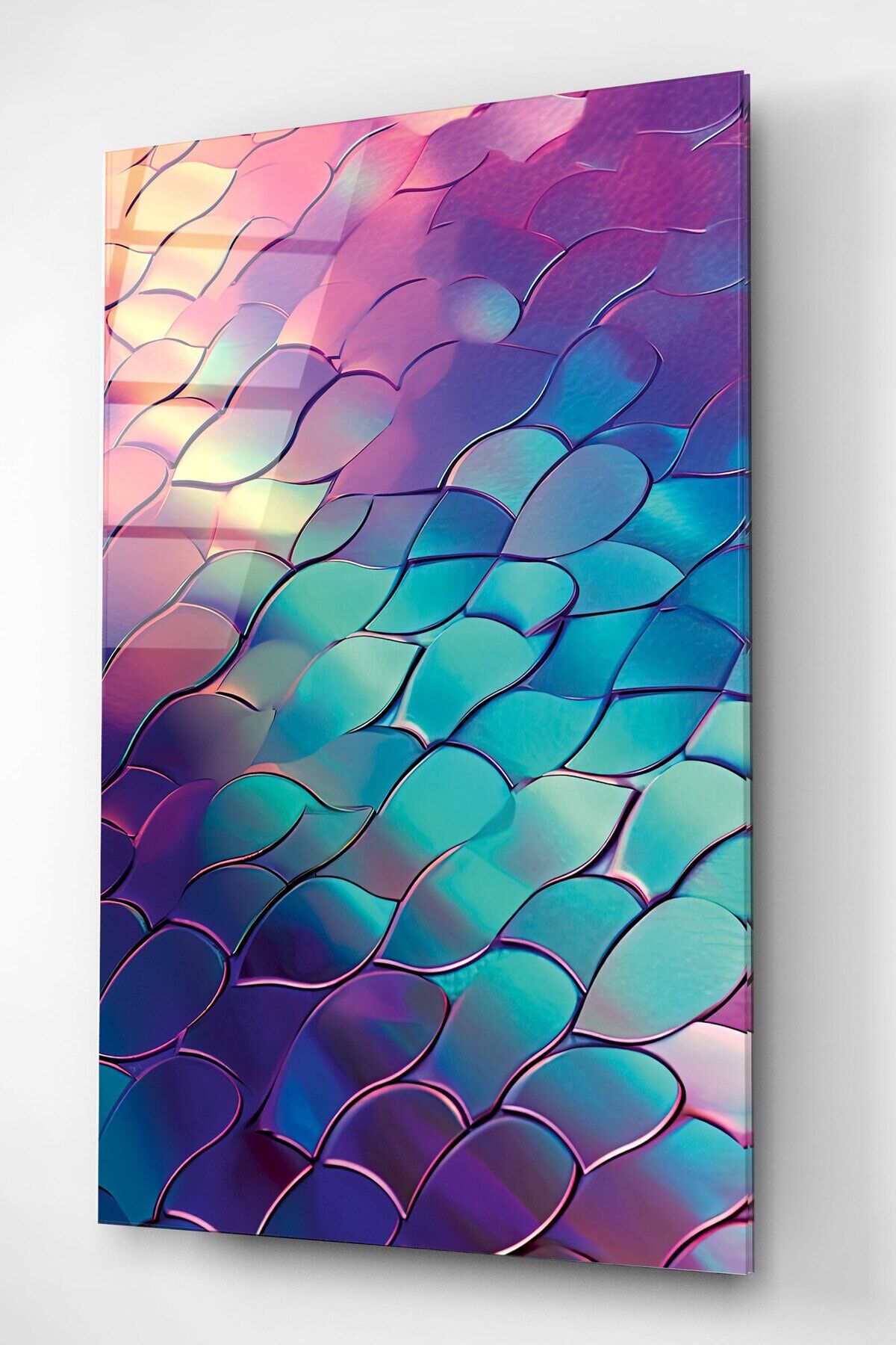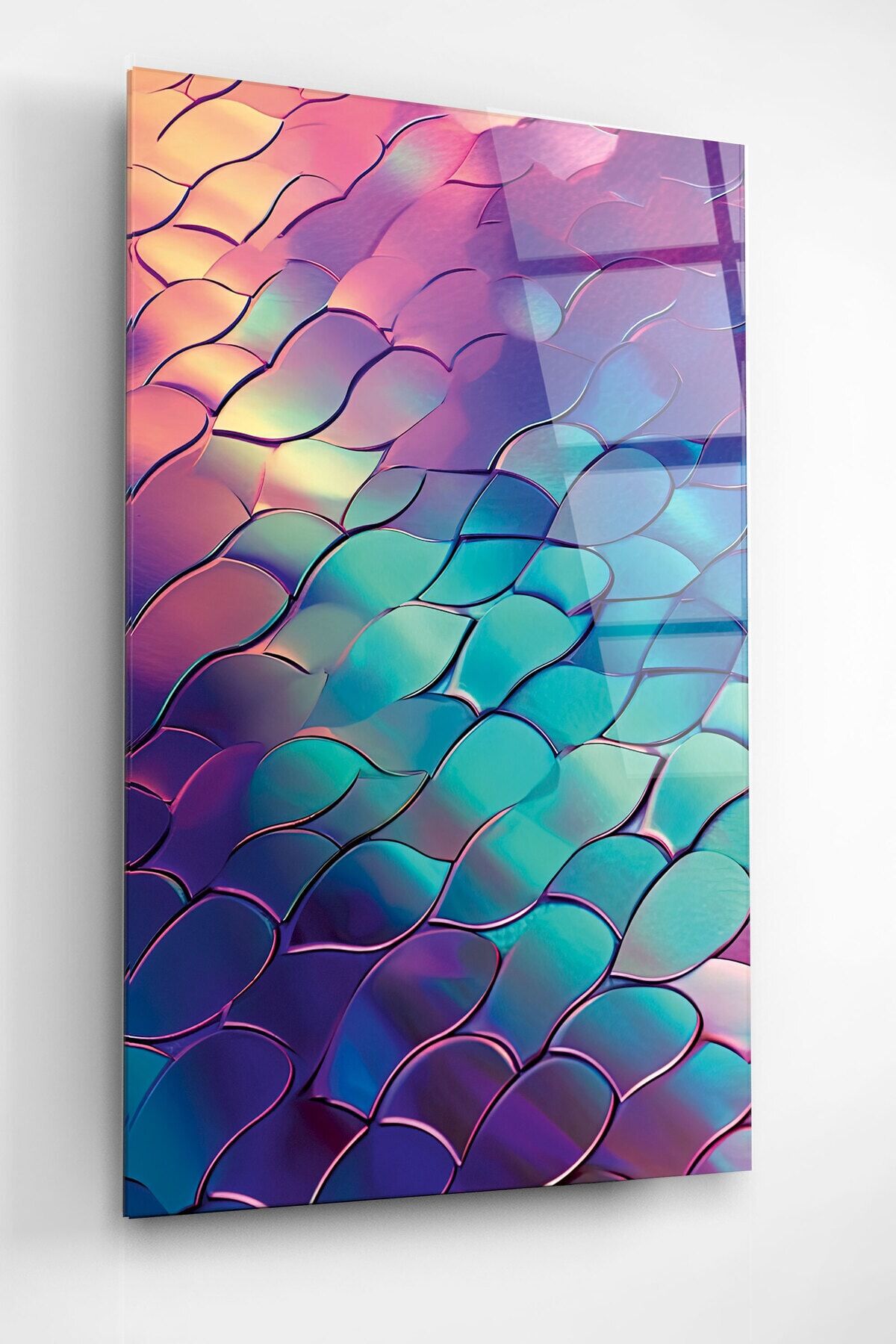Renkli Balık Pulu Cam Tablo, Dekoratif Cam Tablo