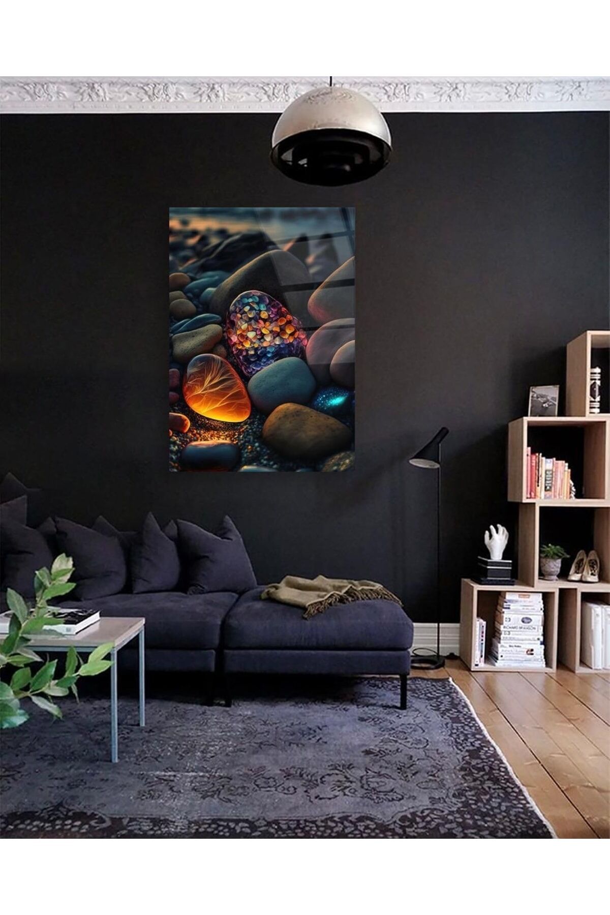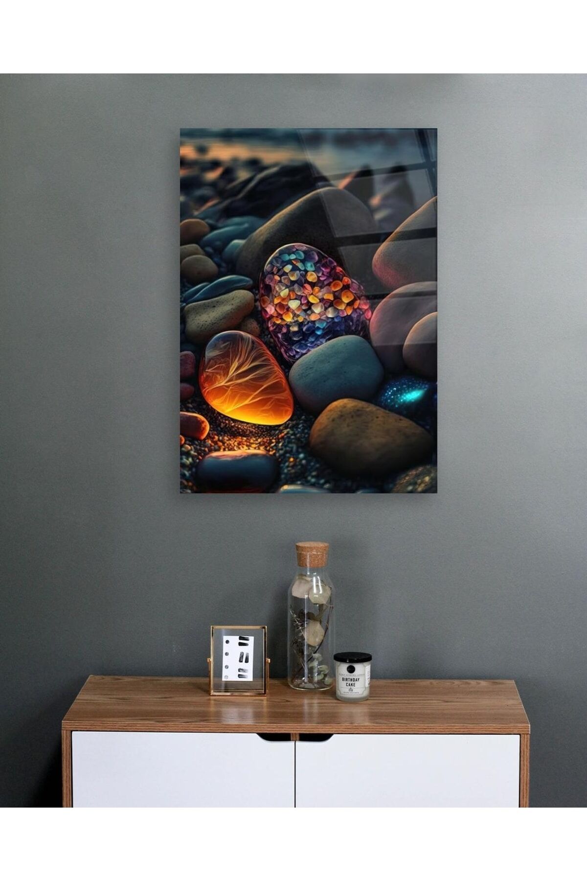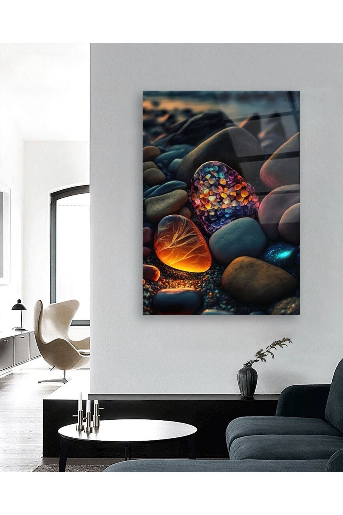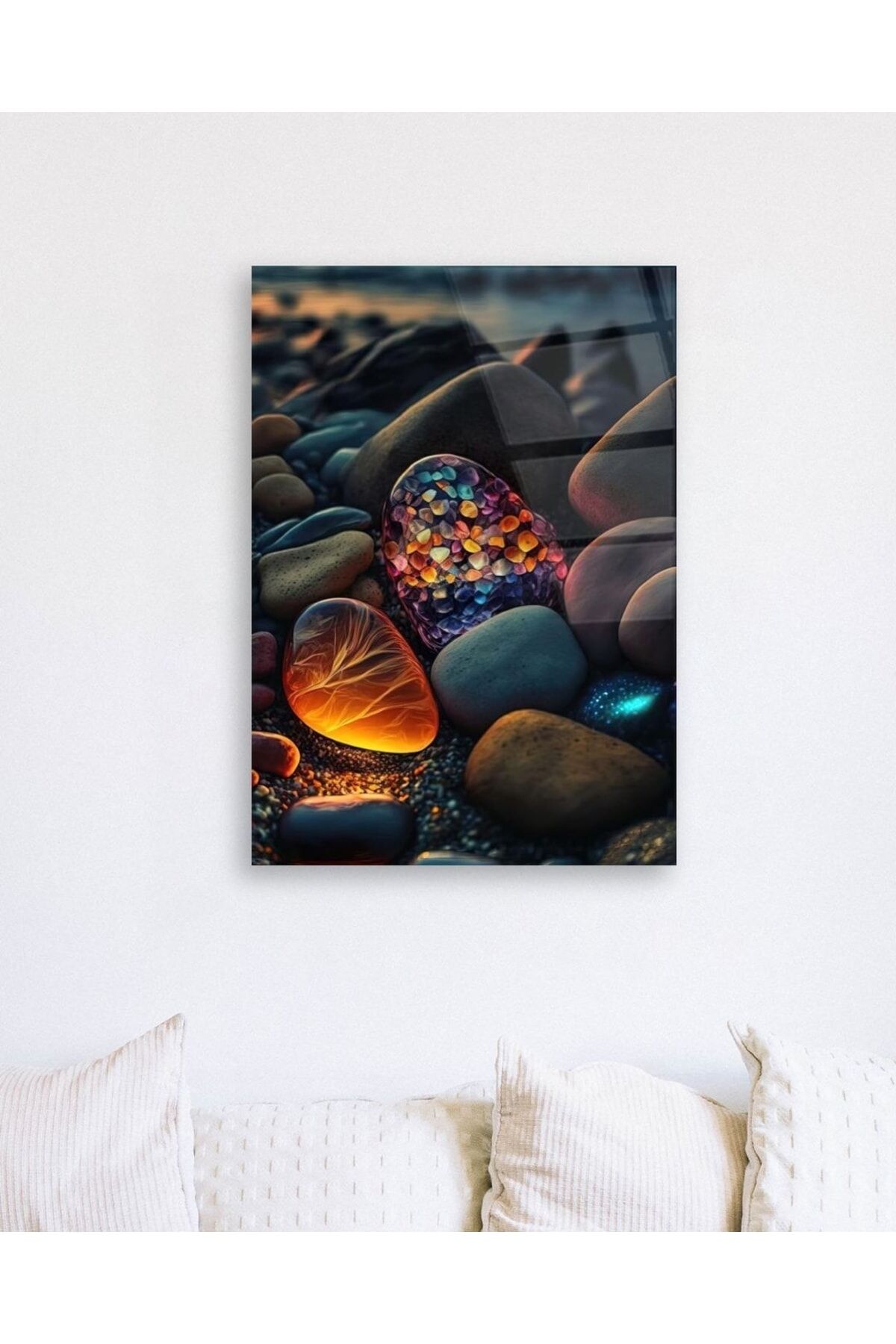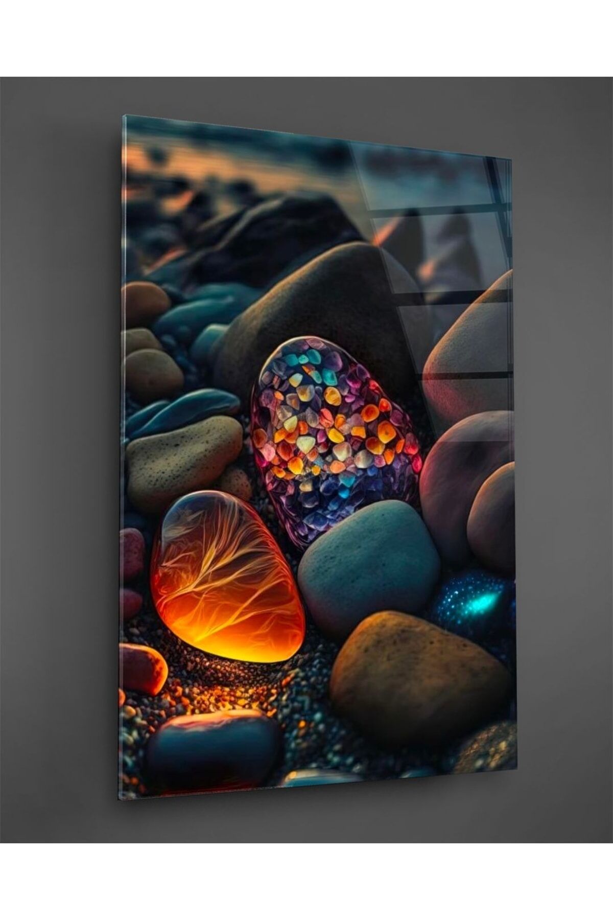 Renkli Çakıl Taşları Cam Tablo Renkli