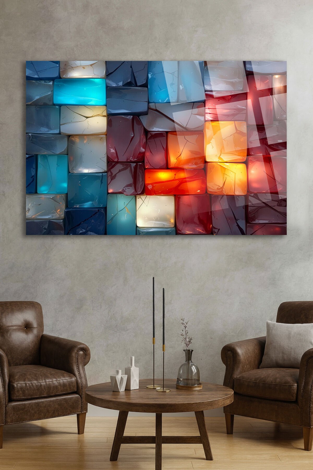 RENKLİ CAM BLOK SOYUT MOZAIK TASARIM EV HEDİYESİ TABLO ULTRA CANLI RENKLER KIRILMAZ LÜKS CAM TABLO Turkuaz