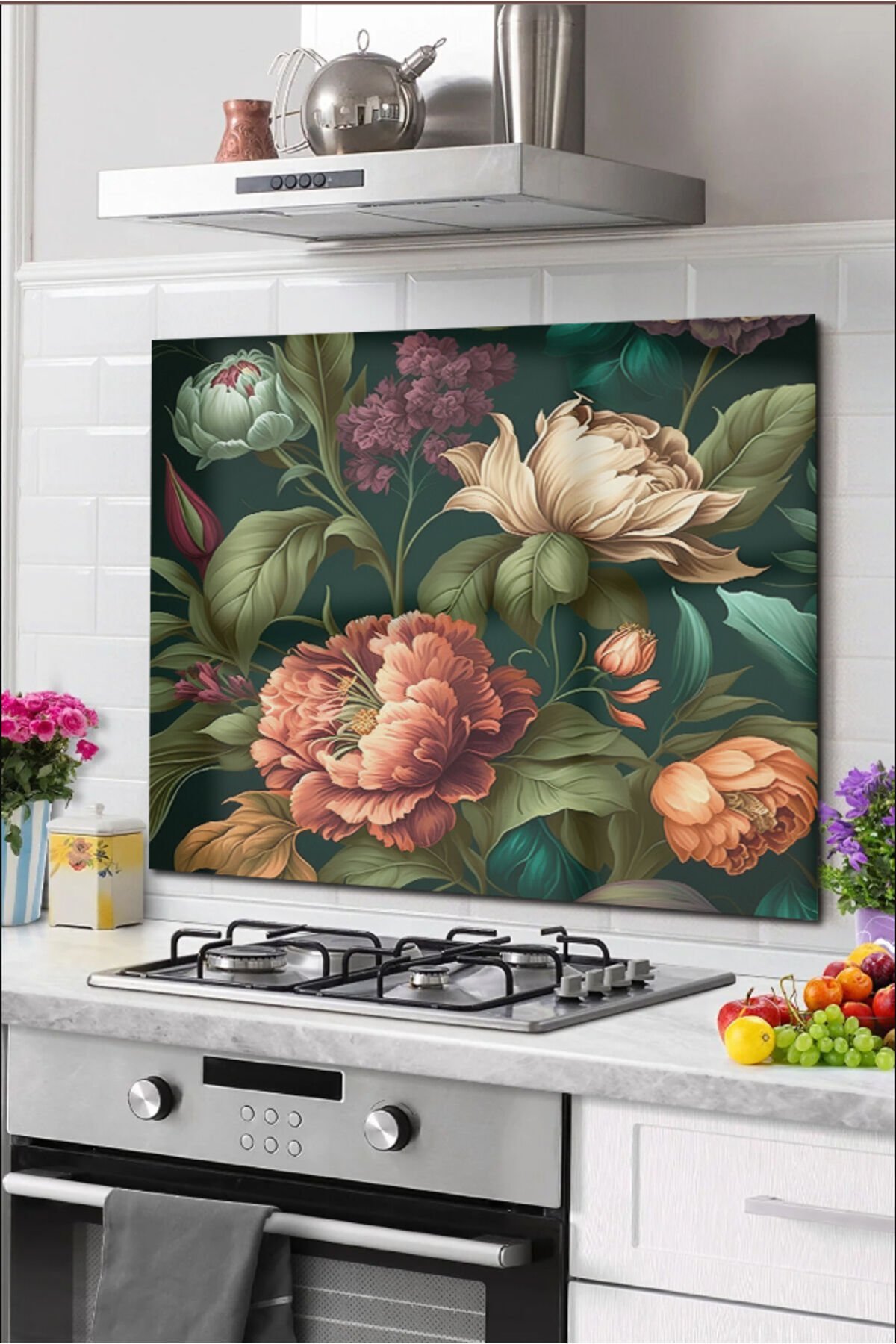 Olinpa Cam Ocak Arkası Koruyucu Tezgah Ankastre Arkası Koruyucu | 60x52 cm | Vintage Çiçekler Ocakların tezgah arkalarında oluşturmuş olduğu yağ vb. kirlerin cam üzerinden temizlenmesi çok daha kolaydır. ; Nemli bezle kolaylıkla temizlenebilme özelliğine sahiptir. ; Duvara montajı son derece basit olan bu şık ürün ile farklı yenilikçi iç dekorasyon çözümü sunulmaktadır. ; Arka kısmında bulunan çift taraflı bant ile kolayca monte edebilirsiniz. ; Mutfak dekoru olarak canlı renkleriyle şık bir görünüm sağlar. ; UV baskı tekniği ile kendi üretimimizdir. ; Isıya dayanıklıdır. ; 4mm kalınlığında temperli camdır. ;