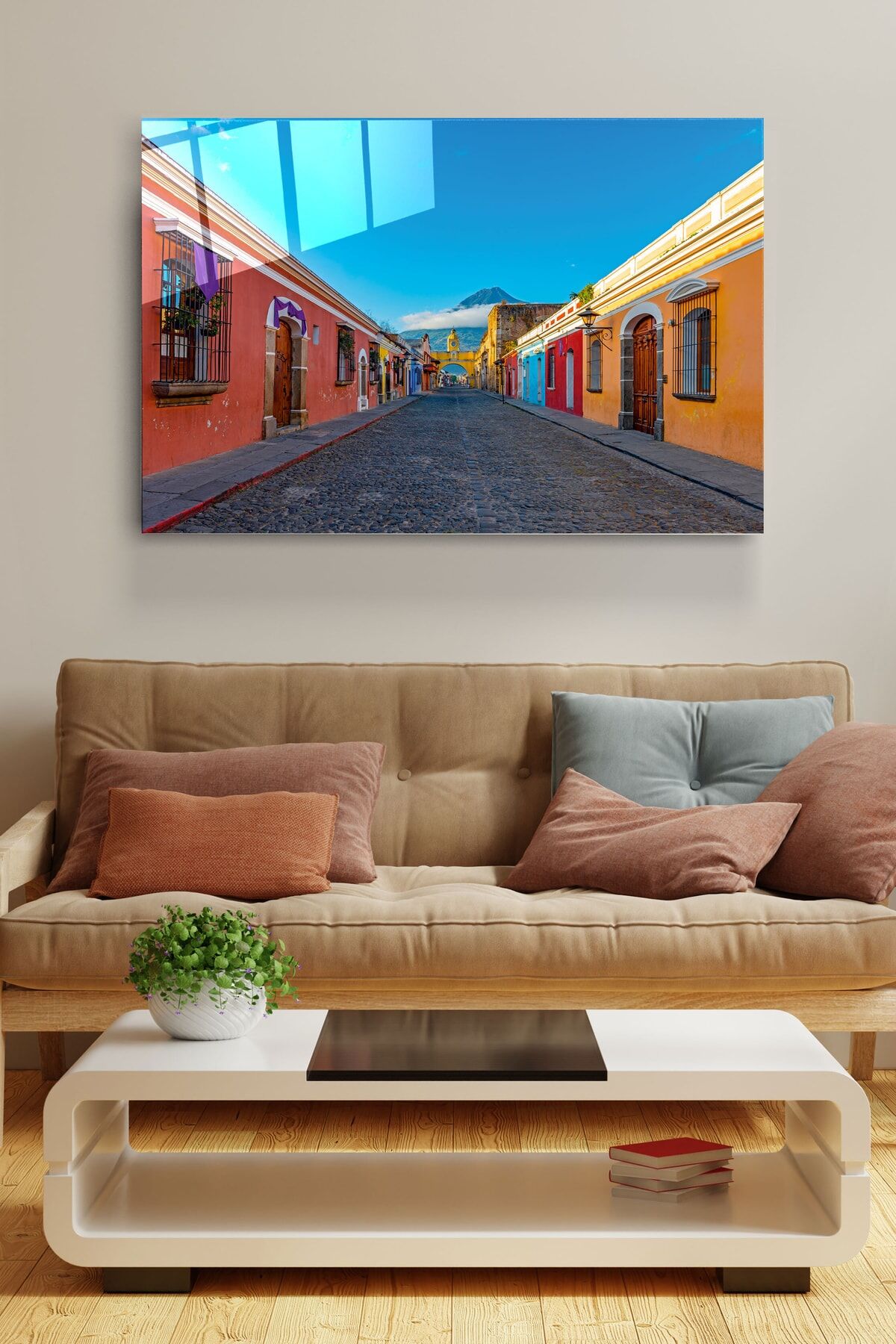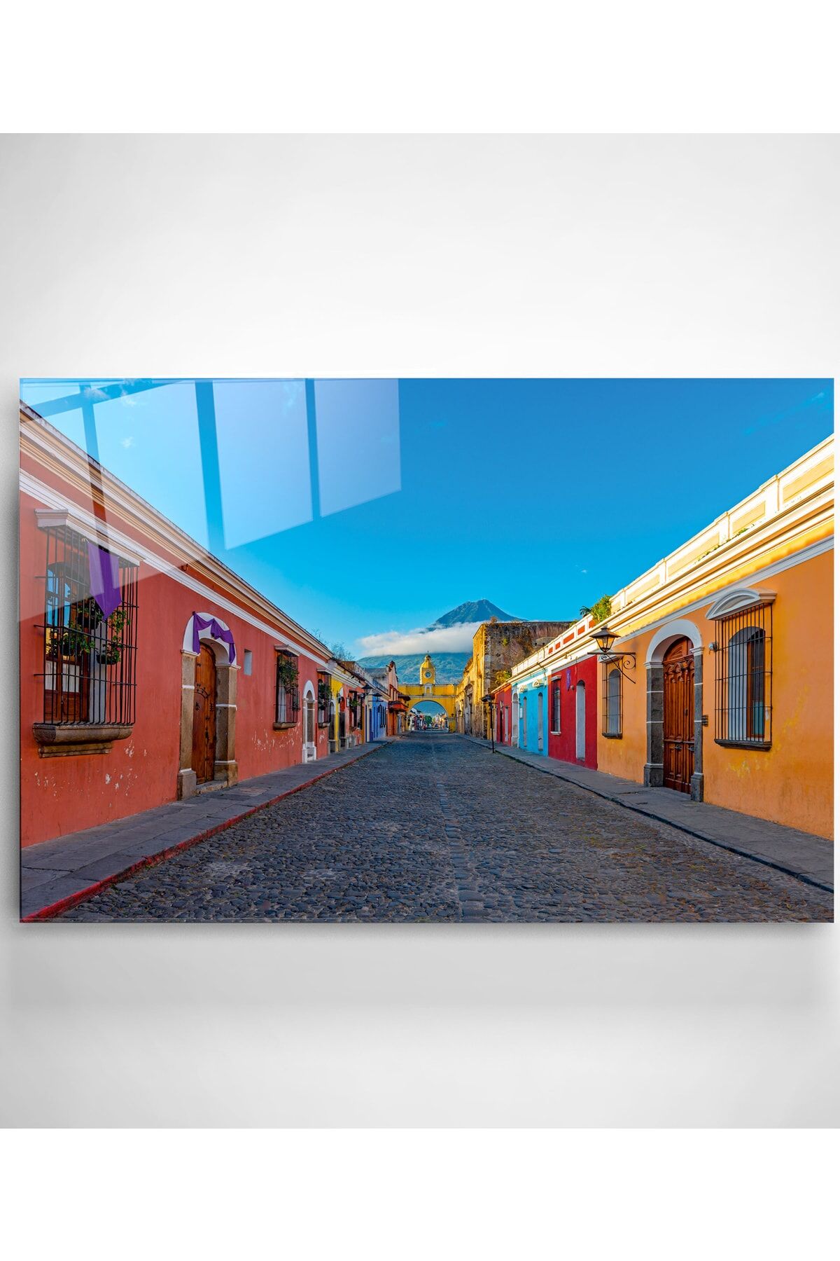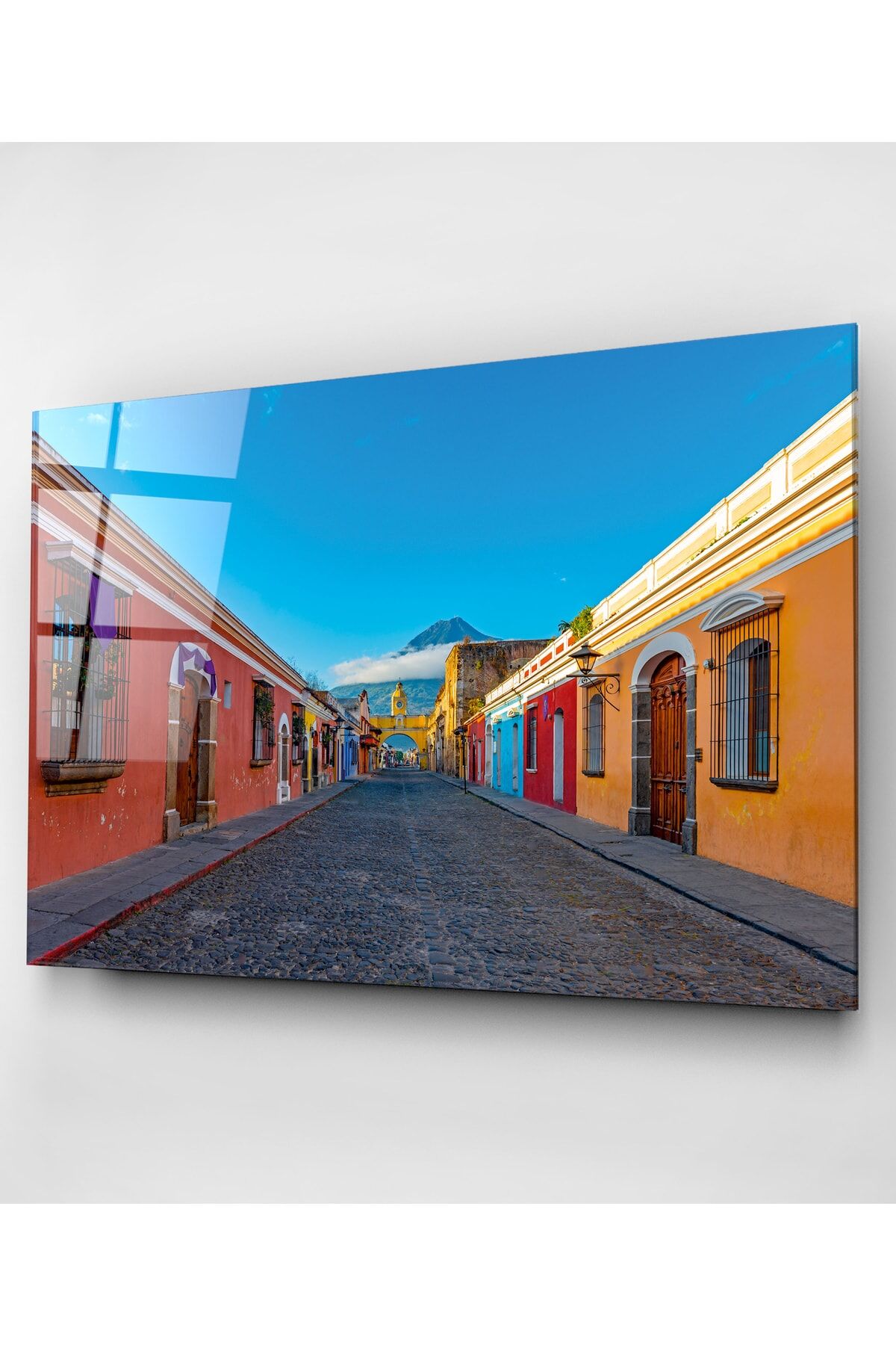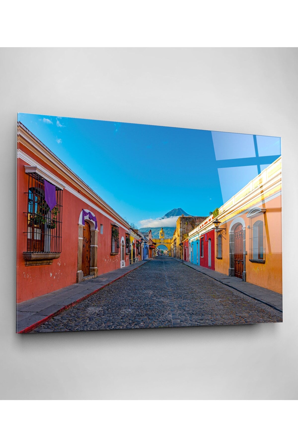 Renkli Evler Cam Tablo, Dekoratif Cam Tablo