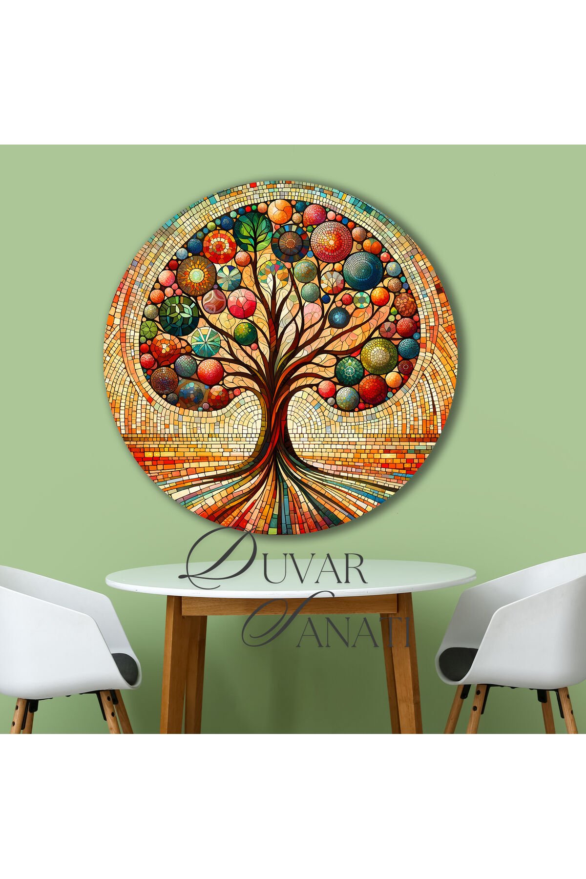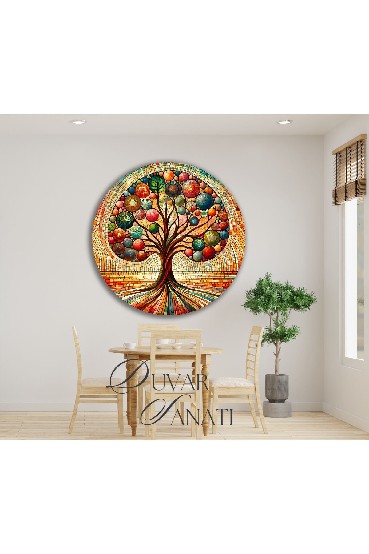 Renkli Hayat Ağacı Yuvarlak Cam Tablo, Modern Ev Salon Ofis Dekorasyonu Büyük Duvar Dekoru Kırmızı Turuncu Mavi
