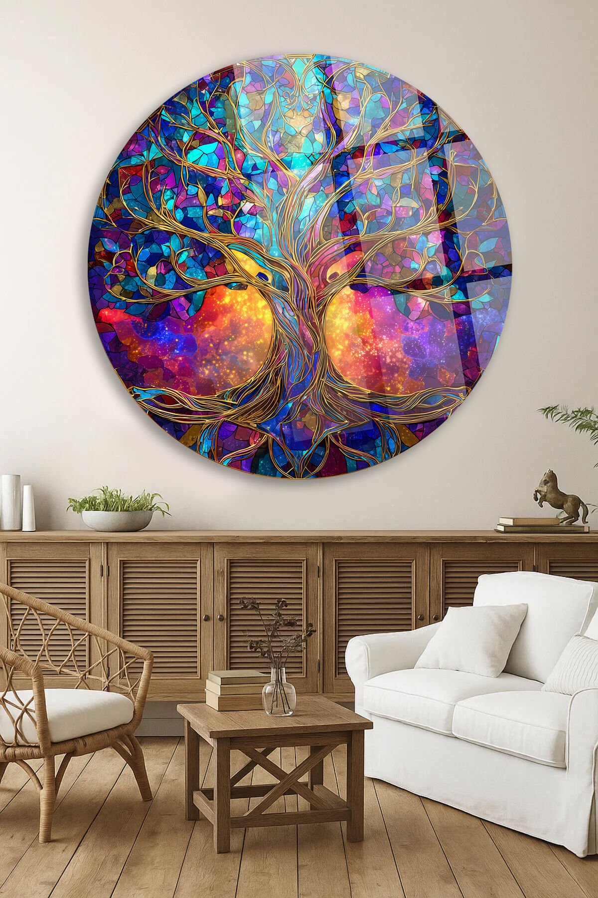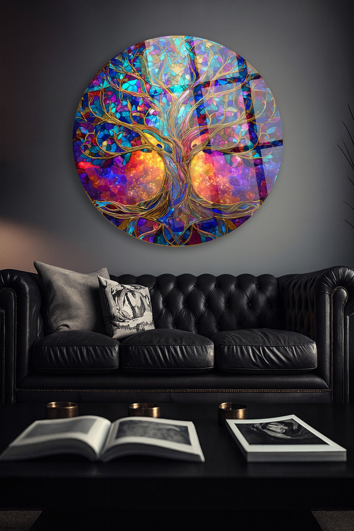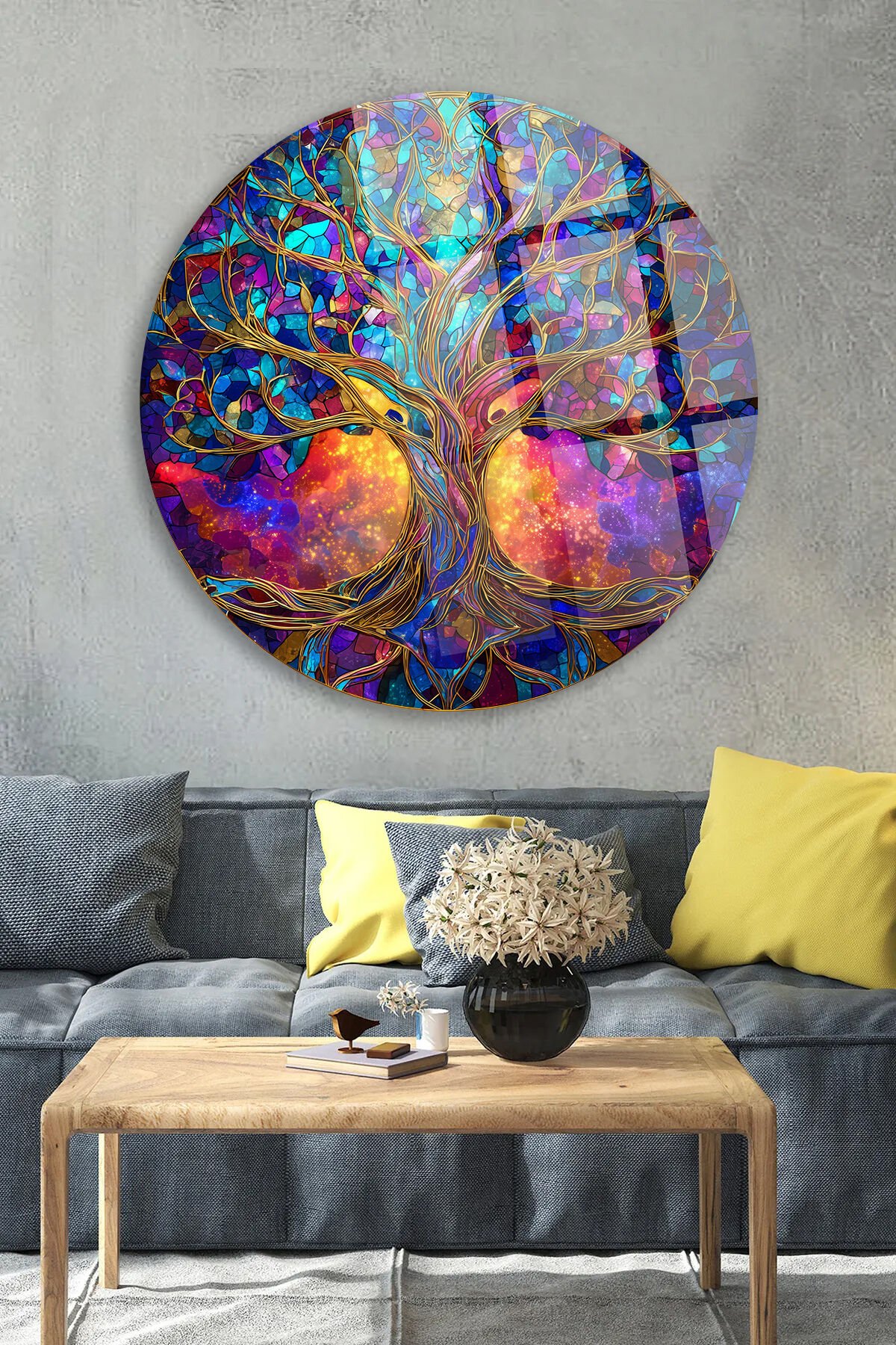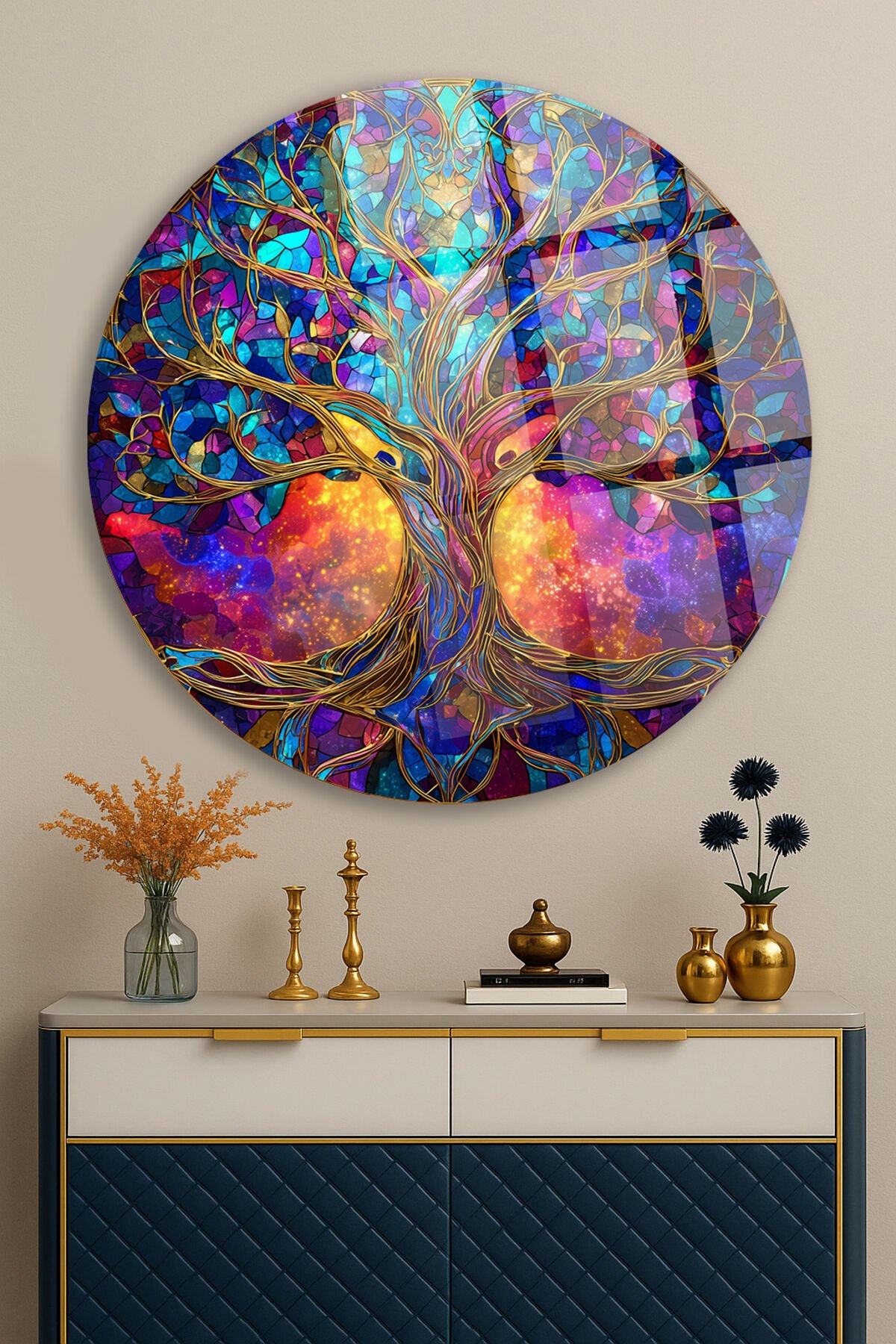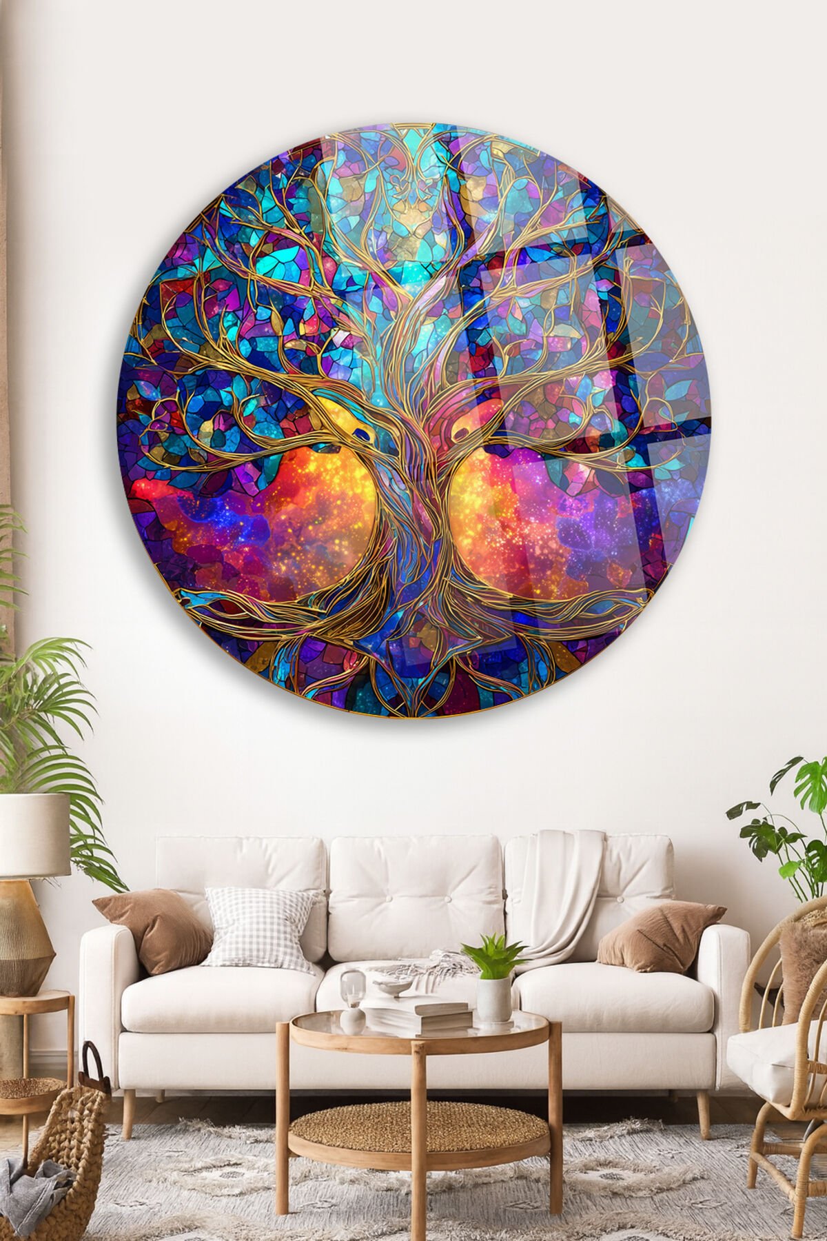 RENKLİ KOZMİK HAYAT AĞACI DESEN KIRILMAZ LÜKS CAM TABLO Mor