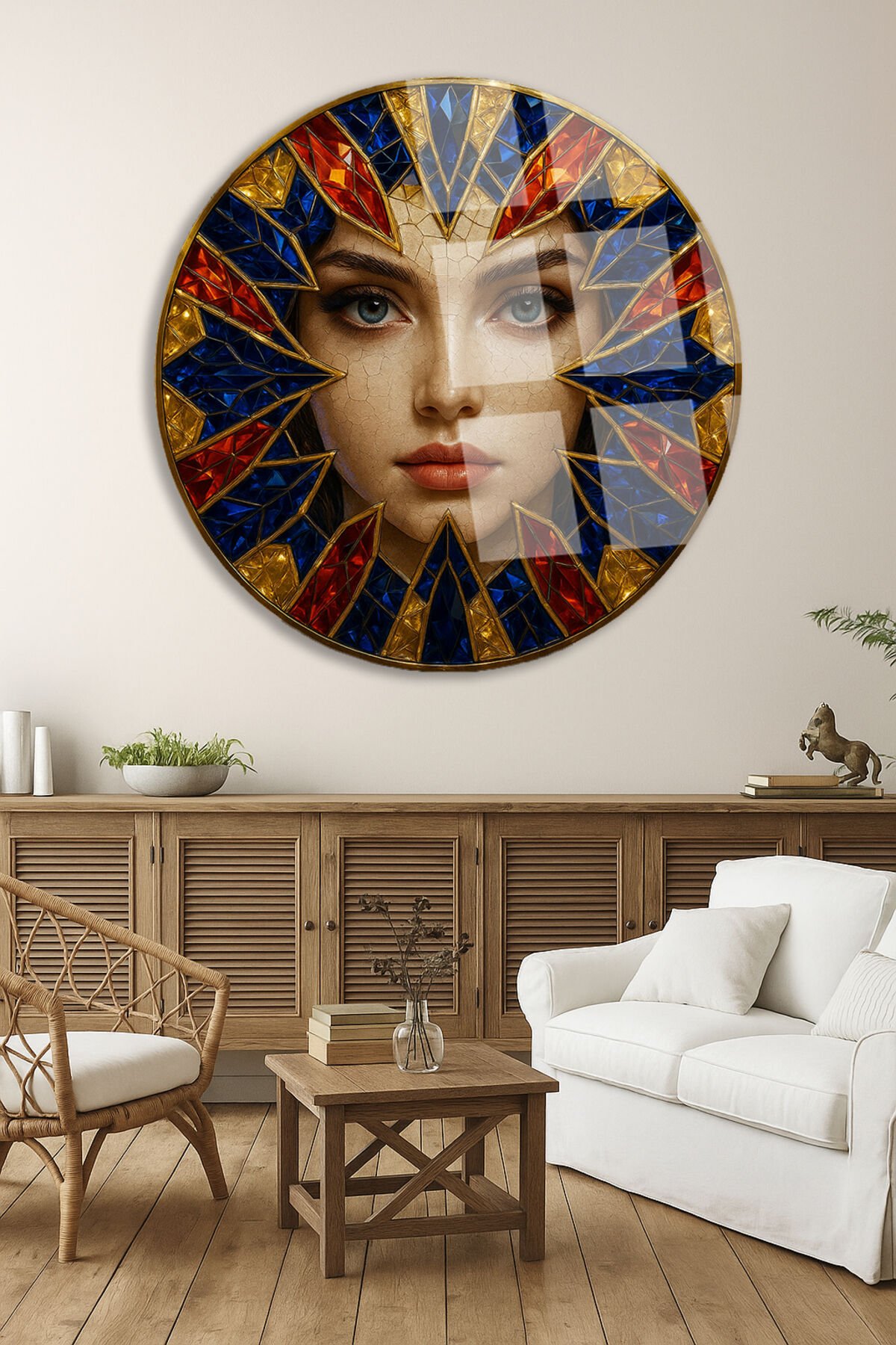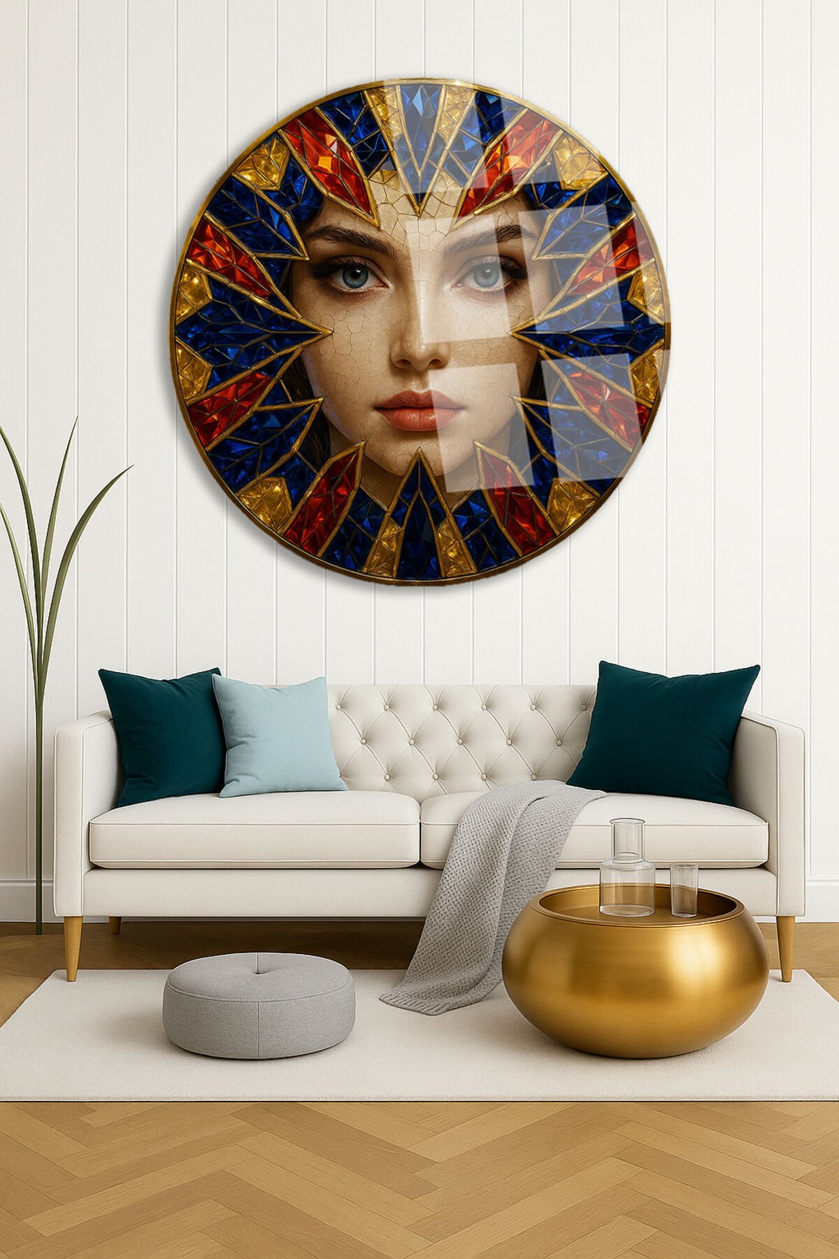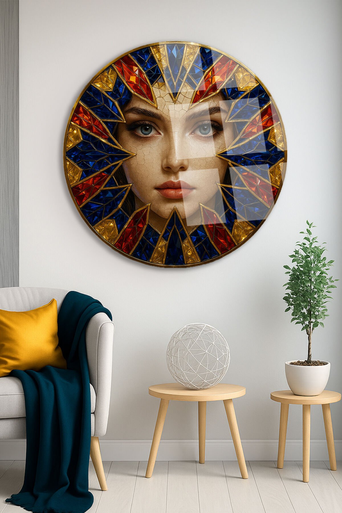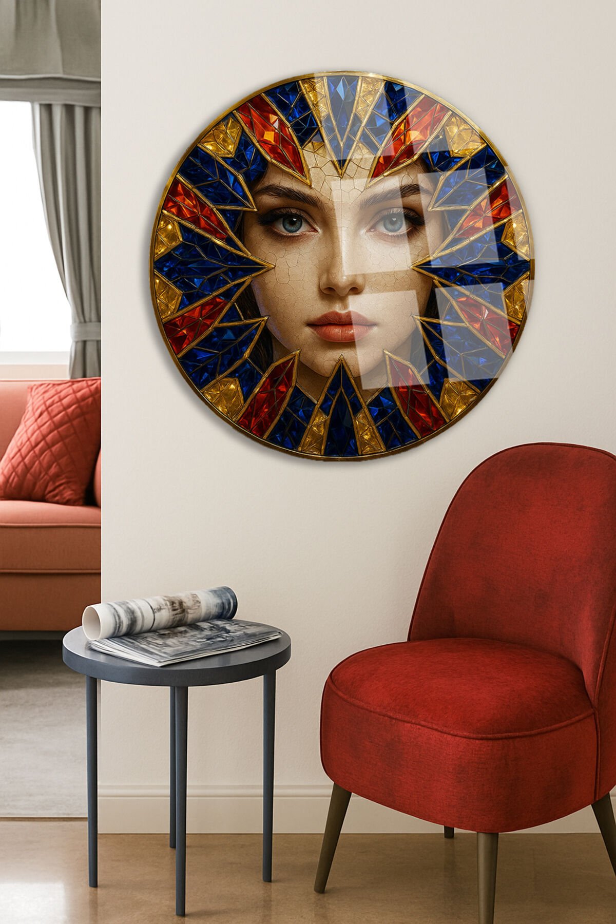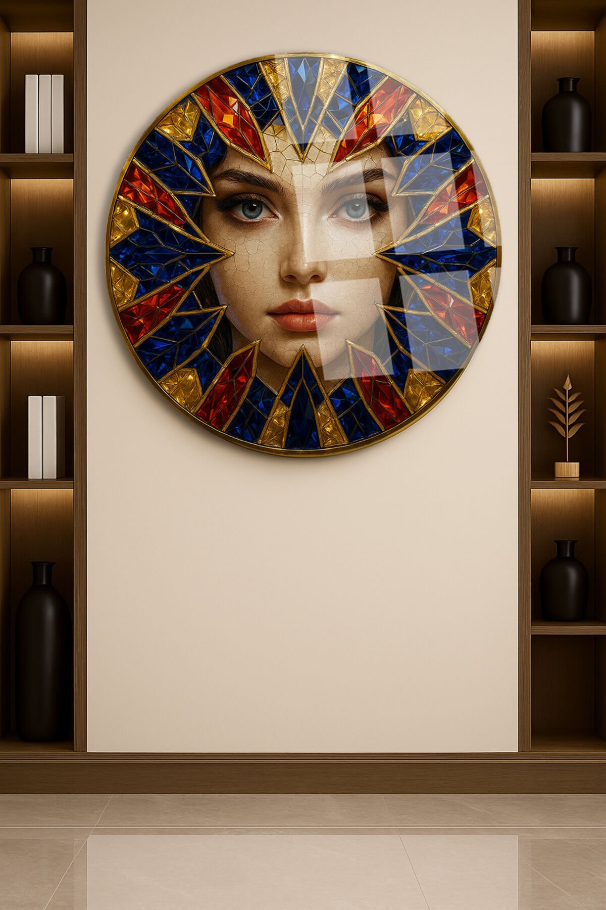 Renkli Kristal Taş Efektli Modern Kadın Figürü Kırılmaz Cam Tablo Modern Tablo Lüks Hediye Bordo