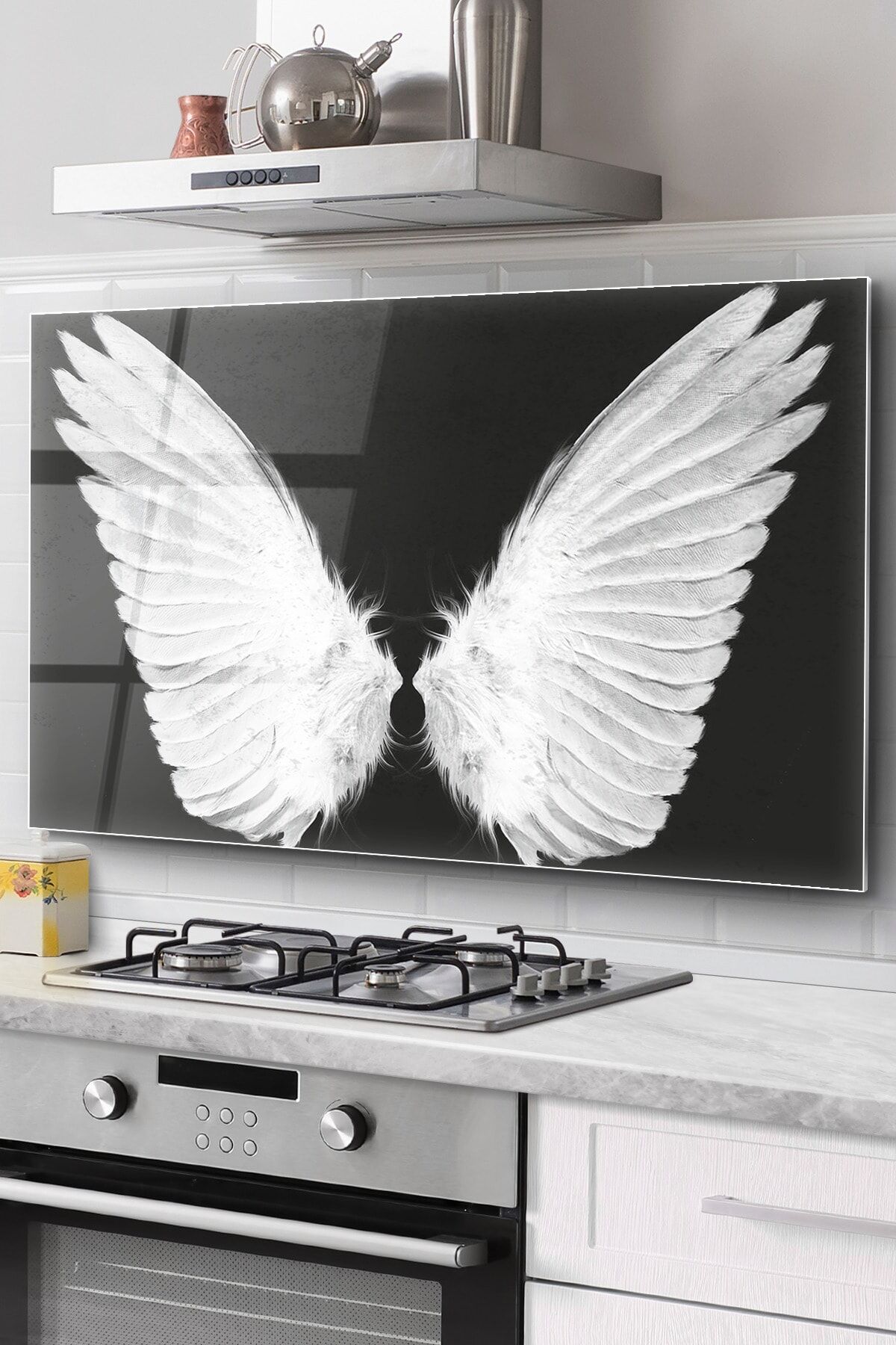 Renkli - Ocak Arkası Cam Koruyucu Tezgah Ankastre Arkası Koruyucu | Melek Kanadı Desenli