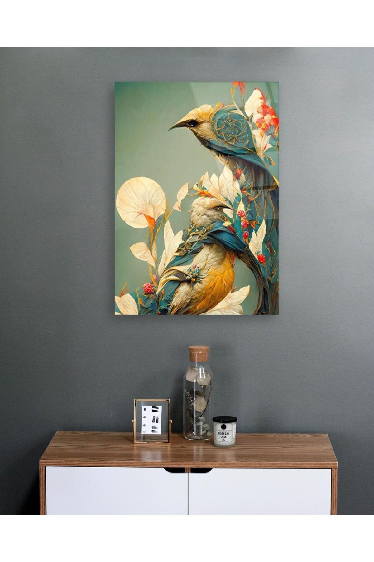 Renkli Sinek Kuşu Cam Tablo Renkli