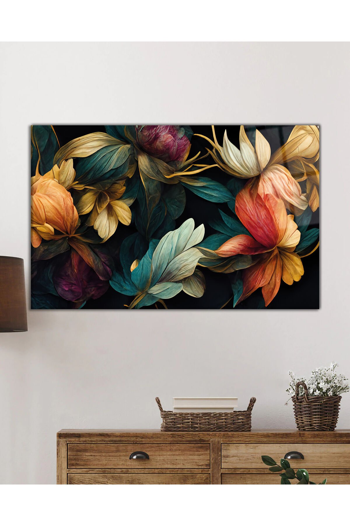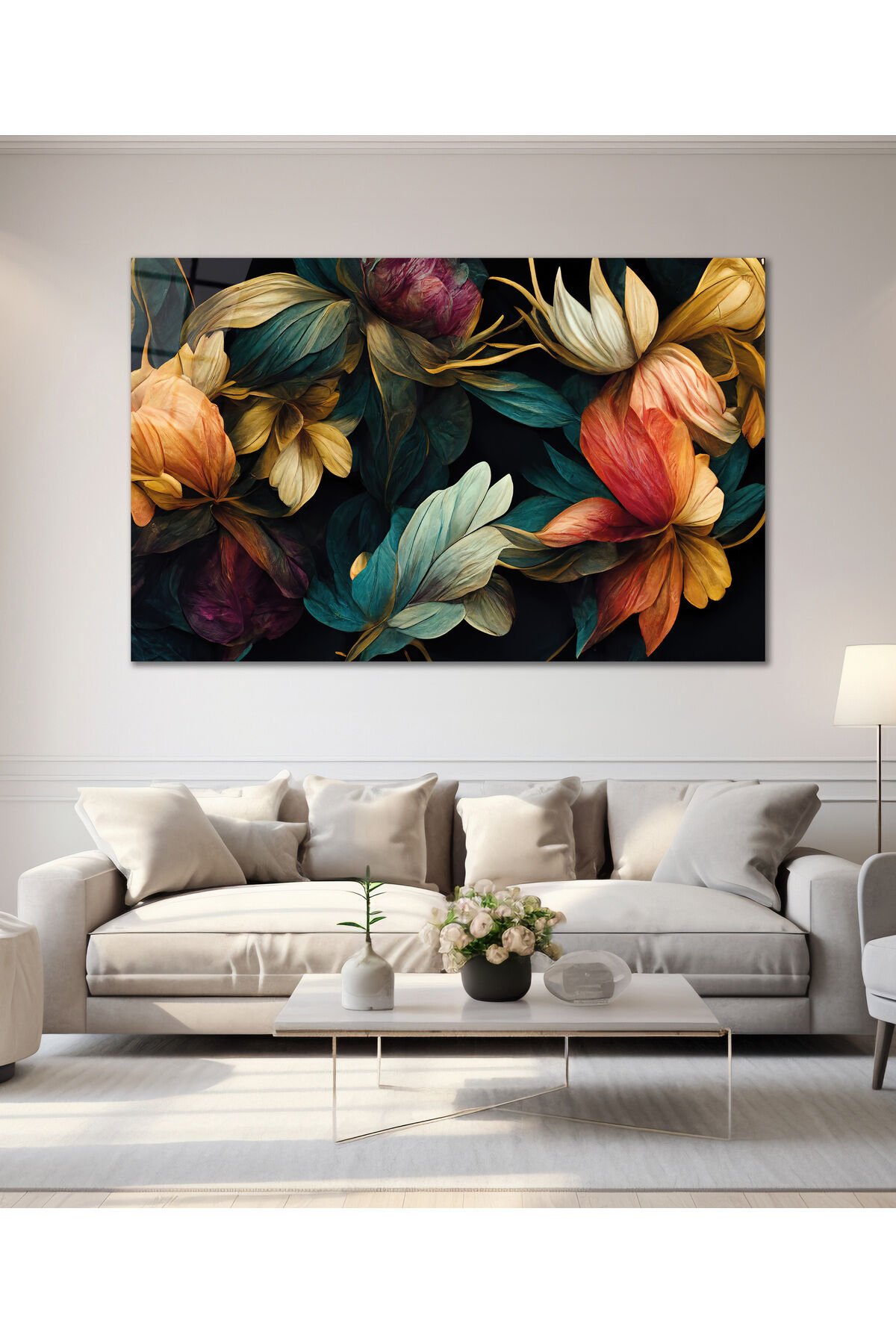 Renkli Yapraklar Cam Tablo Ev Ofis Salon İçin Duvar Dekoru Büyük Tablo Yeşil Kırmızı Sarı