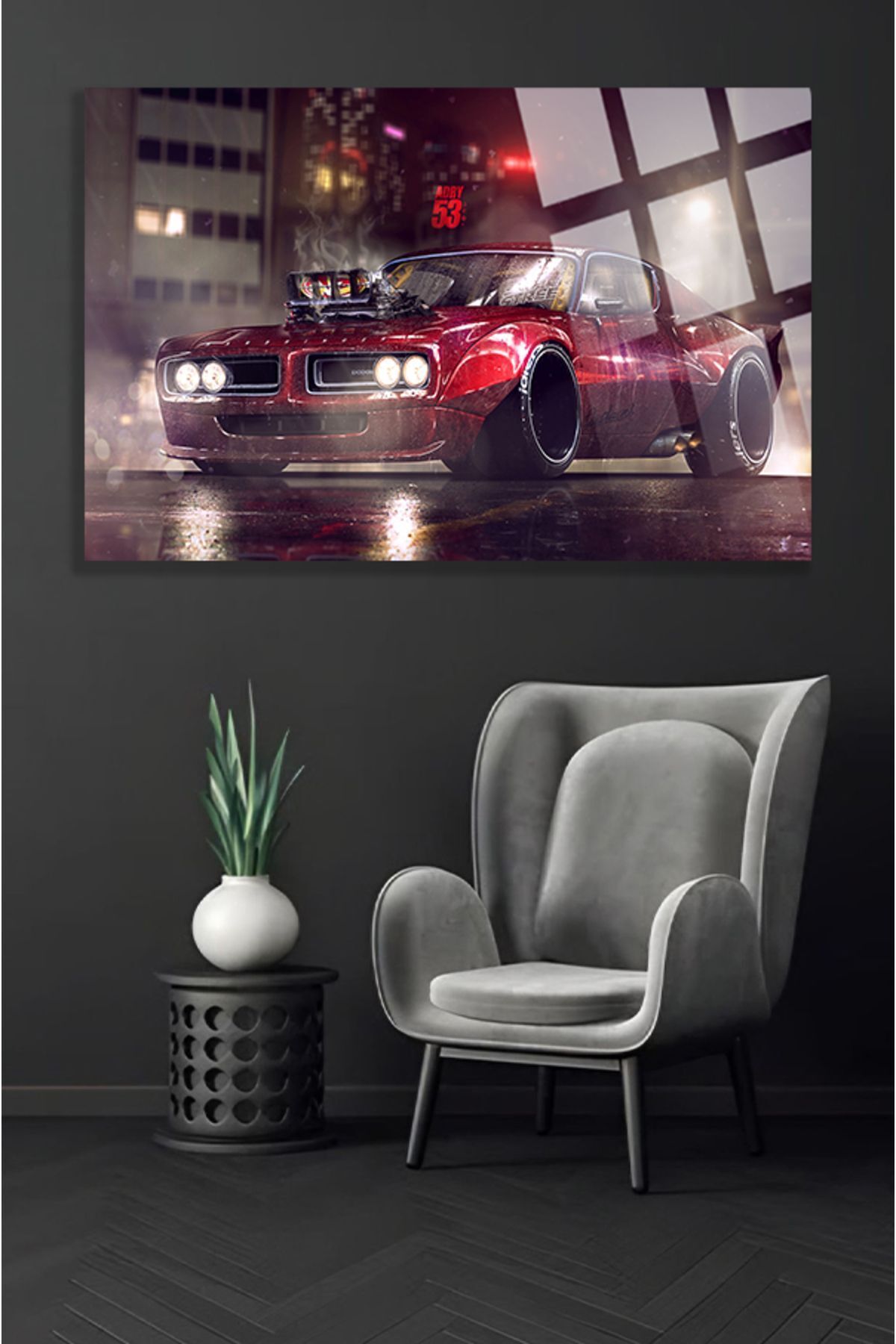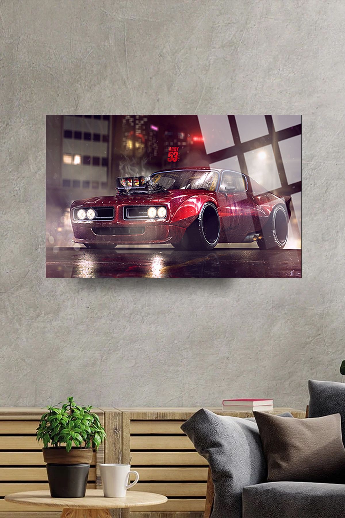 Retro Araba Kırılmaz Cam Tablo, Ev Ve Ofis Hediyesi Yüksek Çözünürlüklü 4mm Lüks Tablo kırmızı