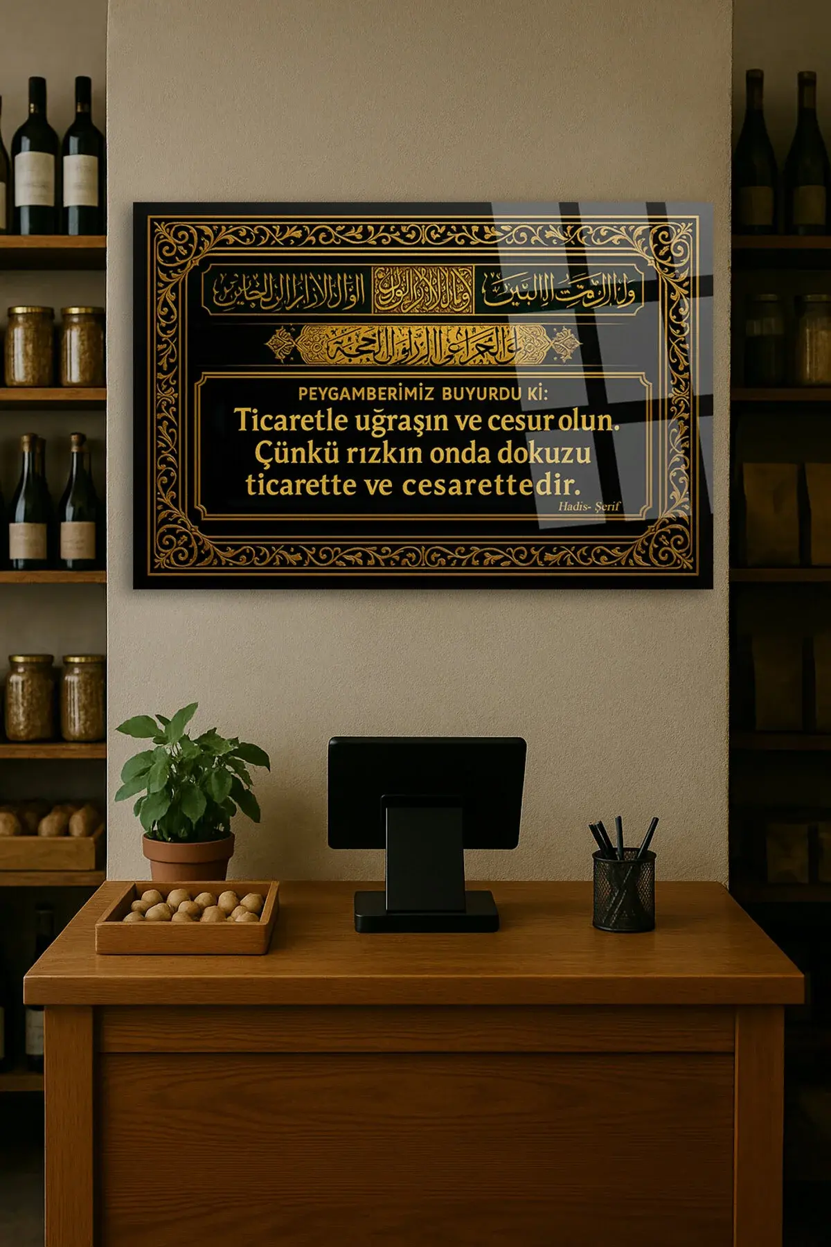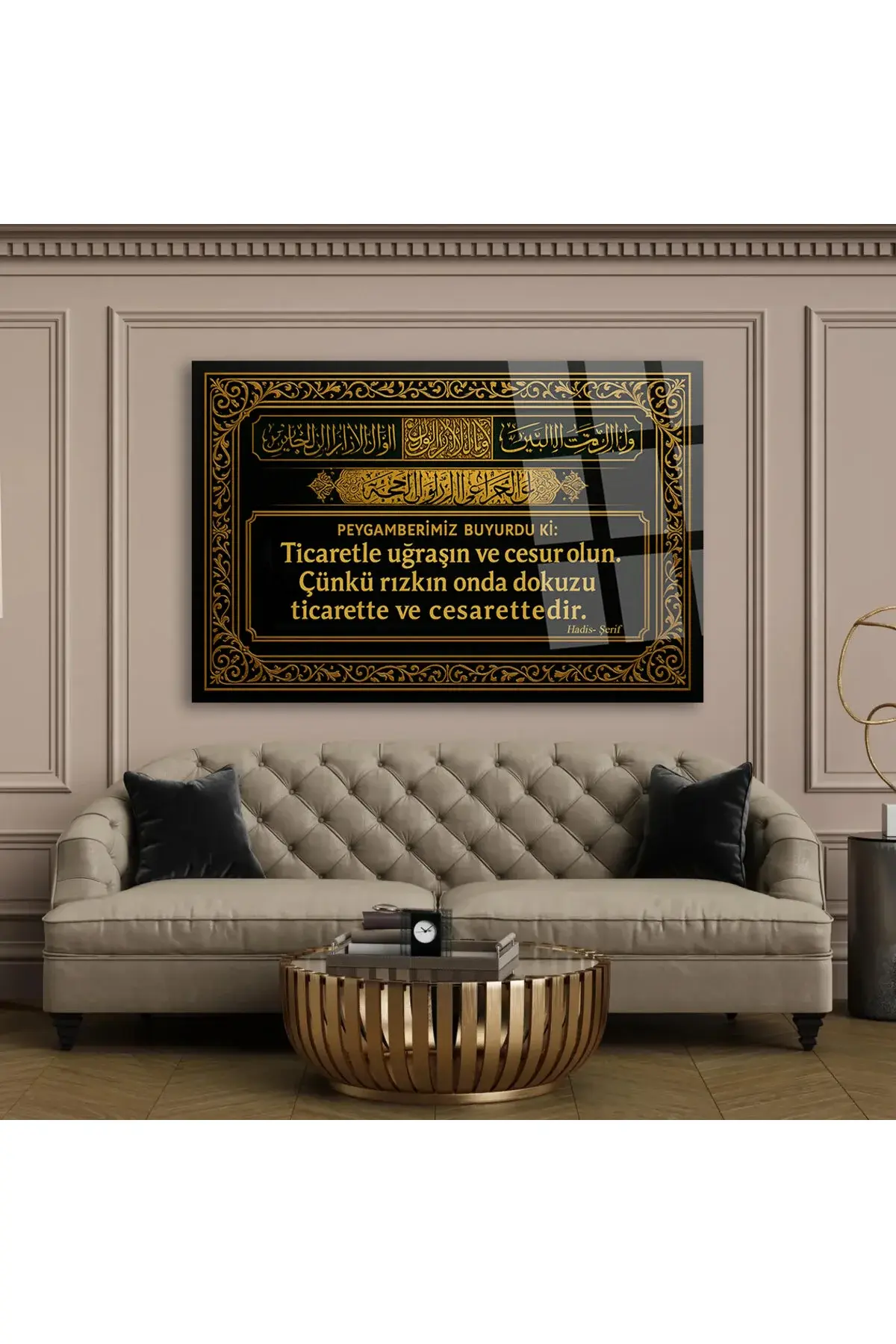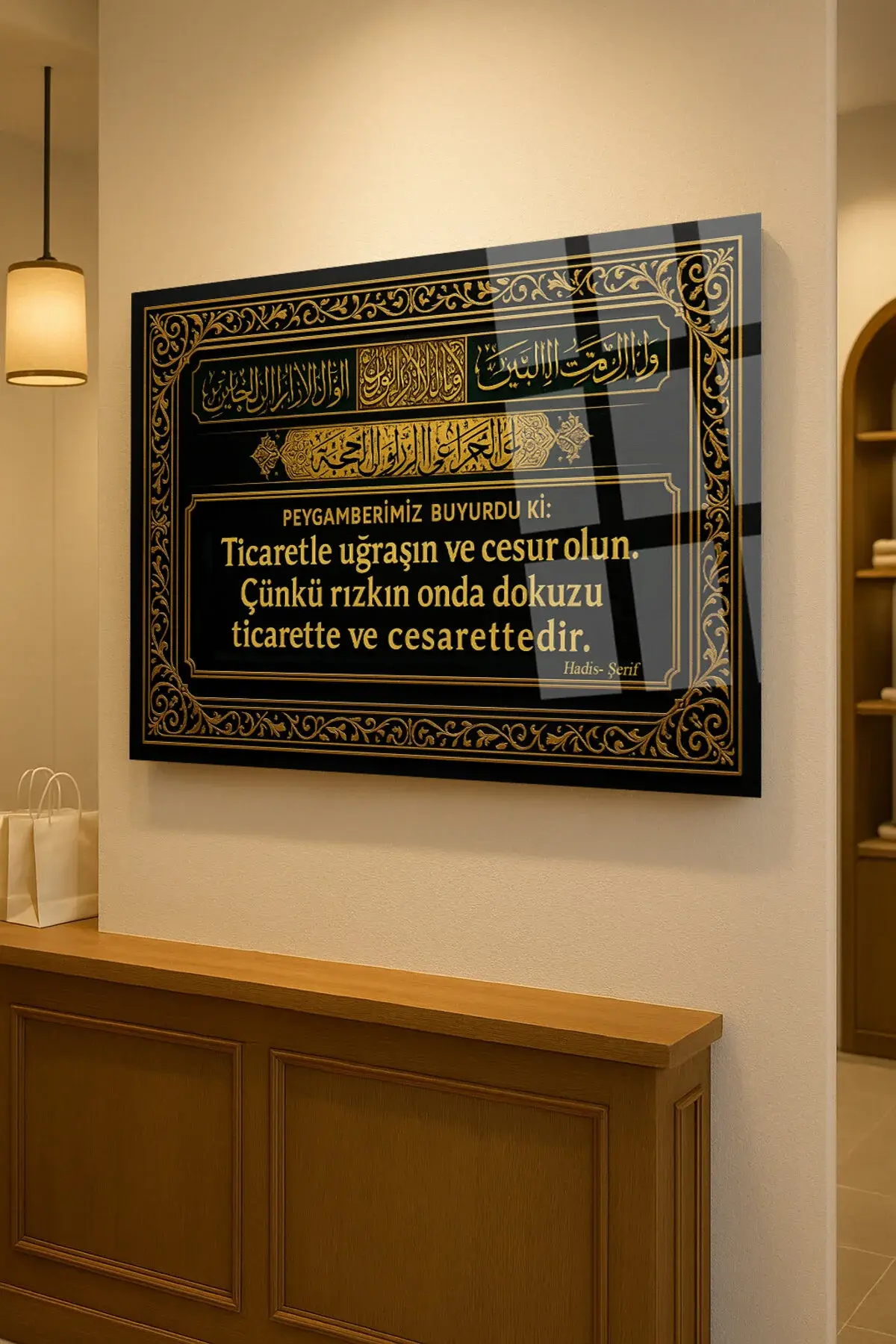 RIZKIN ONDA DOKUZU TİCARETTEDİR HADİS-İ ŞERİF KIRILMAZ CAM TABLO İŞ YERİ HEDİYESİ DİNİ TABLO