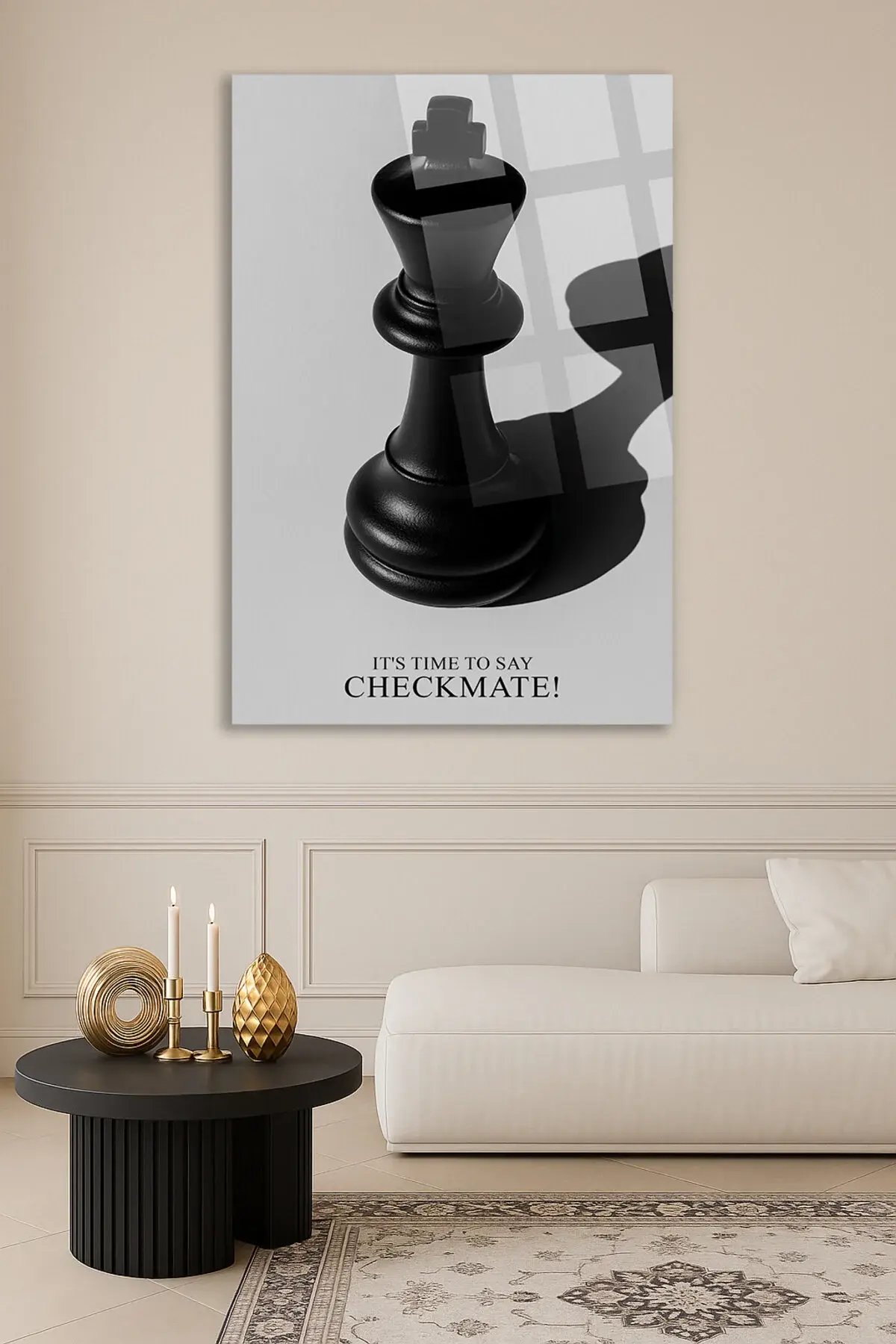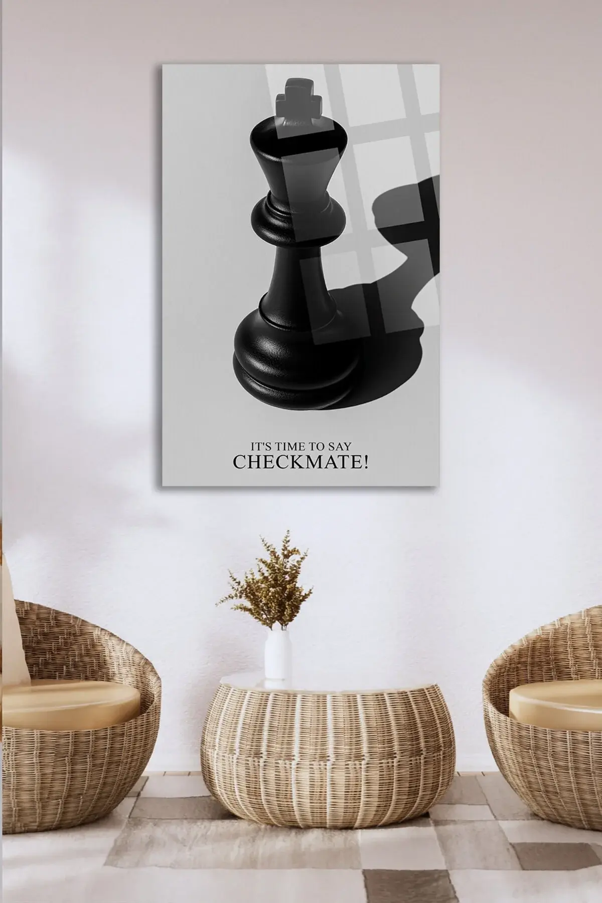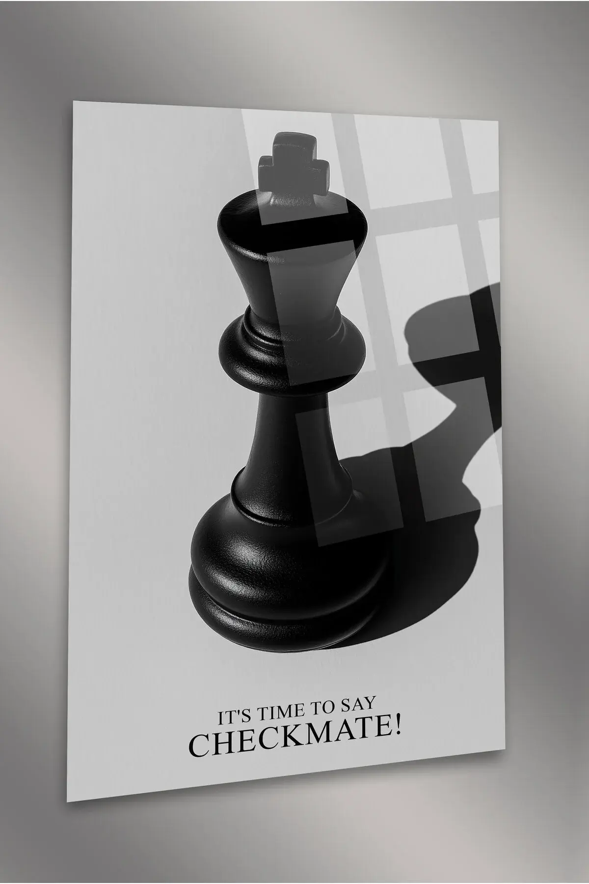 ŞAH-MAT! SANTRANÇ TABLOSU MOTİVASYON TABLOSU KIRILMAZ LÜKS CAM TABLO MODERN TABLO Gri