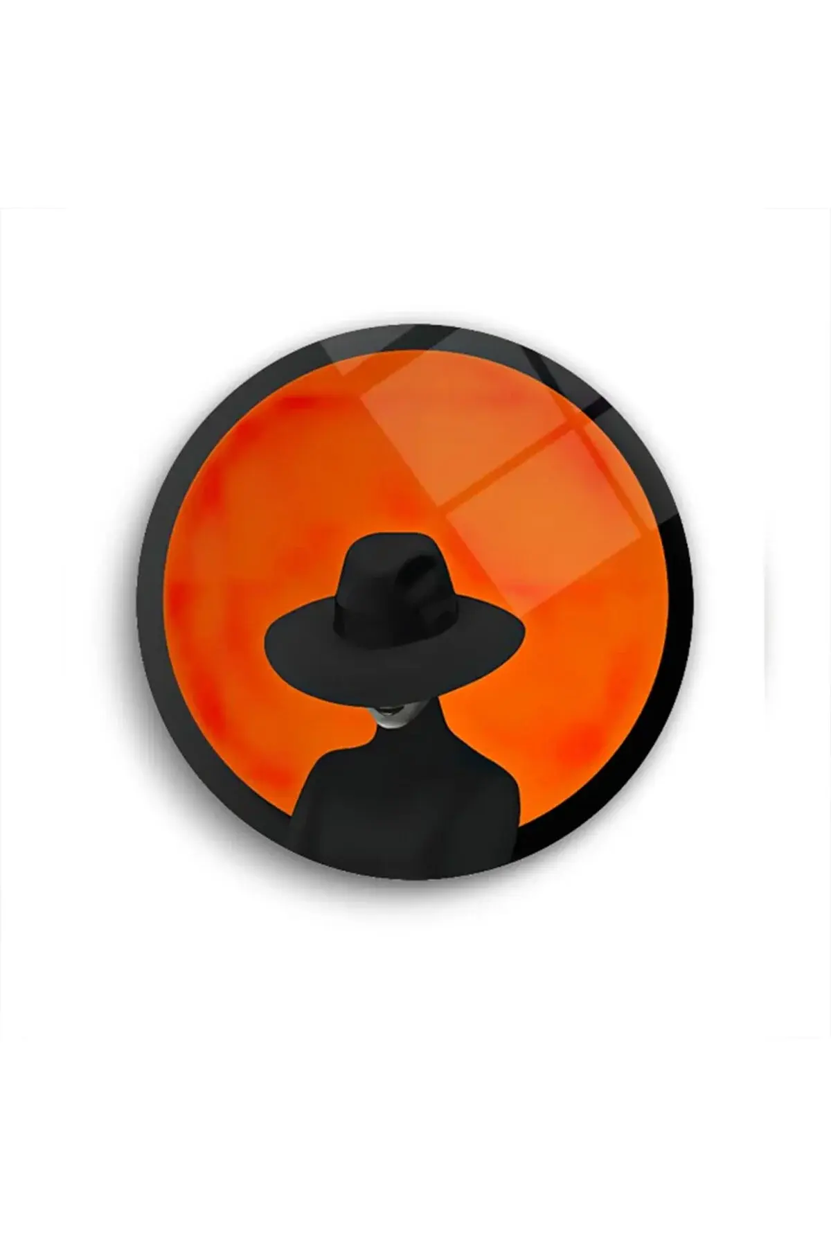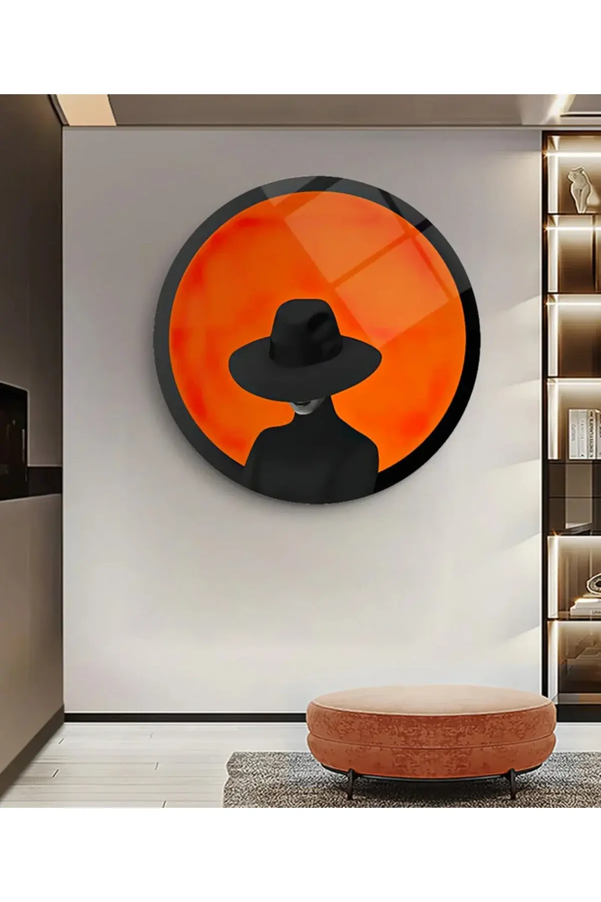 ŞAPKALI KADIN MODERN KIRILMAZ LÜKS YUVARLAK CAM TABLO MODERN HEDİYE TABLO Turuncu