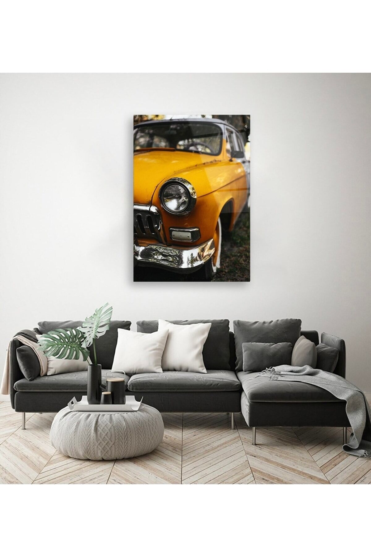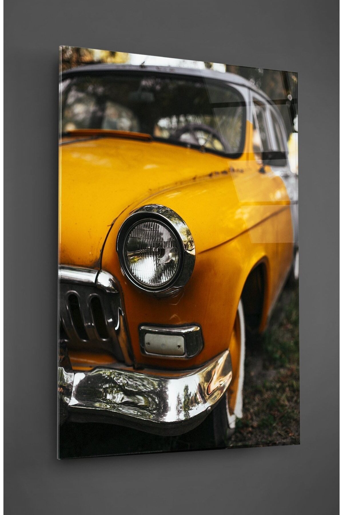 Sarı Araba Cam Tablo Renkli